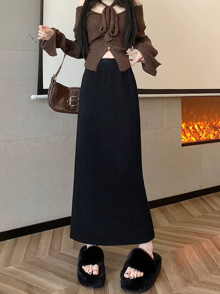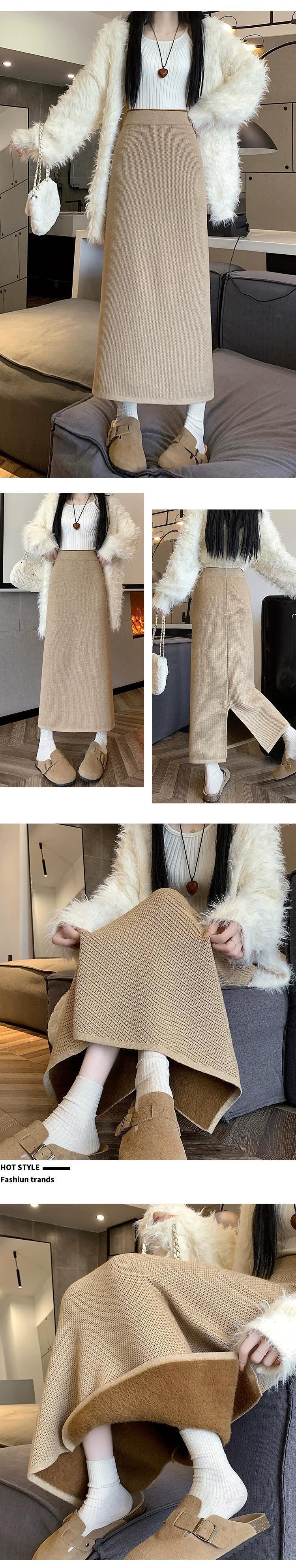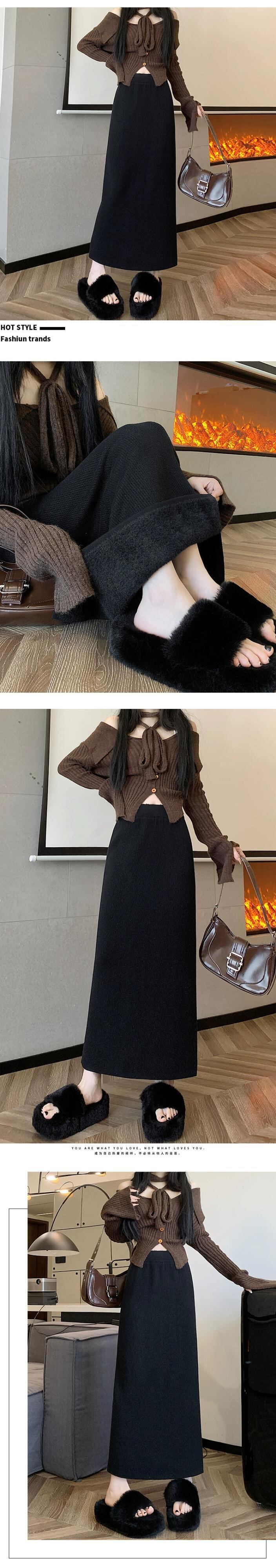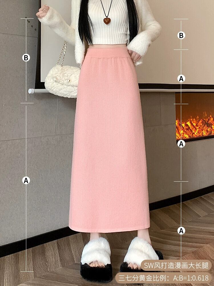 秋冬の厚みのあるベルベットスカートの女性、リアスリットニットヒップスカート、ハイウエスト、痩身、Aラインロングストレートスカート ハイウェスト オータム 秋物 ウィンター 冬物 7460041976400921 | framboise21