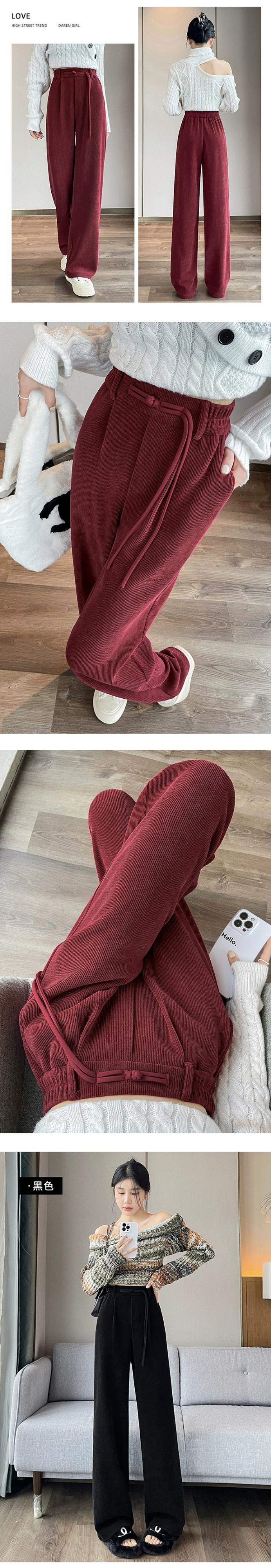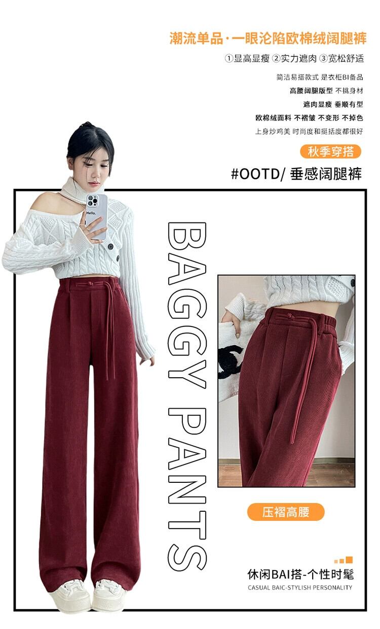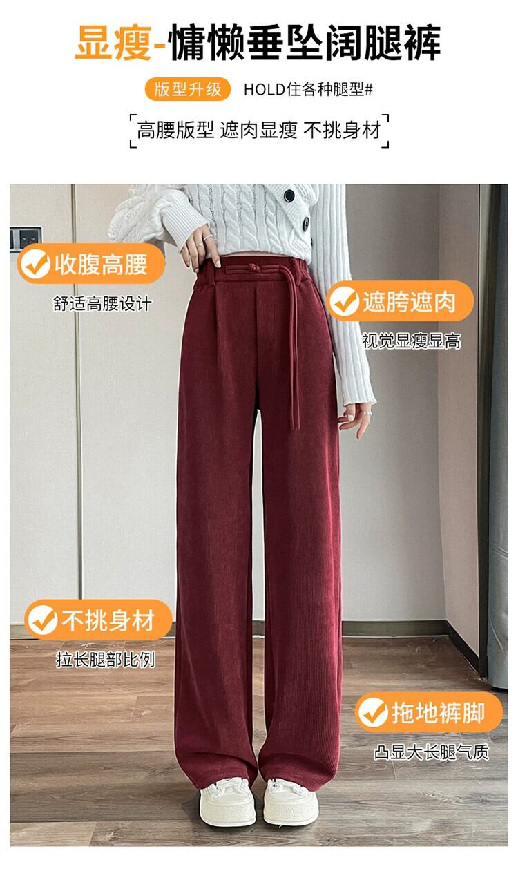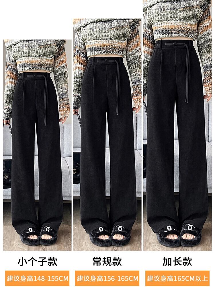 中国風ライト国民風ワイドレッグパンツ女性秋と冬プラスベルベット肥厚スーツパンツシェニールコーデュロイカジュアルパンツ オータム 秋物 ウィンター 冬物 ワイドパンツ 7460011411809602 | framboise21