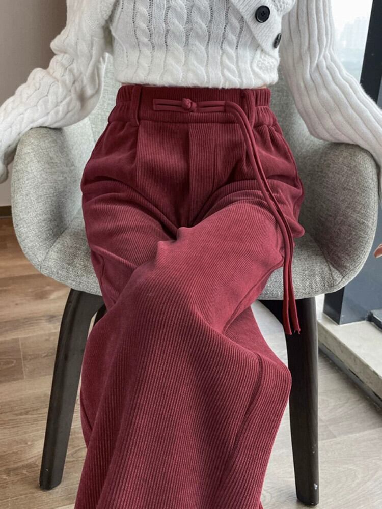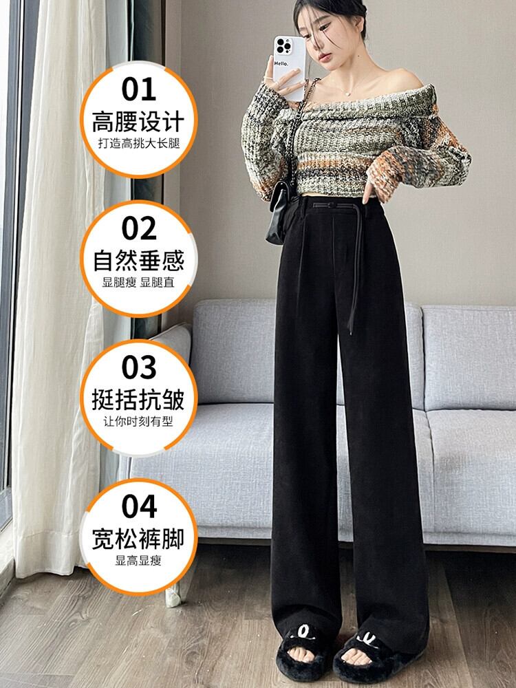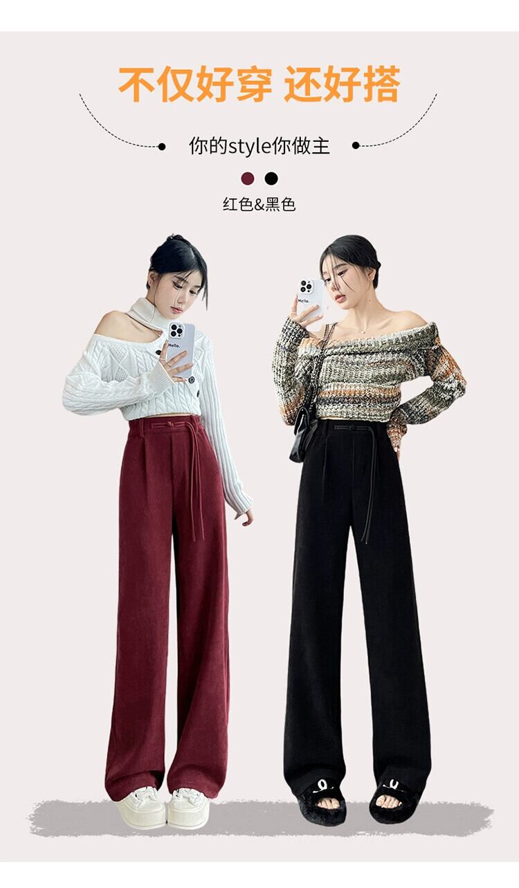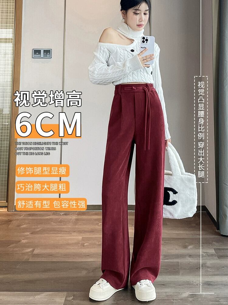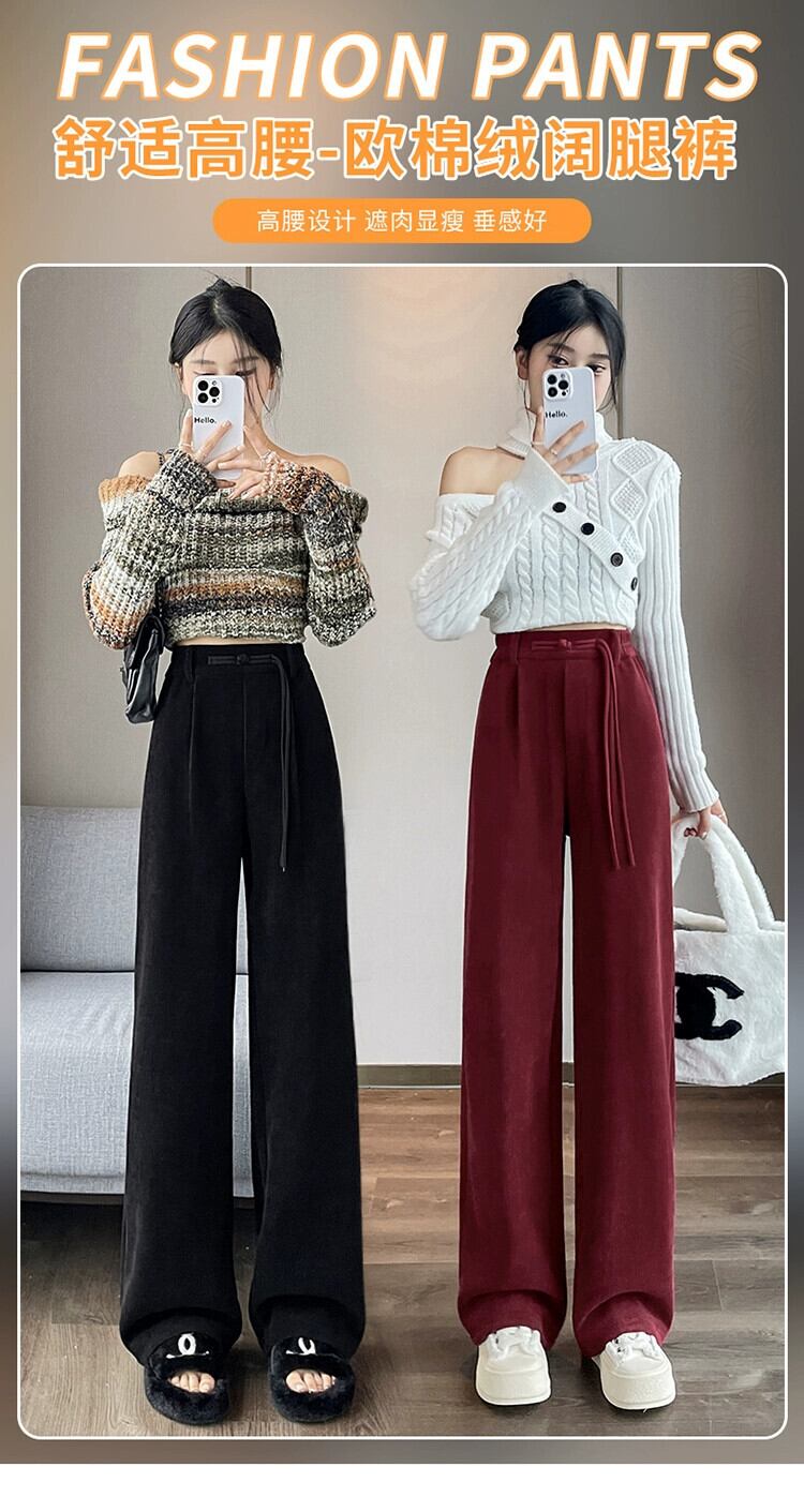 中国風ライト国民風ワイドレッグパンツ女性秋と冬プラスベルベット肥厚スーツパンツシェニールコーデュロイカジュアルパンツ オータム 秋物 ウィンター 冬物 ワイドパンツ 7460011411809602 | framboise21