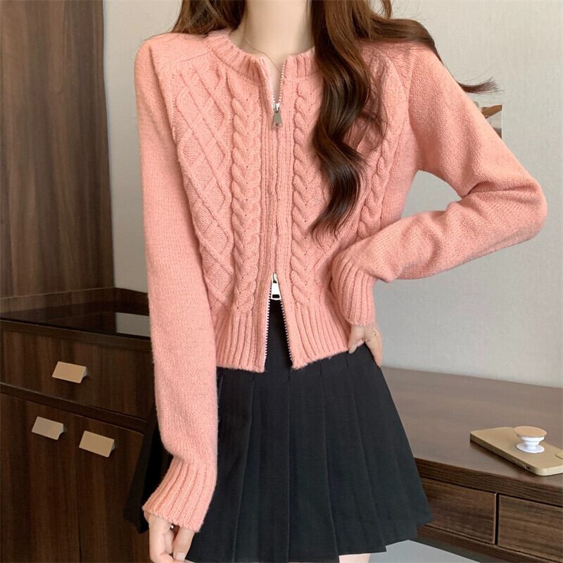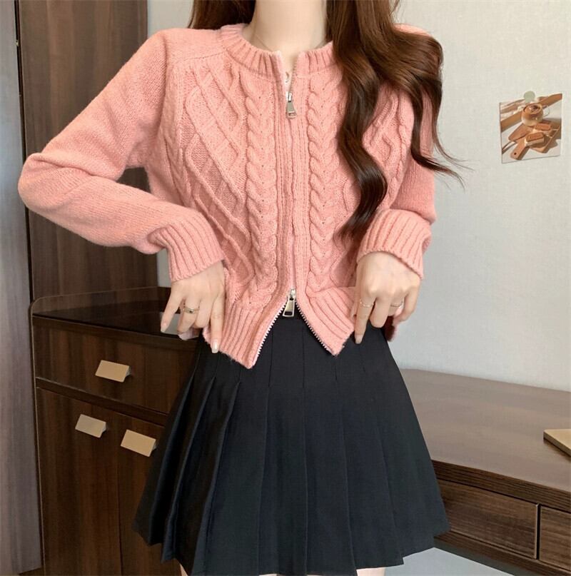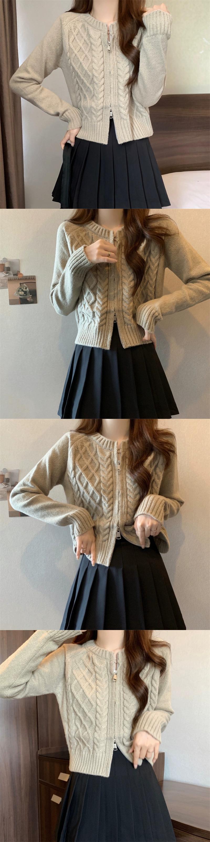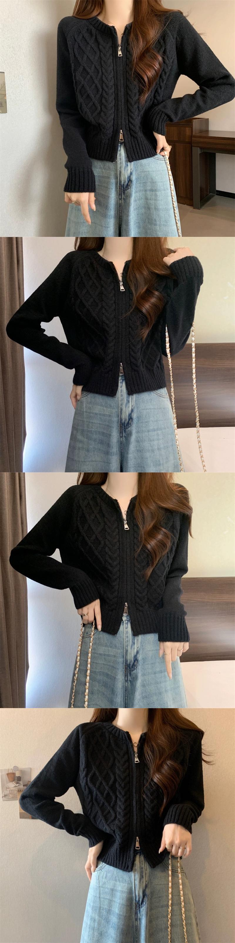ダブルジッパーツイストショートセーターカーディガンコート女性の秋と冬の小人緩いアウターウェア怠惰な長袖セーター ロング オータム 秋物 ウィンター 冬物 7460040510372861 | framboise21