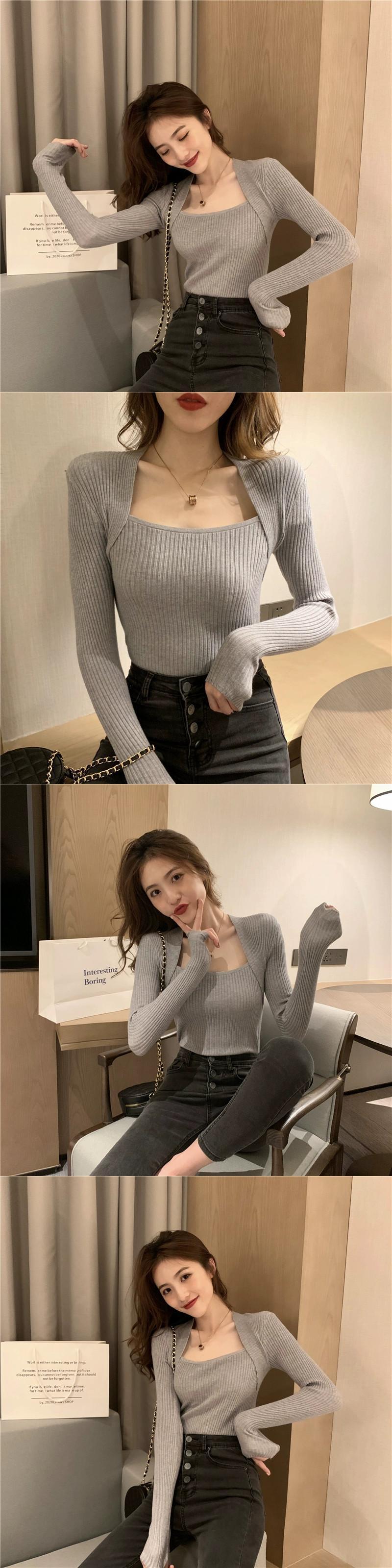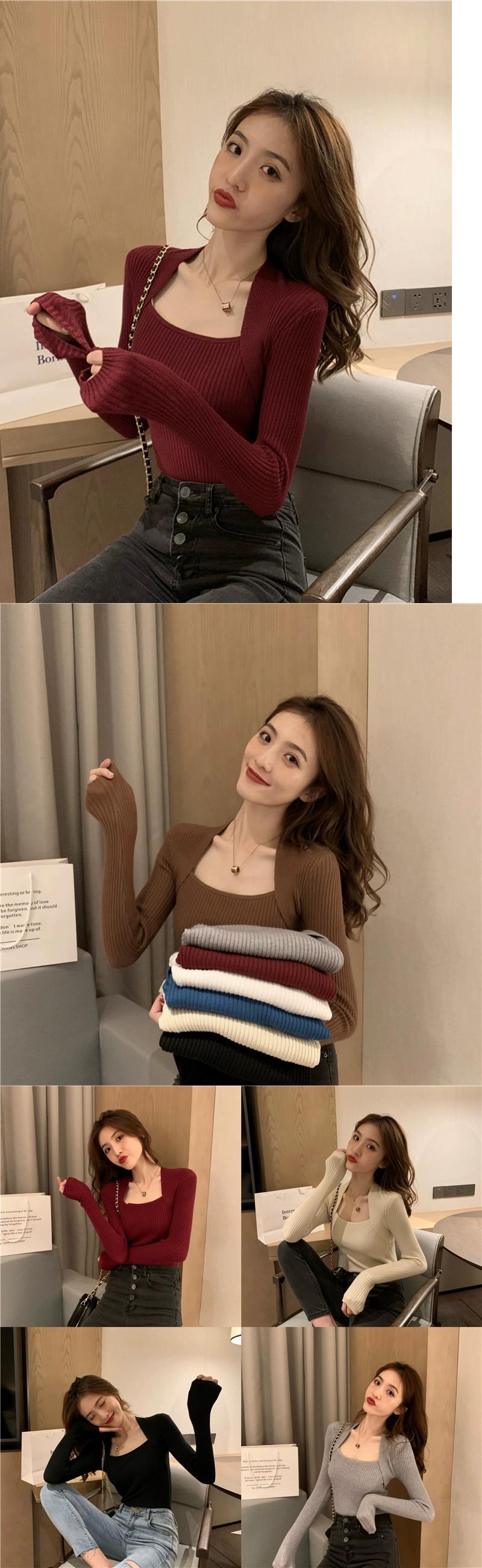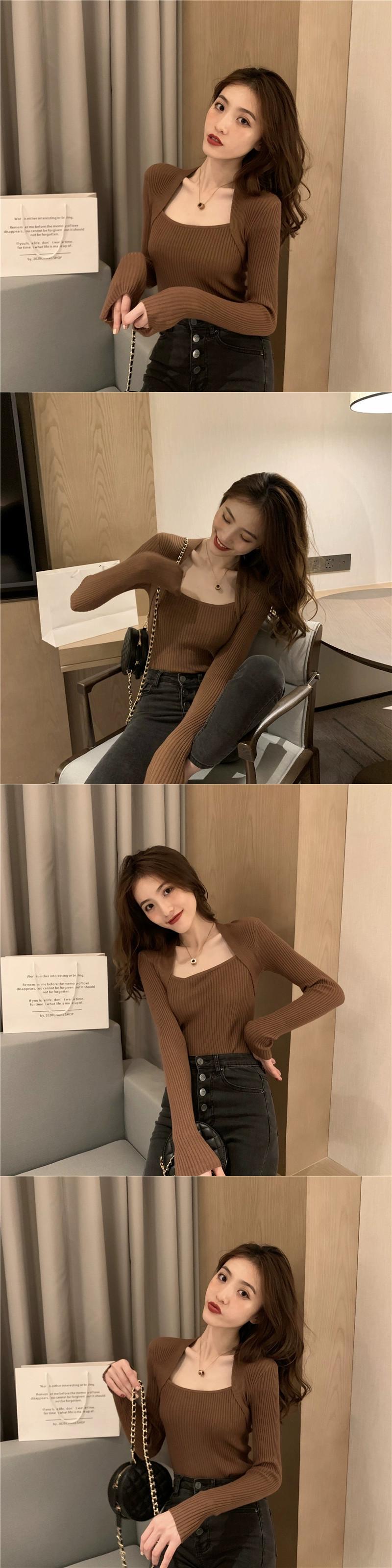 豪華なセーター底シャツ女性の秋と冬の 2023 新しいファッションスリムフィットインナー偽ツーピーススクエアネック長袖セーター ロング オータム 秋物 ウィンター 冬物 スクウェア 7460055249184786 | framboise21