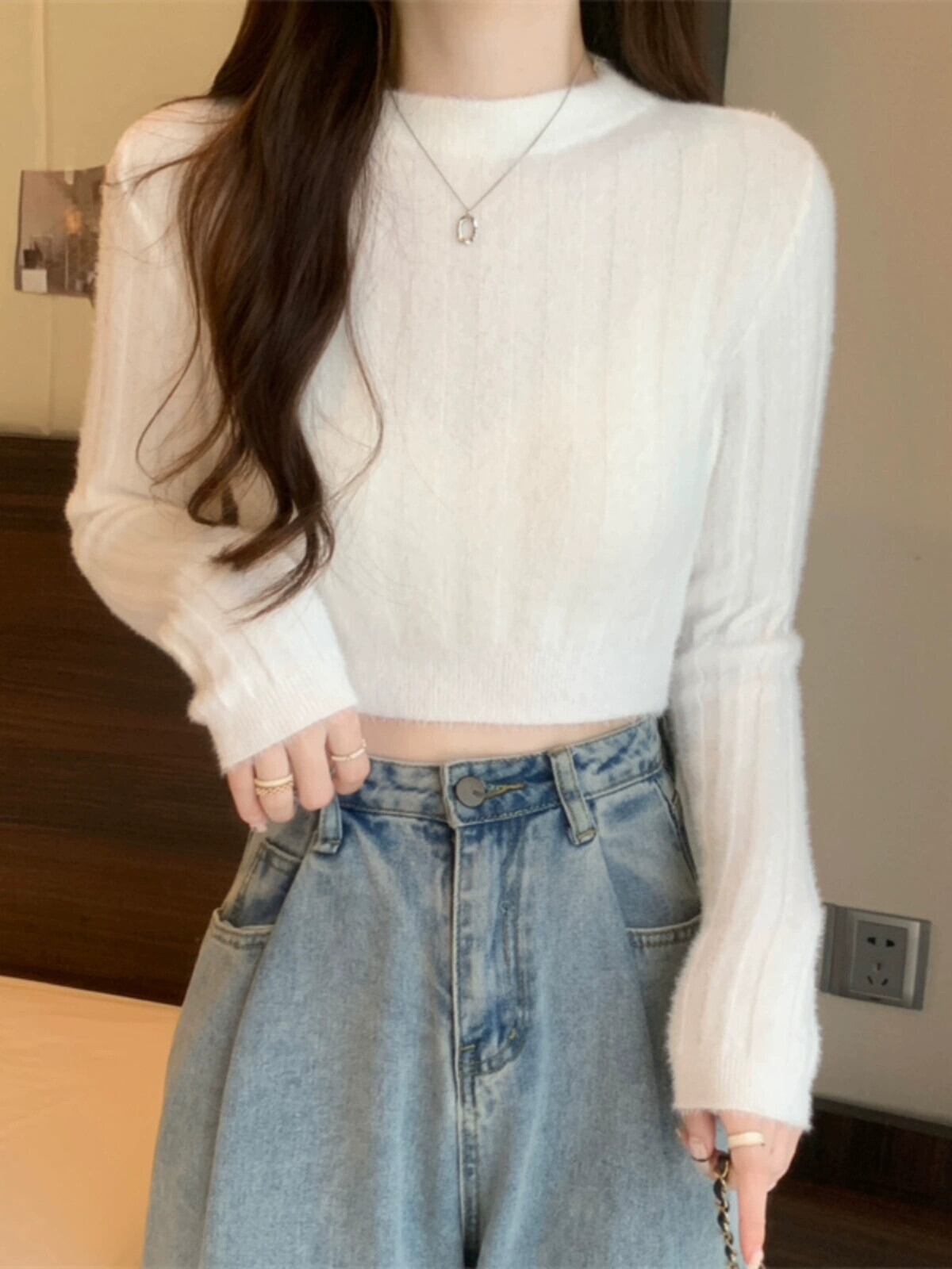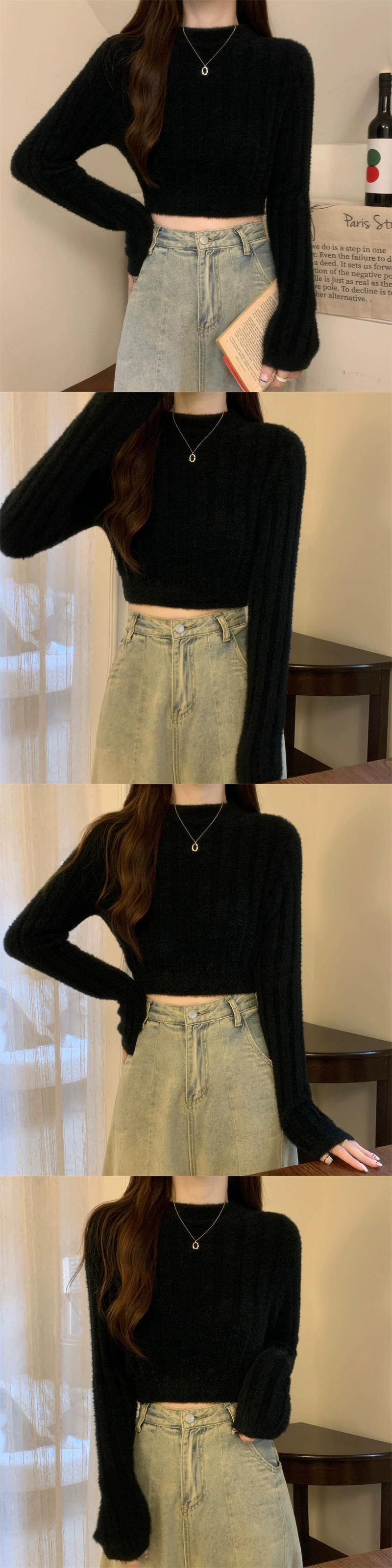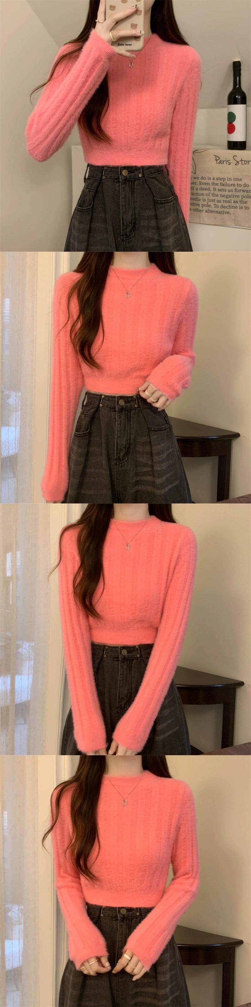 - ウエストショートイミテーションミンクベルベットセーターボトミングシャツ女性秋と冬の小柄な人々スリムフィット内側と外側の白いセーター ホワイト オータム 秋物 ウィンター 冬物 7460044435109939 | framboise21