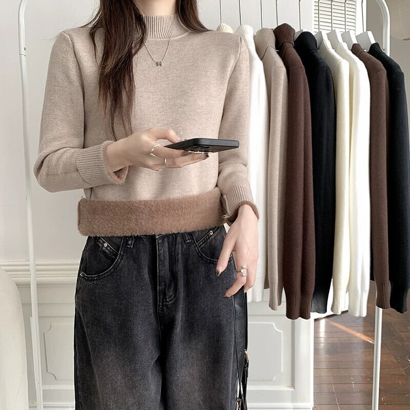 秋と冬の統合ベルベットパイルカラーボトミングシャツレディース、ニットセーターとミンクベルベットタートルネックセーター オータム 秋物 ウィンター 冬物 7460068767110858 | framboise21