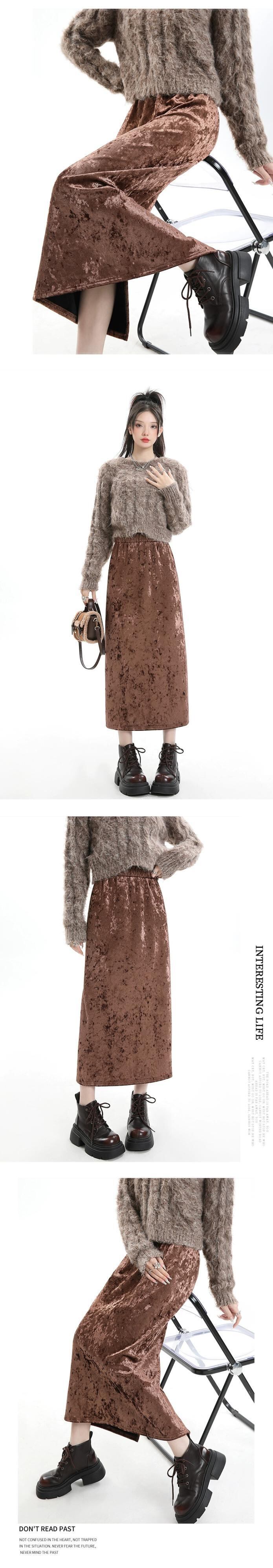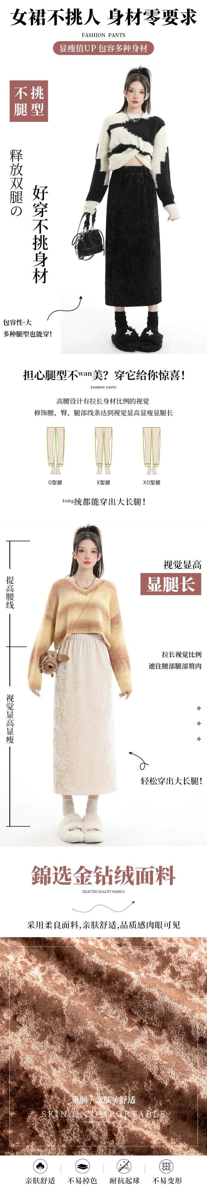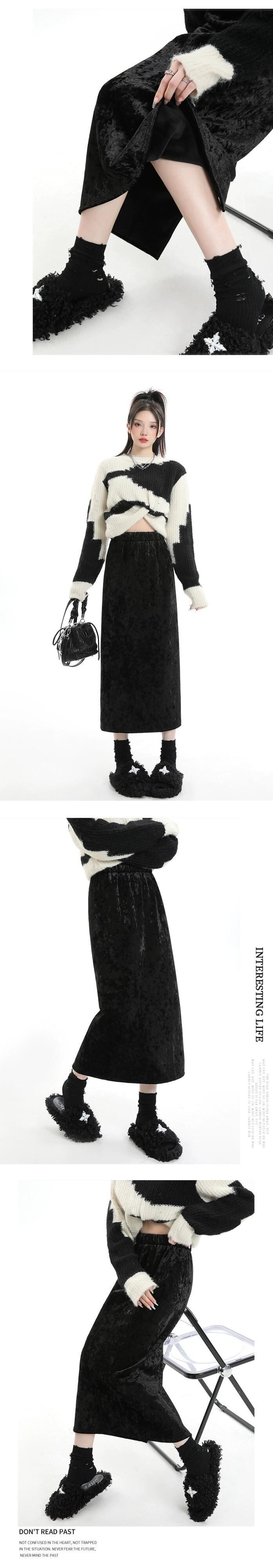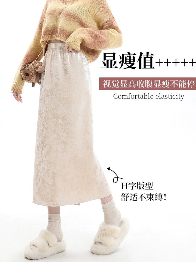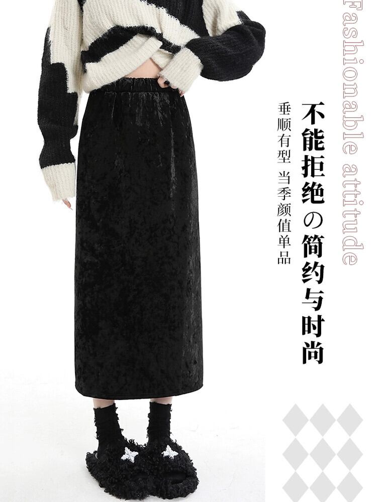 厚みのあるベルベットスカートの女性、秋と冬の黒のスリットヒップスカート、ハイウエストスリミングミッドレングスストレート冬スカート ハイウェスト ブラック オータム 秋物 ウィンター 冬物 7460047773967837 | framboise21