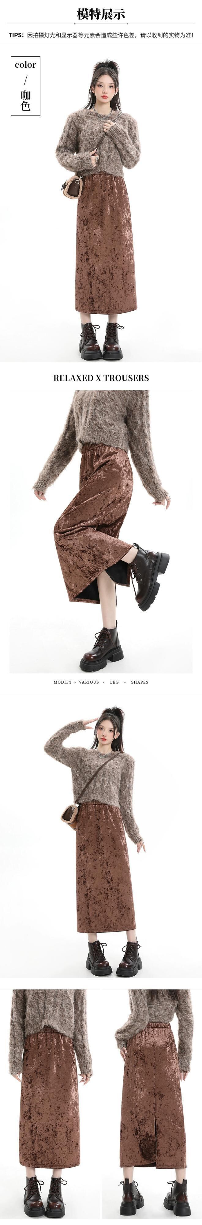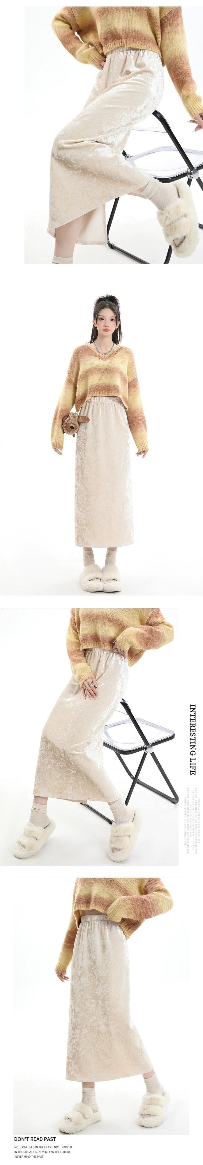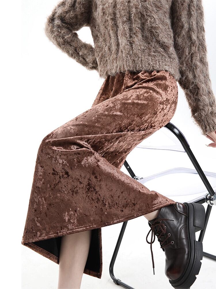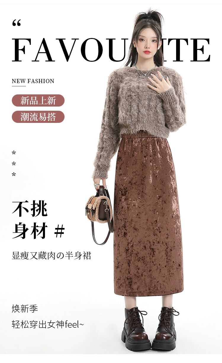 厚みのあるベルベットスカートの女性、秋と冬の黒のスリットヒップスカート、ハイウエストスリミングミッドレングスストレート冬スカート ハイウェスト ブラック オータム 秋物 ウィンター 冬物 7460047773967837 | framboise21