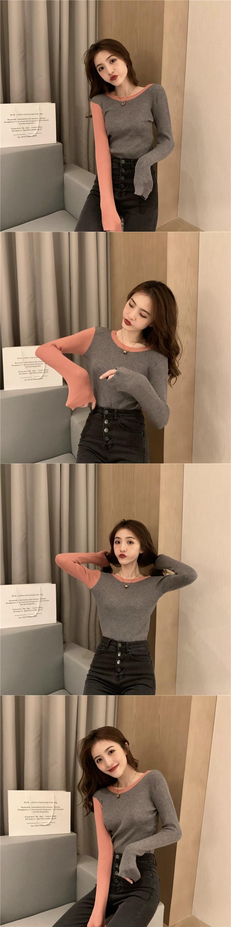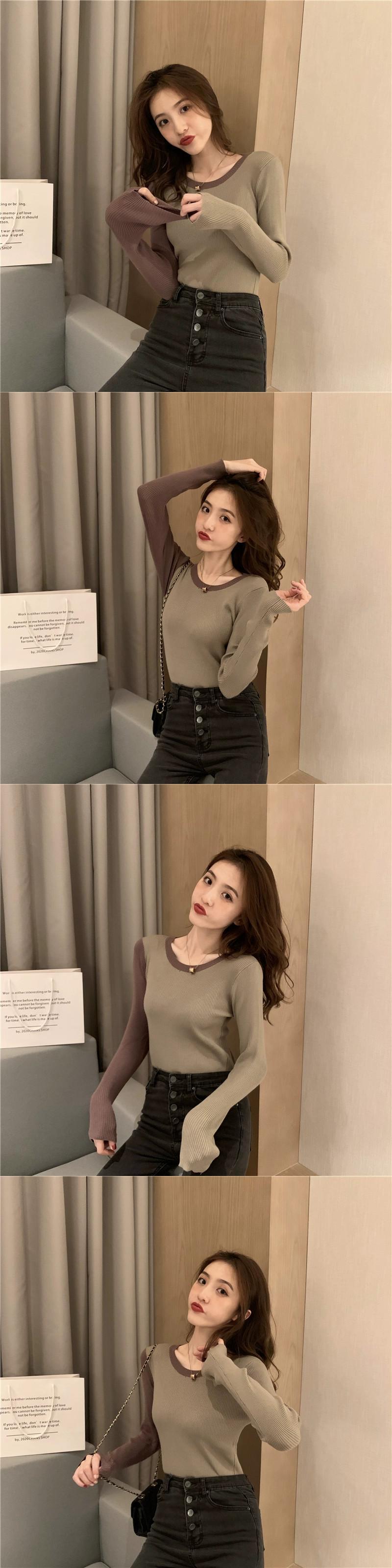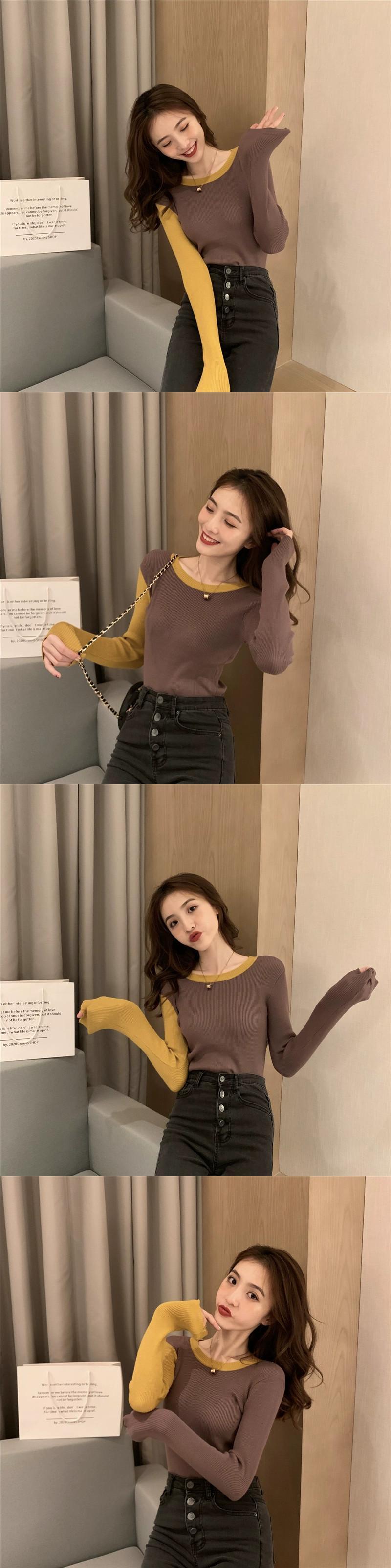 女性のセーターインナーニットボトリングシャツ秋冬 2023 新しいスリムコントラストカラーアインスタイル多用途長袖トップ ロング オータム 秋物 ウィンター 冬物 7460063652554855 | framboise21