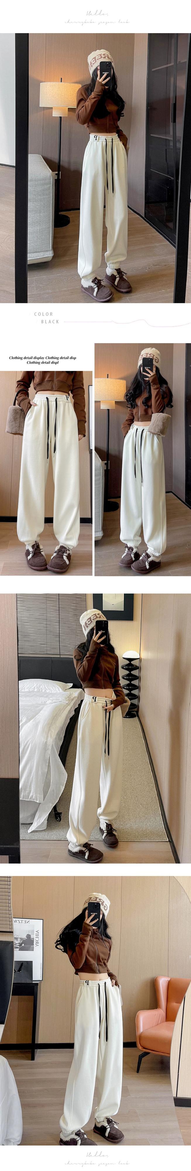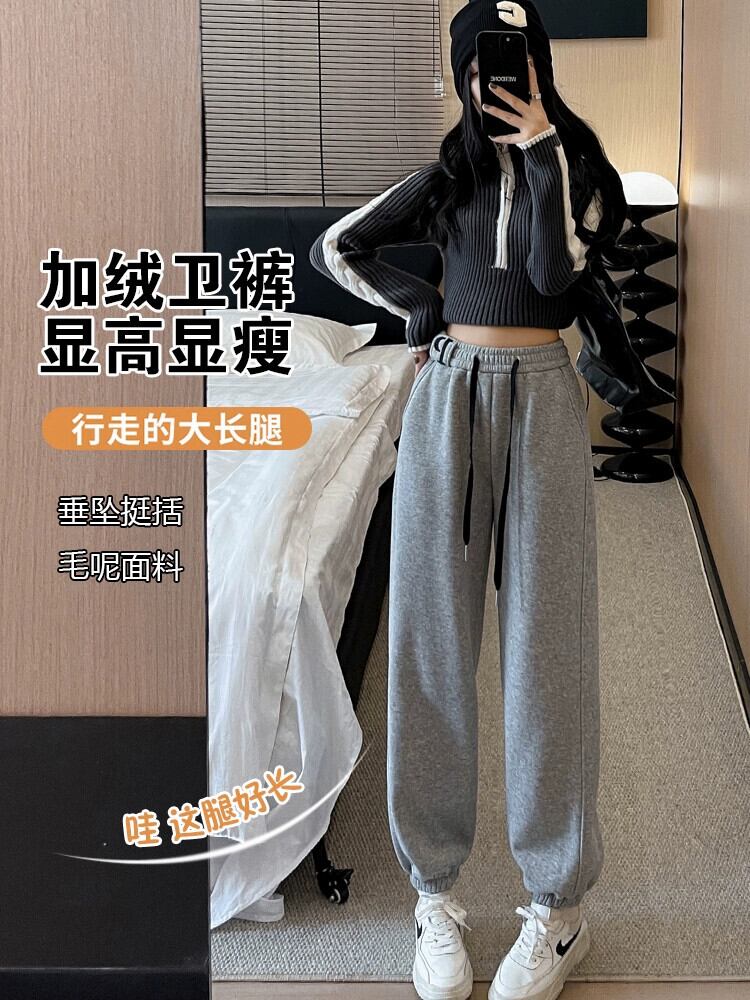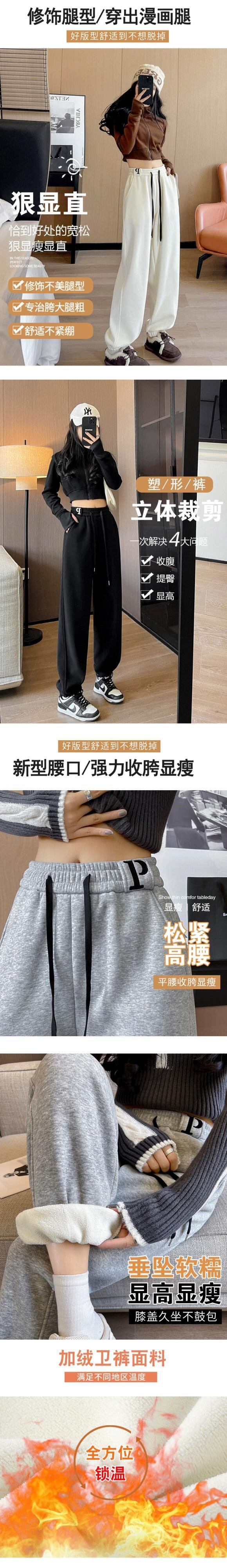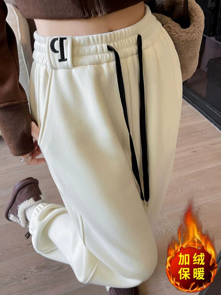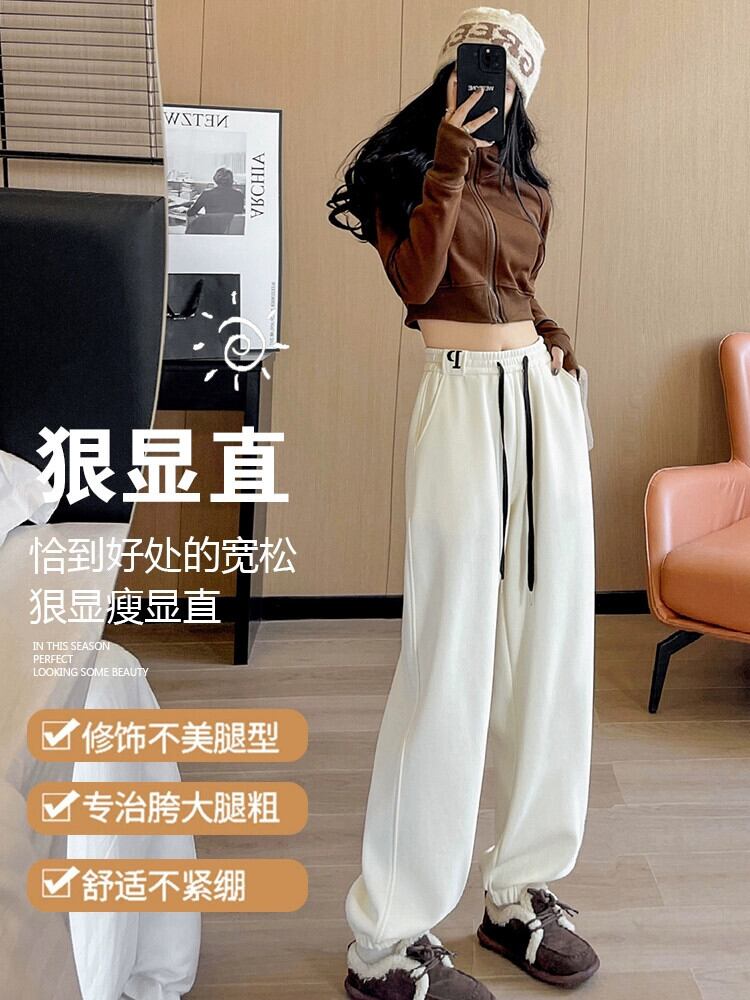 ホワイトレギンススウェットパンツ女性 2023 新しい秋と冬のベルベット肥厚スウェットパンツハイウエストスリムストレートカジュアルパンツ ハイウェスト オータム 秋物 ウィンター 冬物 7460039714148543 | framboise21