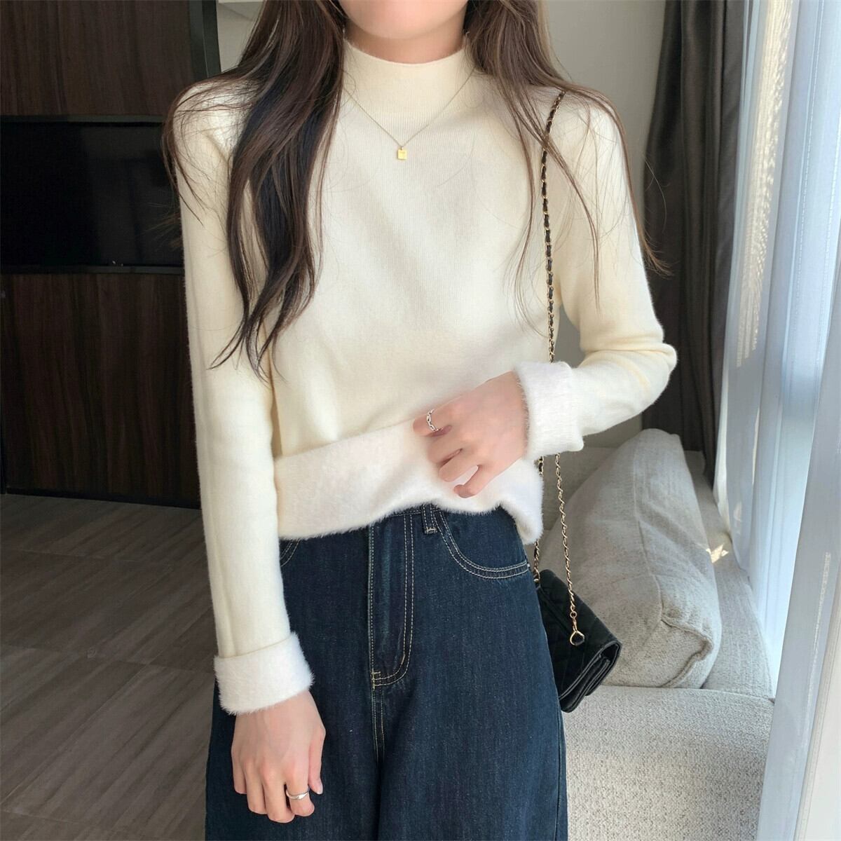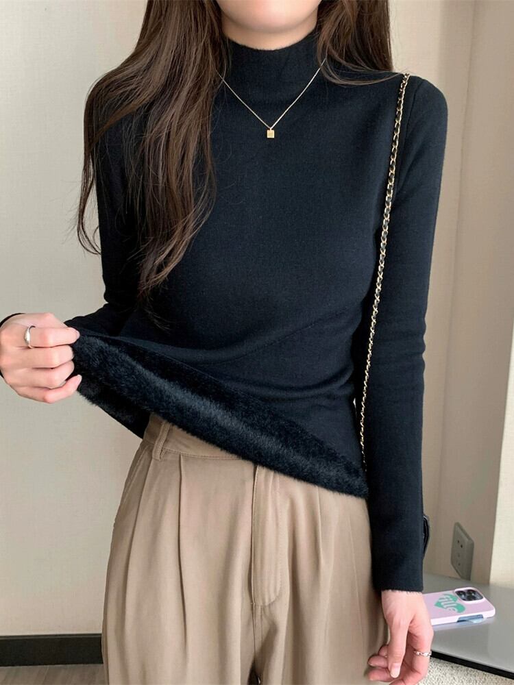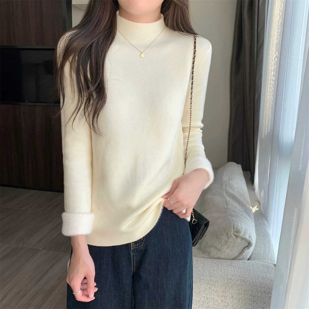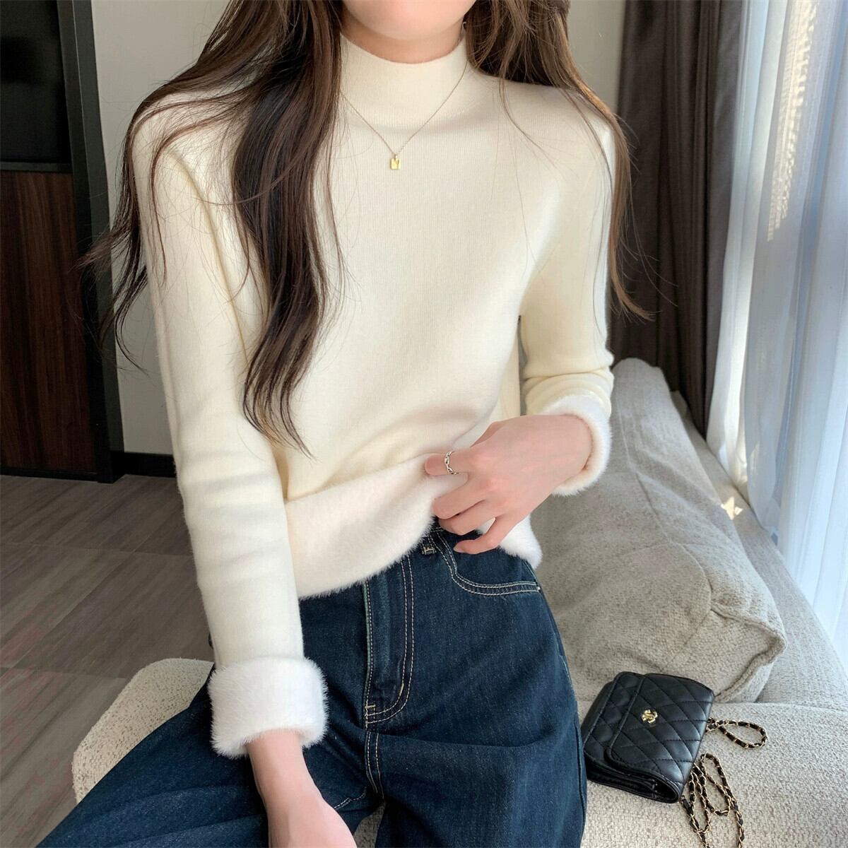 ハーフタートルネックプラスベルベット肥厚ボトムシャツレディース、秋と冬のワンピースベルベットセーター、スリムフィットで多用途な長袖セーター ロング オータム 秋物 ウィンター 冬物 7460022930700192 | framboise21
