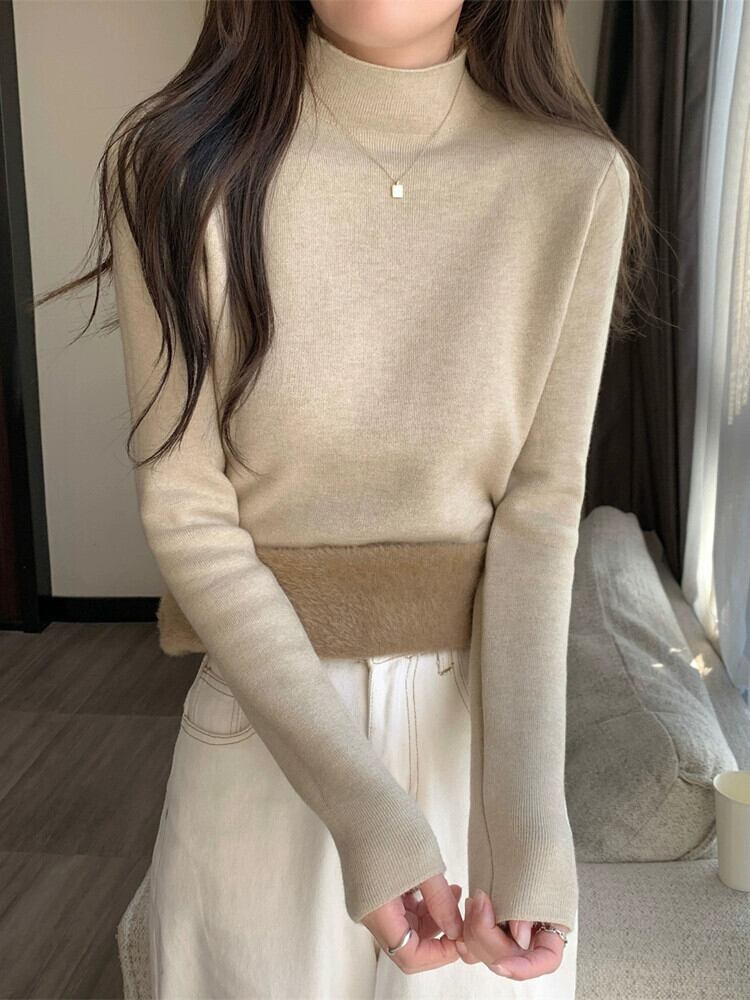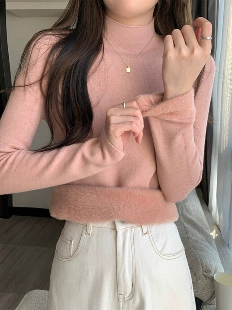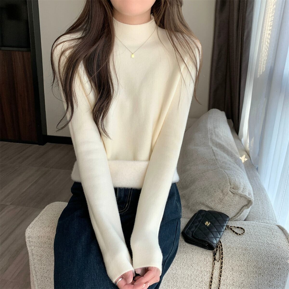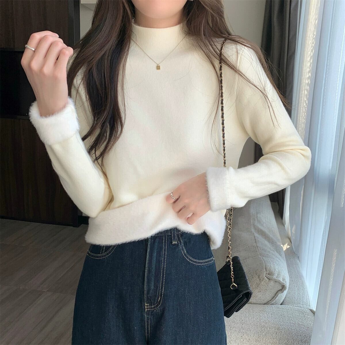 ハーフタートルネックプラスベルベット肥厚ボトムシャツレディース、秋と冬のワンピースベルベットセーター、スリムフィットで多用途な長袖セーター ロング オータム 秋物 ウィンター 冬物 7460022930700192 | framboise21