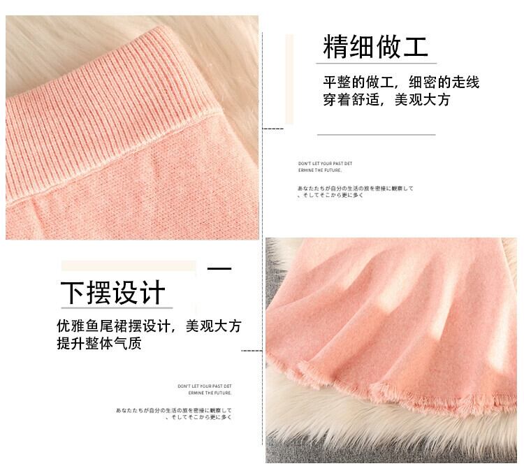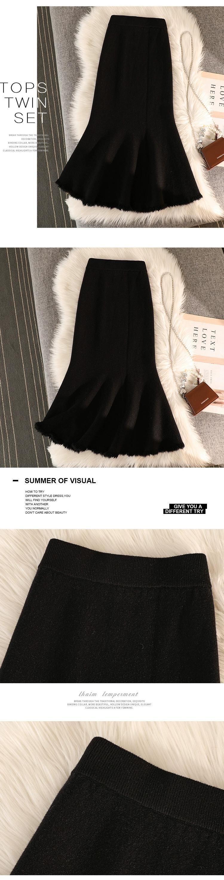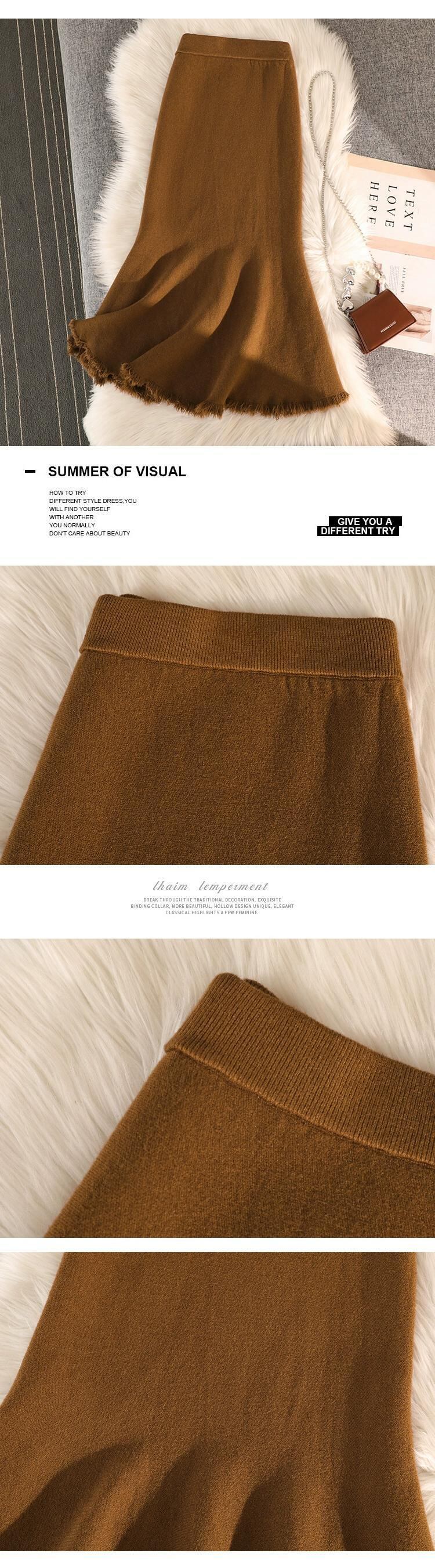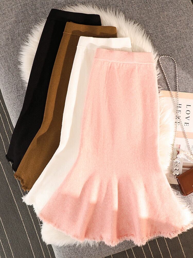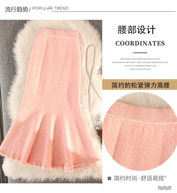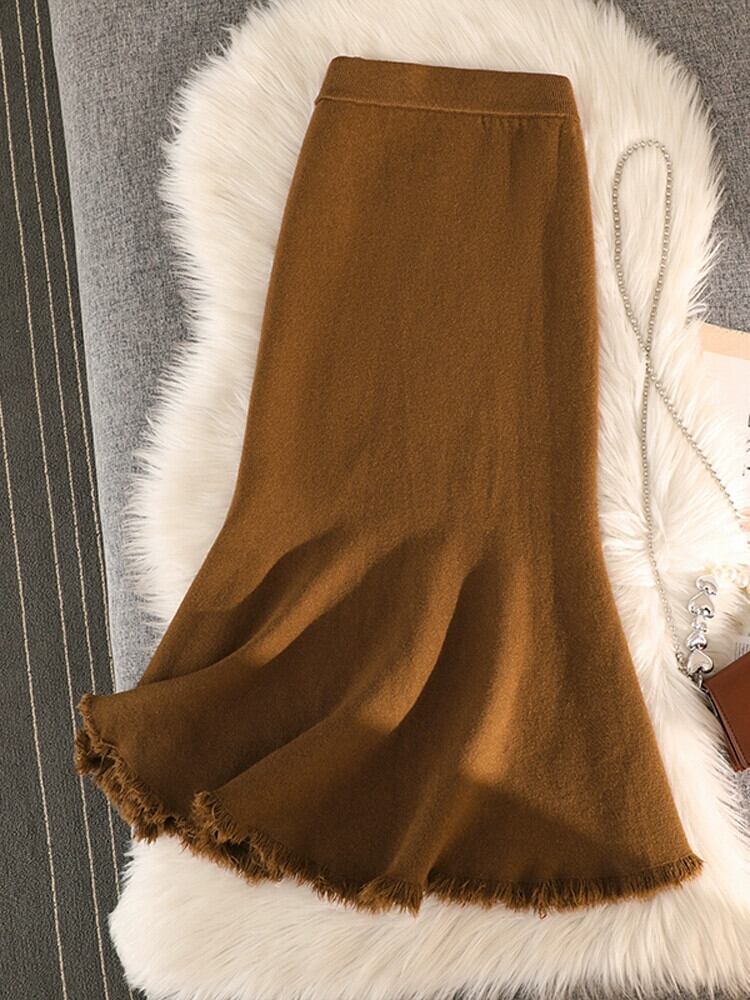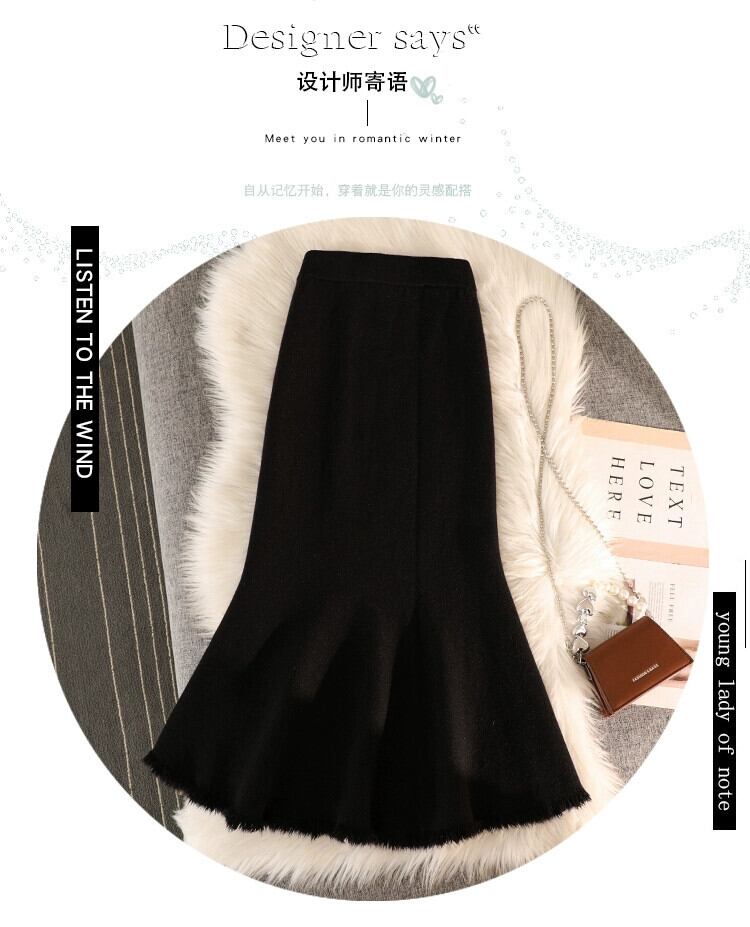 厚みのあるフリンジ付きニットヒップカバースカートレディース、秋冬フリルミッドレングススリムハイウエストフィッシュテールスカート、セーター付き オータム 秋物 ウィンター 冬物 7460061463410752 | framboise21