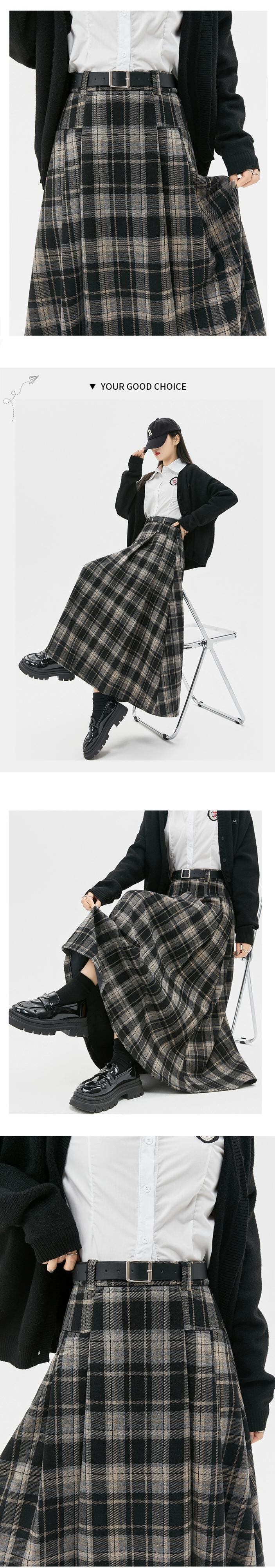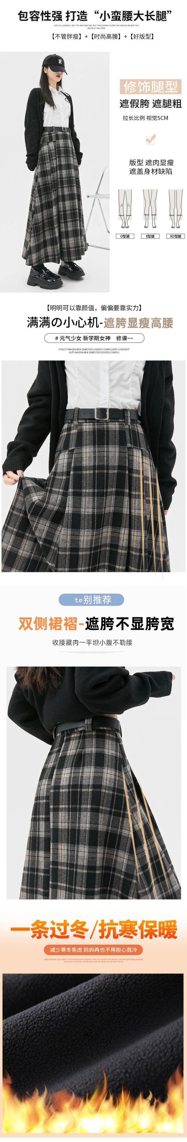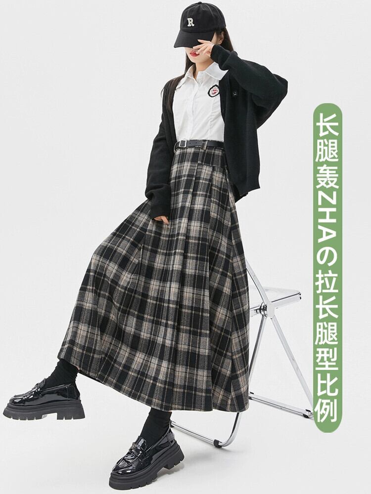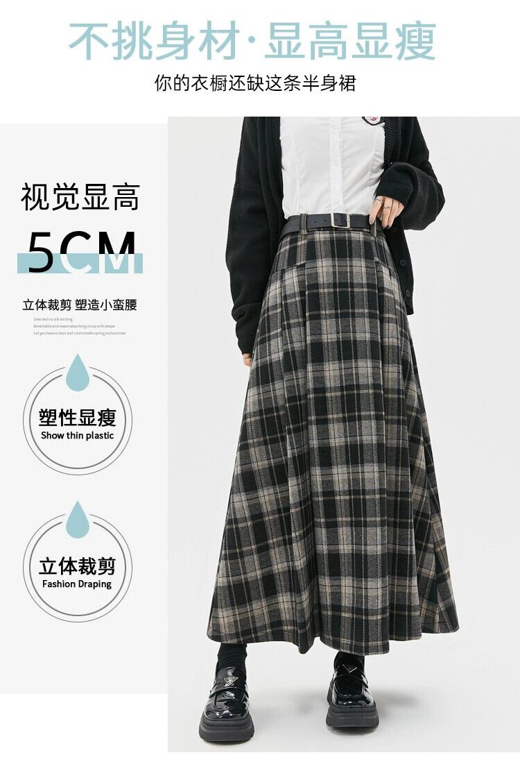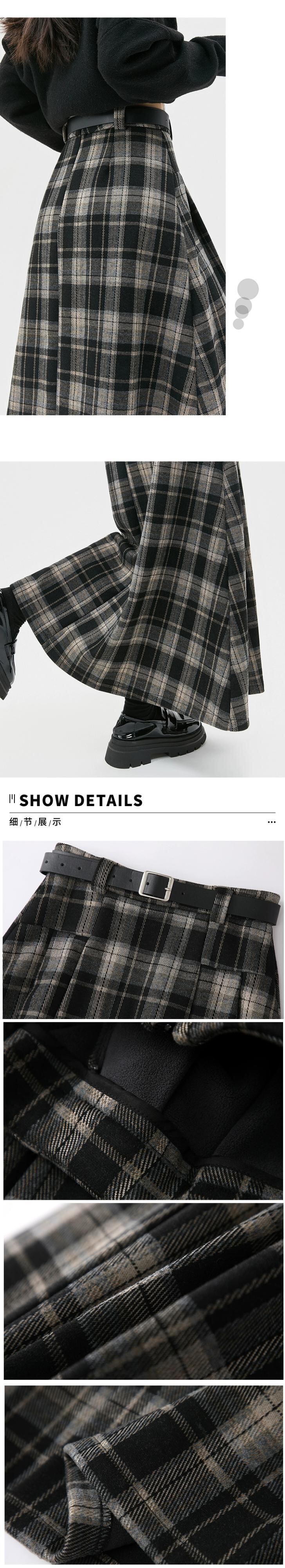 ベルベット肥厚 A ラインスカート女性の秋と冬の新ウールチェック柄プリーツスカートハイウエストスリムロング大きな裾スカート ハイウェスト オータム 秋物 ウィンター 冬物 Aライン 7460044319298442 | framboise21