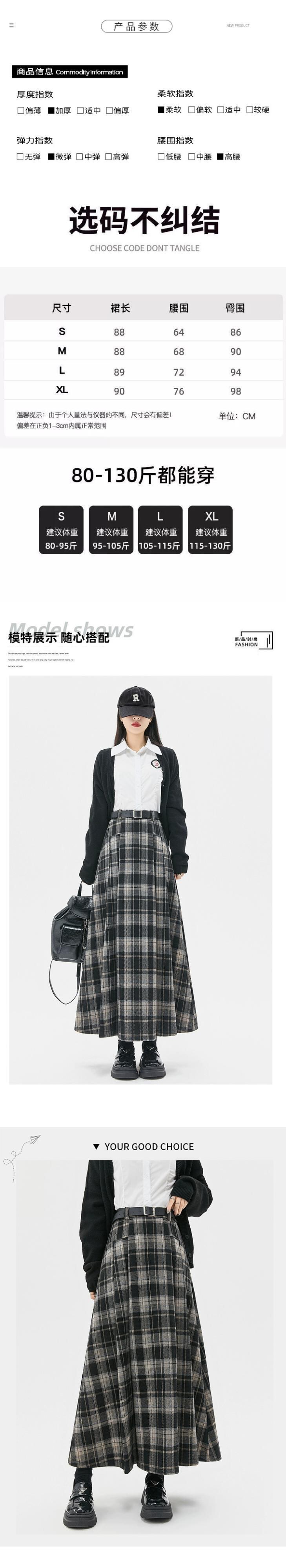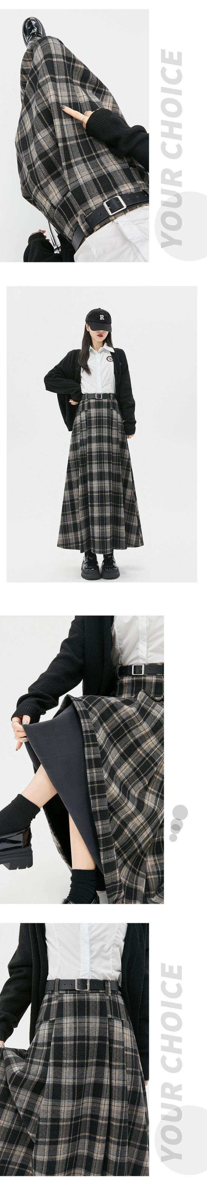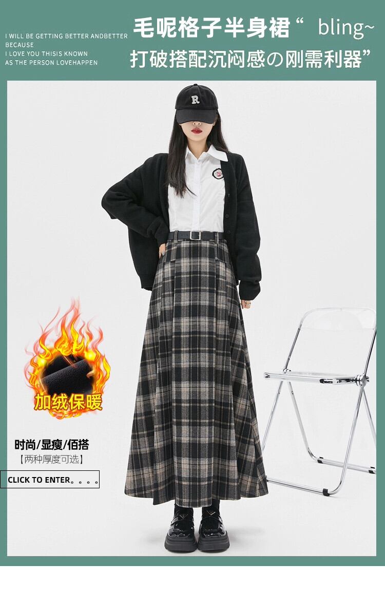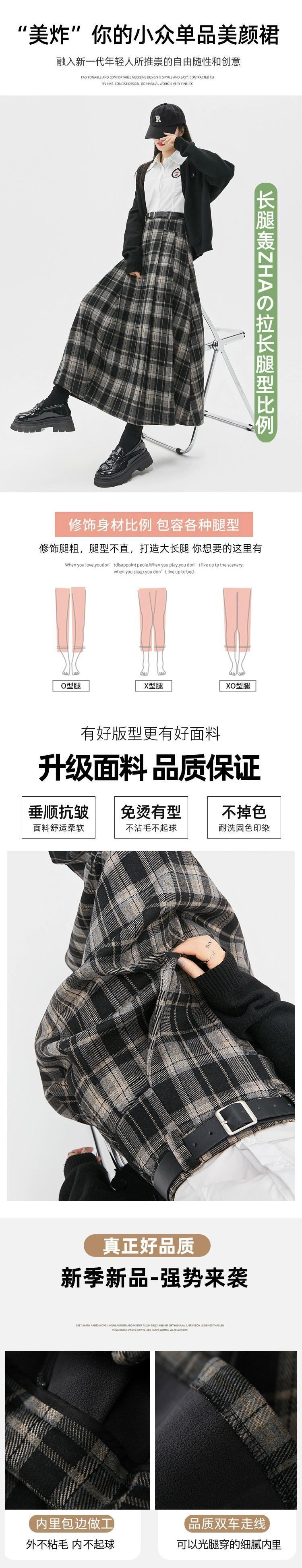 ベルベット肥厚 A ラインスカート女性の秋と冬の新ウールチェック柄プリーツスカートハイウエストスリムロング大きな裾スカート ハイウェスト オータム 秋物 ウィンター 冬物 Aライン 7460044319298442 | framboise21