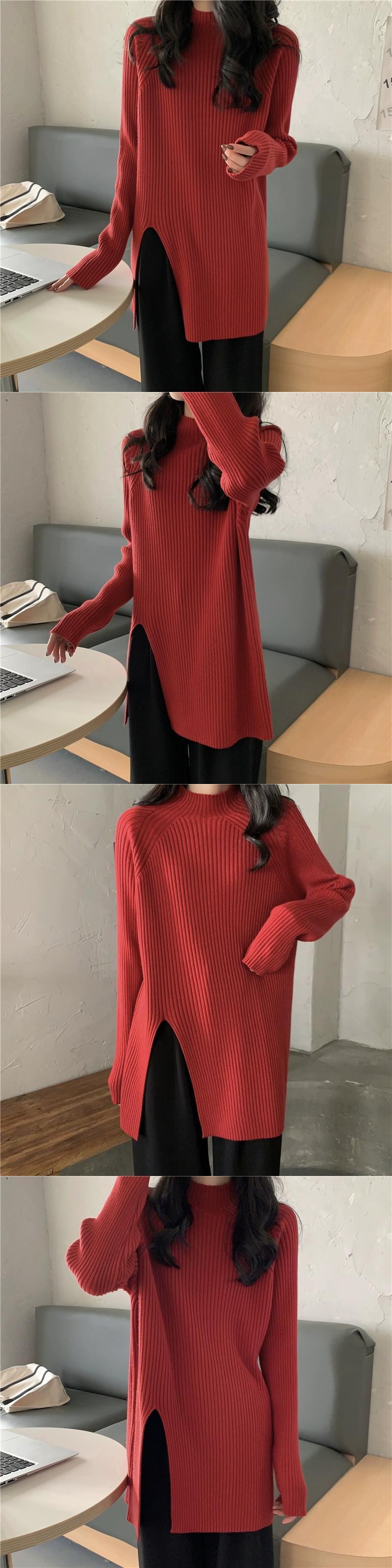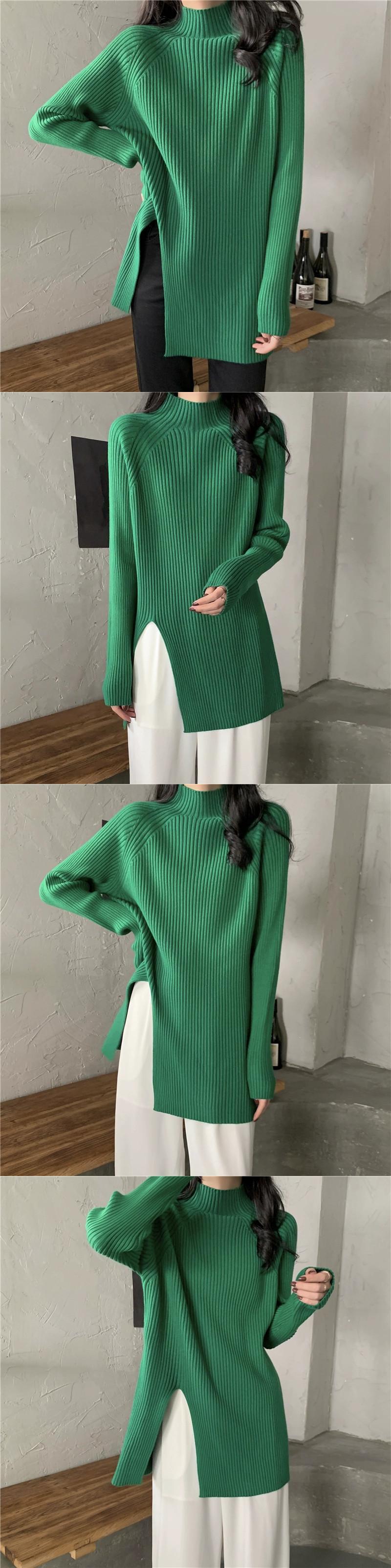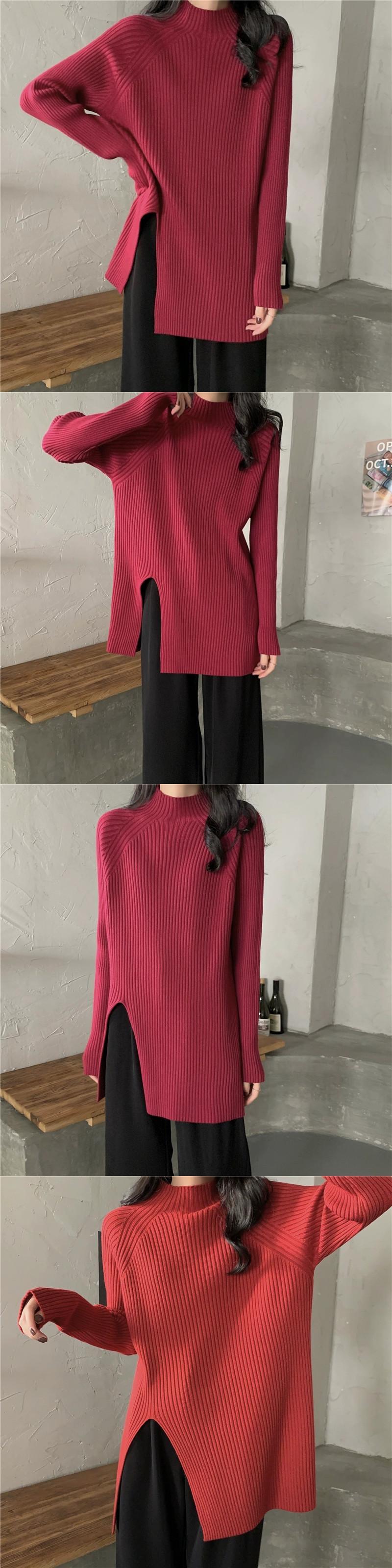 秋と冬の茶色のミッドハイカラーボトリングシャツレディース、怠惰なインナースタイル、ミッドレングスのスリット、右肩、ミッドカラーニットセーター オータム 秋物 ウィンター 冬物 7460075427935062 | framboise21