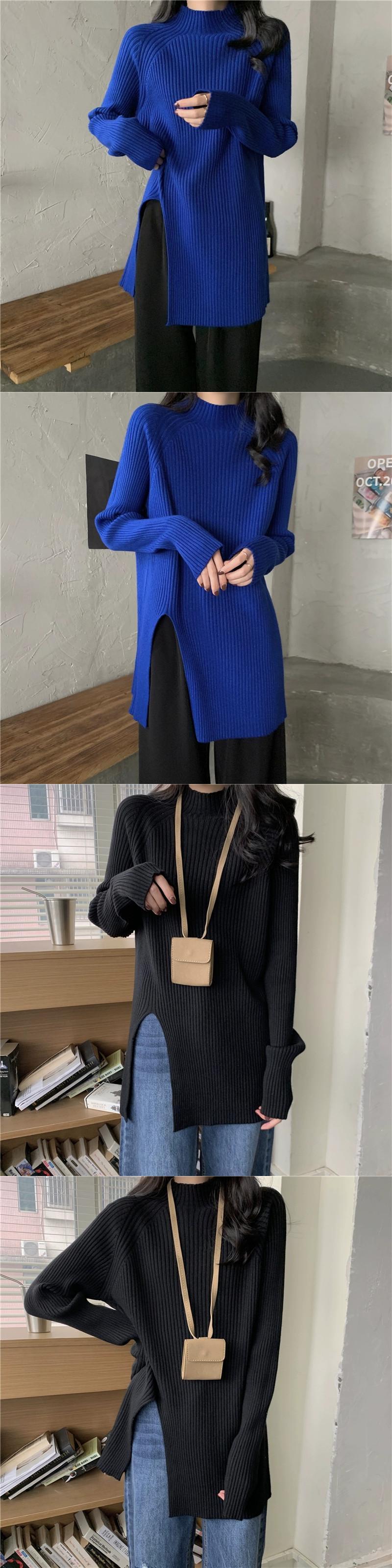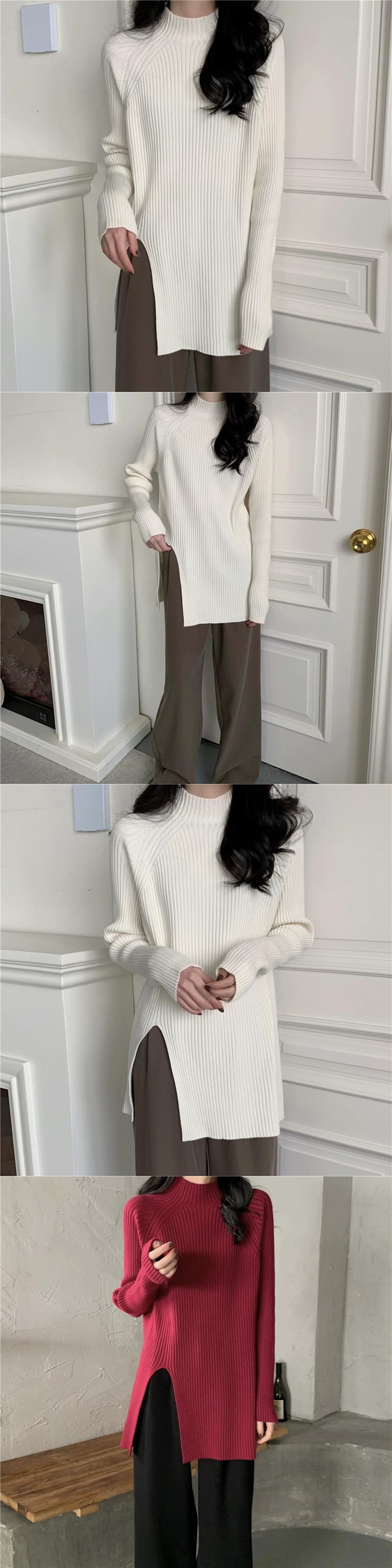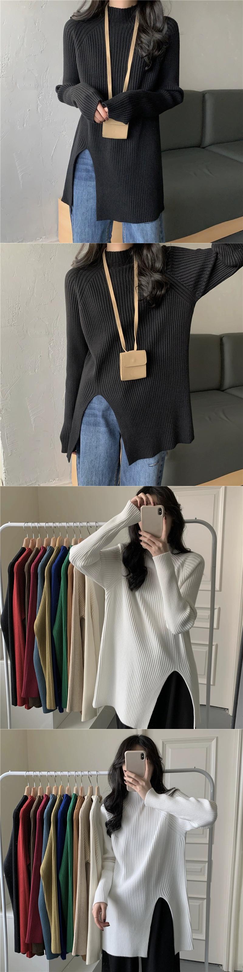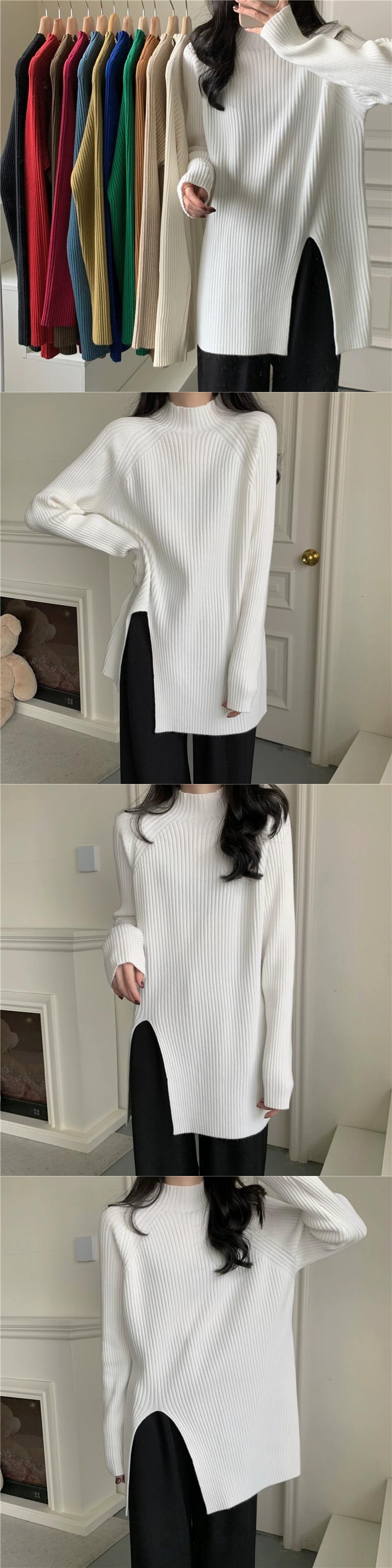 秋と冬の茶色のミッドハイカラーボトリングシャツレディース、怠惰なインナースタイル、ミッドレングスのスリット、右肩、ミッドカラーニットセーター オータム 秋物 ウィンター 冬物 7460075427935062 | framboise21