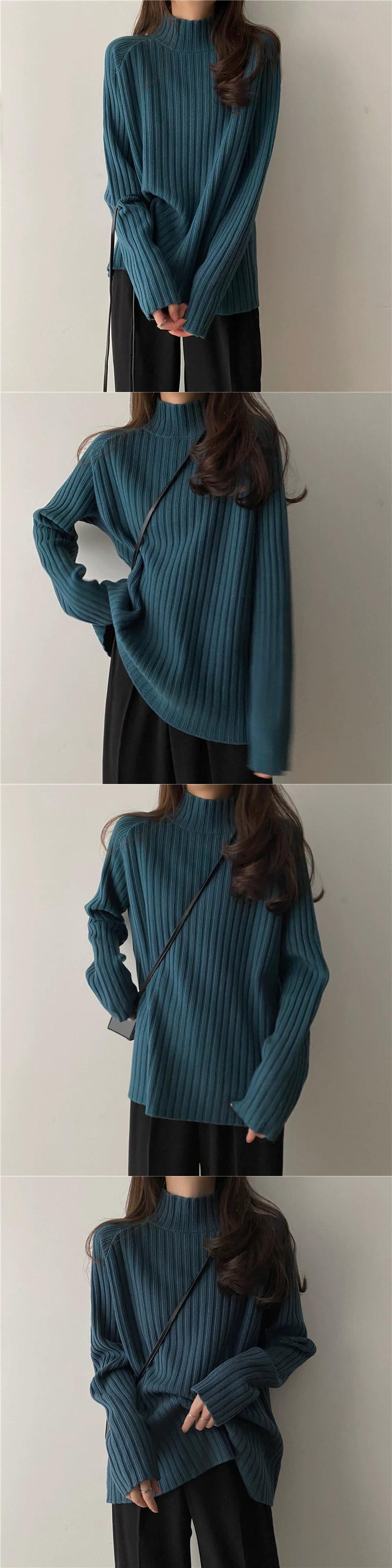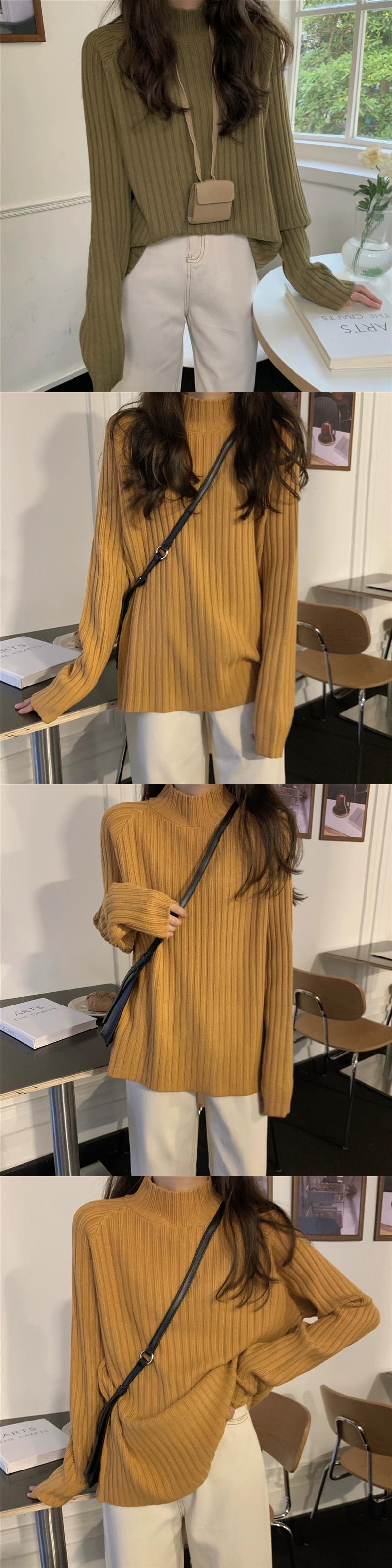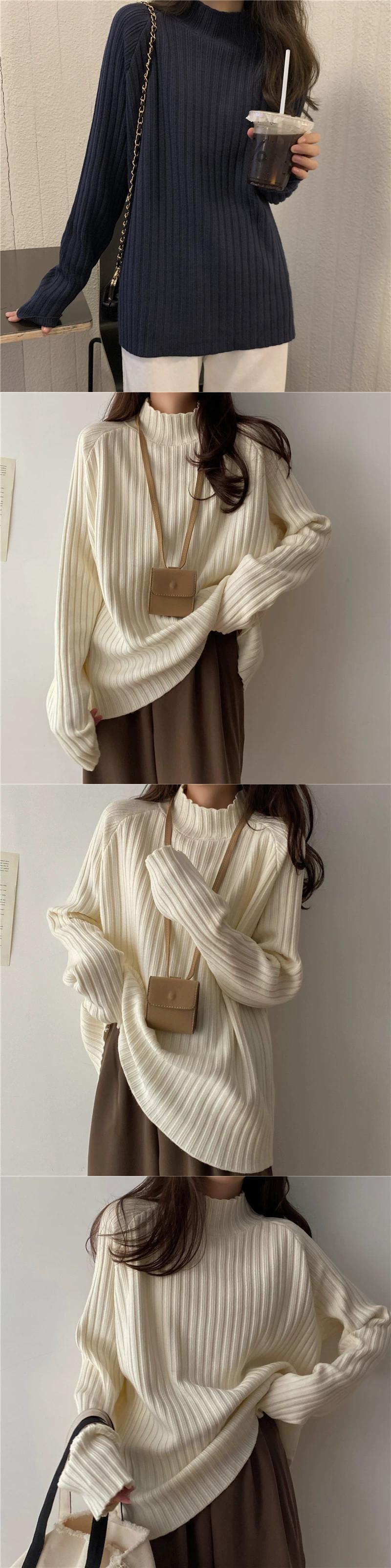 白いハーフタートルネックセーターの女性、春と秋のスタイル、ルーズスタイル、怠惰なスタイル、コート、内側に長袖ニットトップ ロング ホワイト スプリング 春物 オータム 秋物 7460032832023318 | framboise21