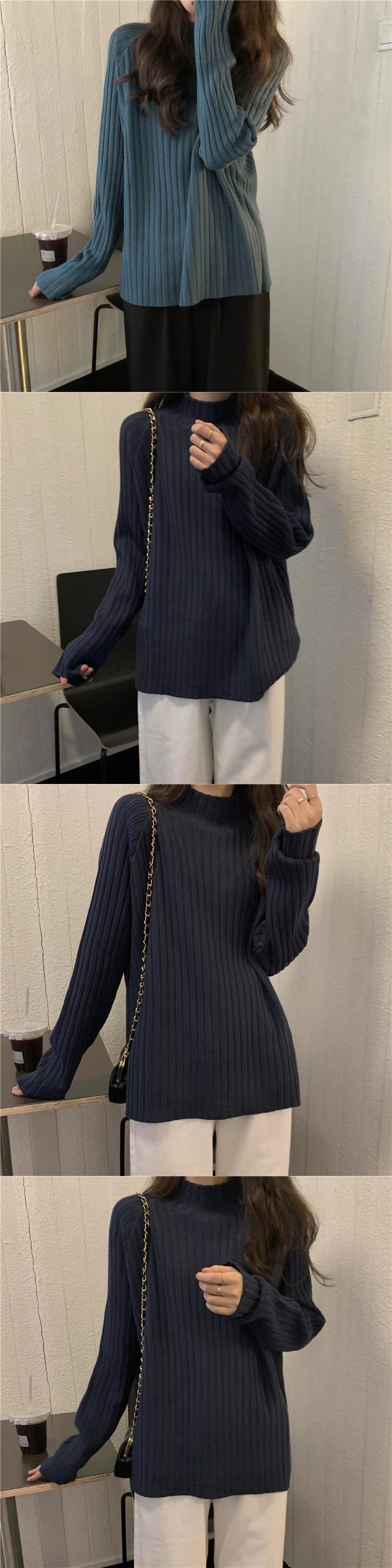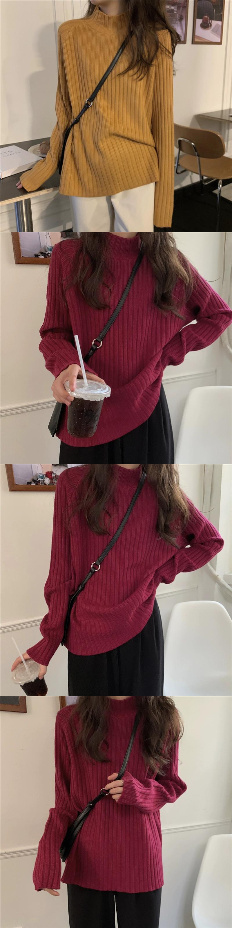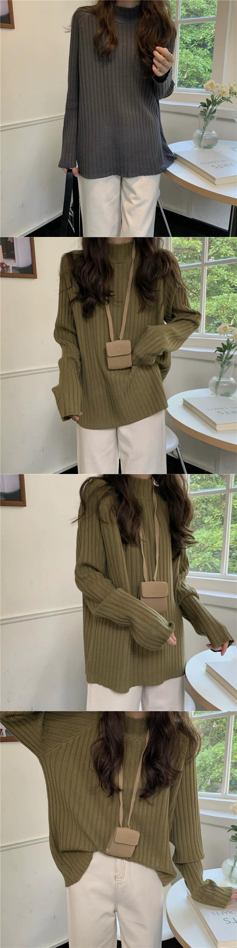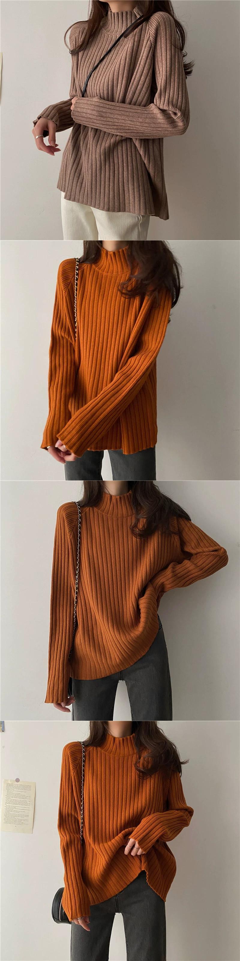 白いハーフタートルネックセーターの女性、春と秋のスタイル、ルーズスタイル、怠惰なスタイル、コート、内側に長袖ニットトップ ロング ホワイト スプリング 春物 オータム 秋物 7460032832023318 | framboise21