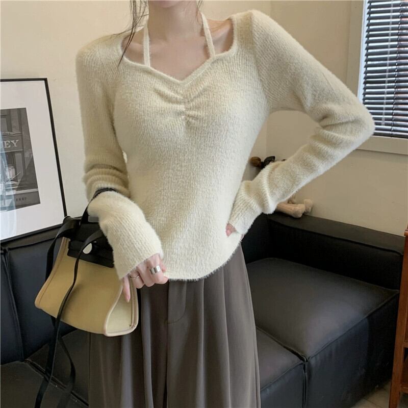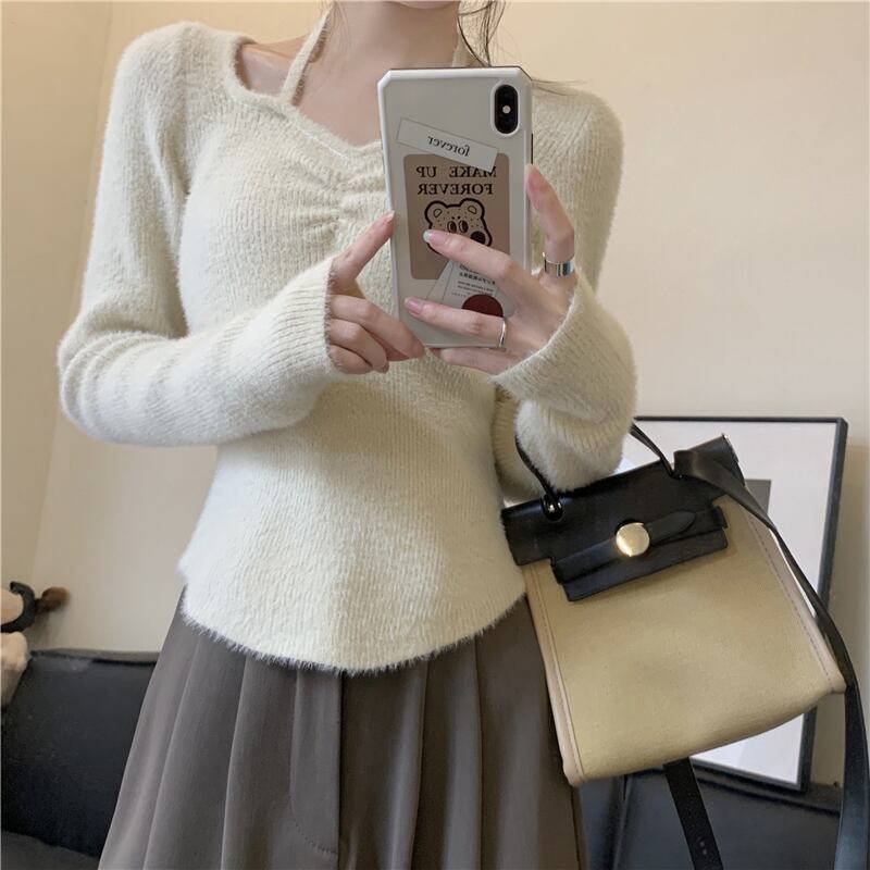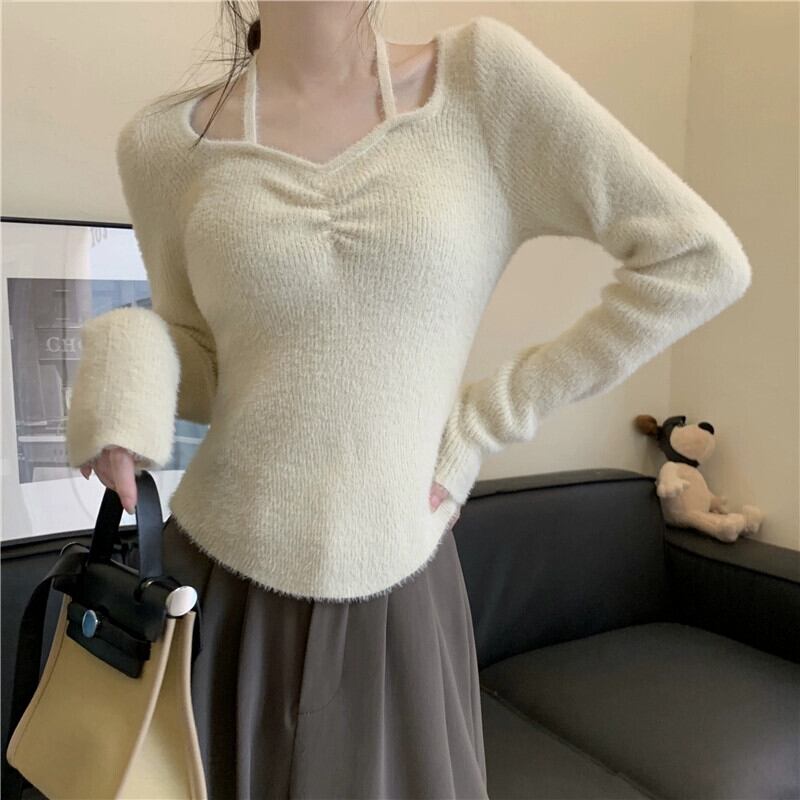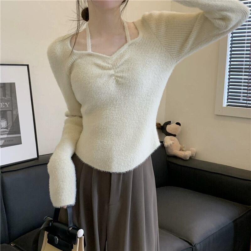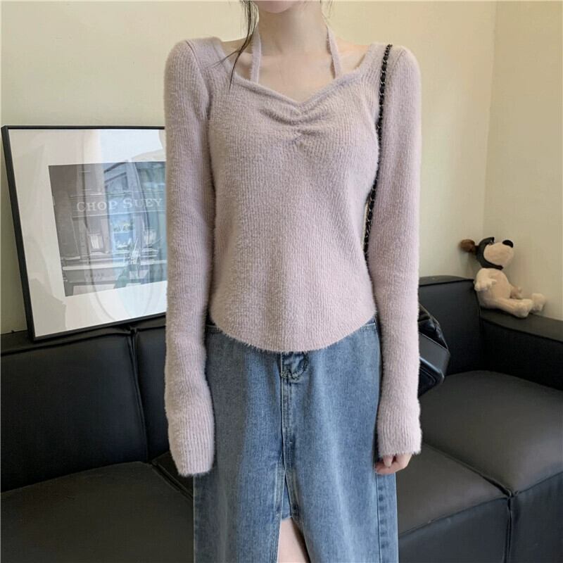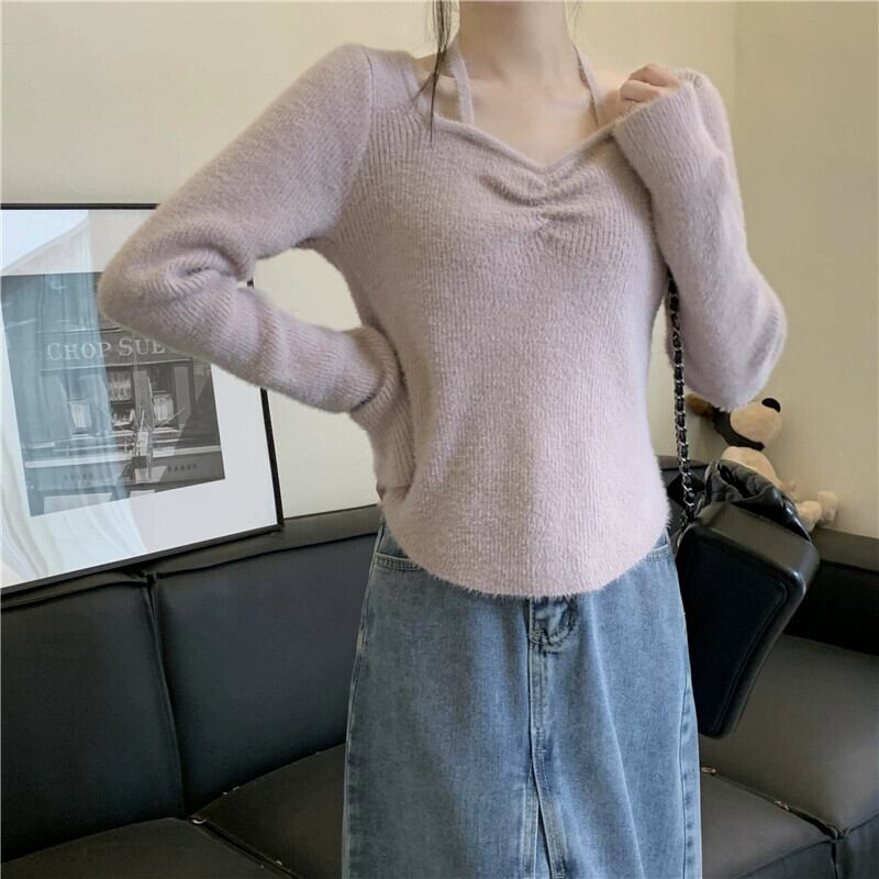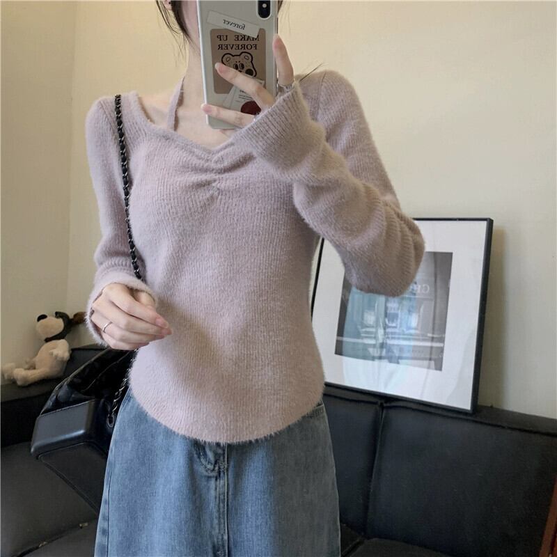 秋と冬のホルターネックローネックボトミングシャツレディース、ウエスタンスタイルのスリムフィットインナーレイヤー、厚く不規則なショートミンクウールニットセーター オータム 秋物 ウィンター 冬物 7460027540811944 | framboise21