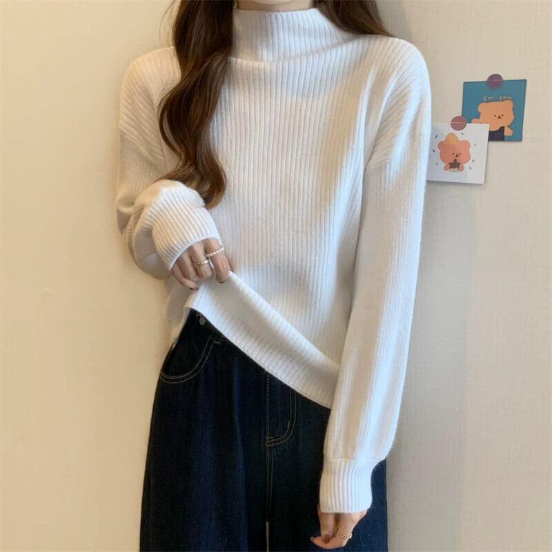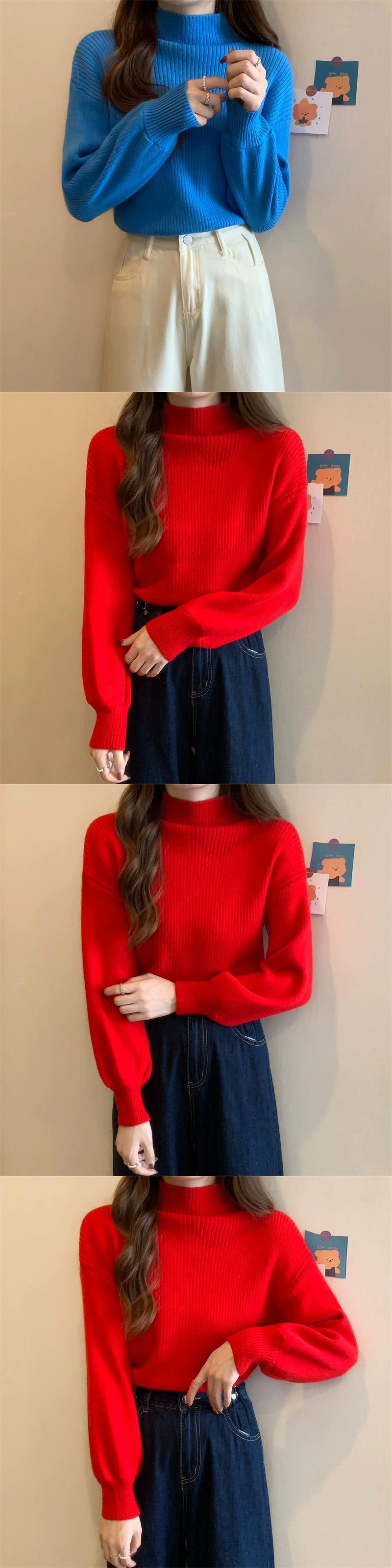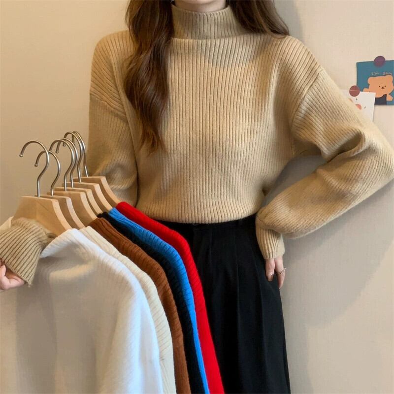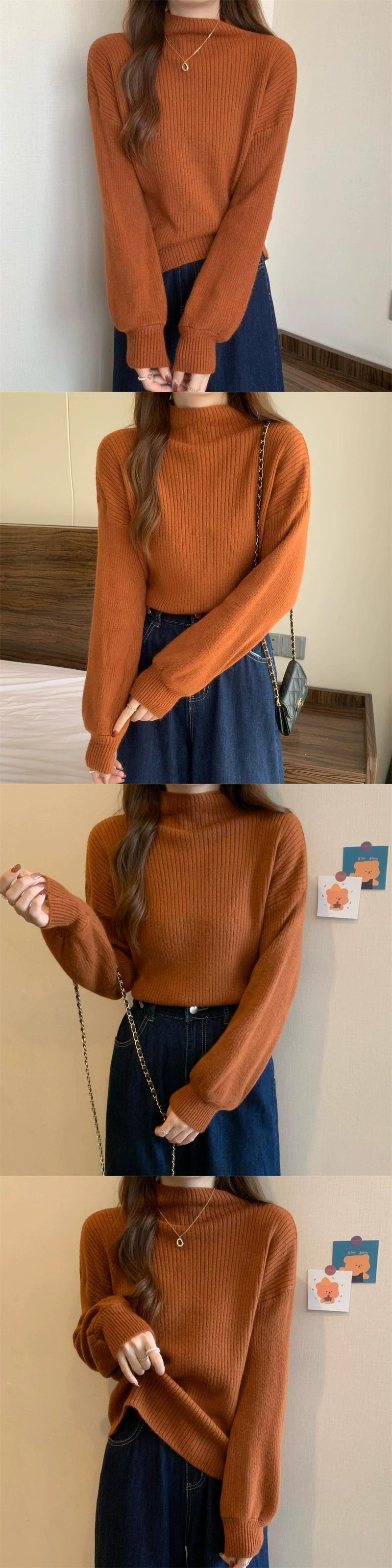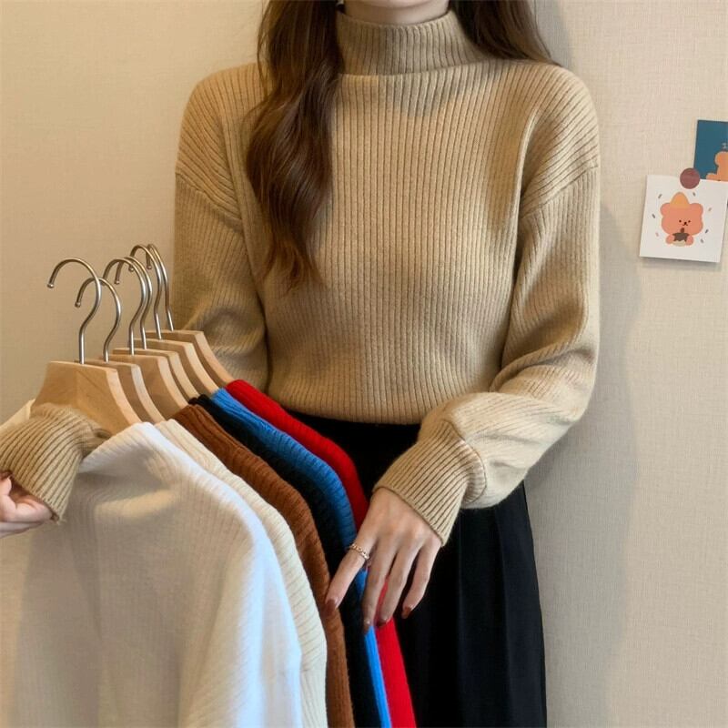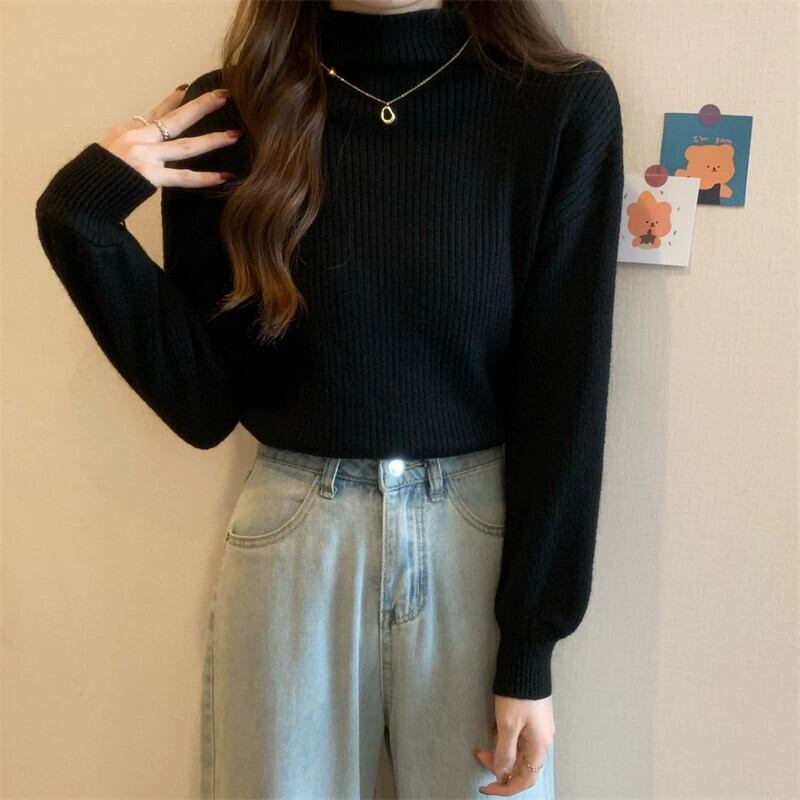 ハーフタートルネックセーターの女性、2023年秋冬の新しいスタイル、外側と内側がエレガントなルーズショートミッドカラーニットボトムシャツ オータム 秋物 ウィンター 冬物 746001444017609 | framboise21