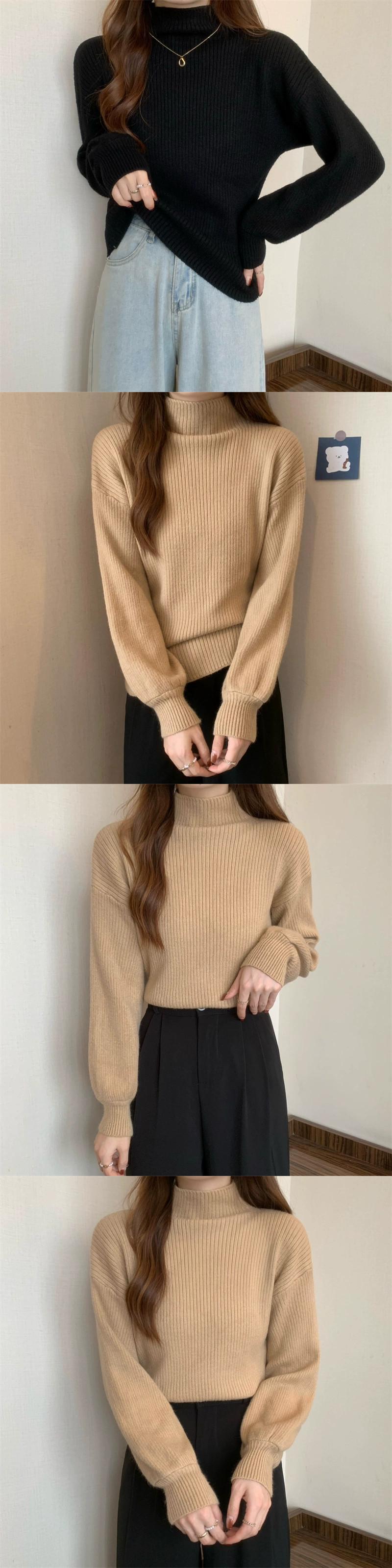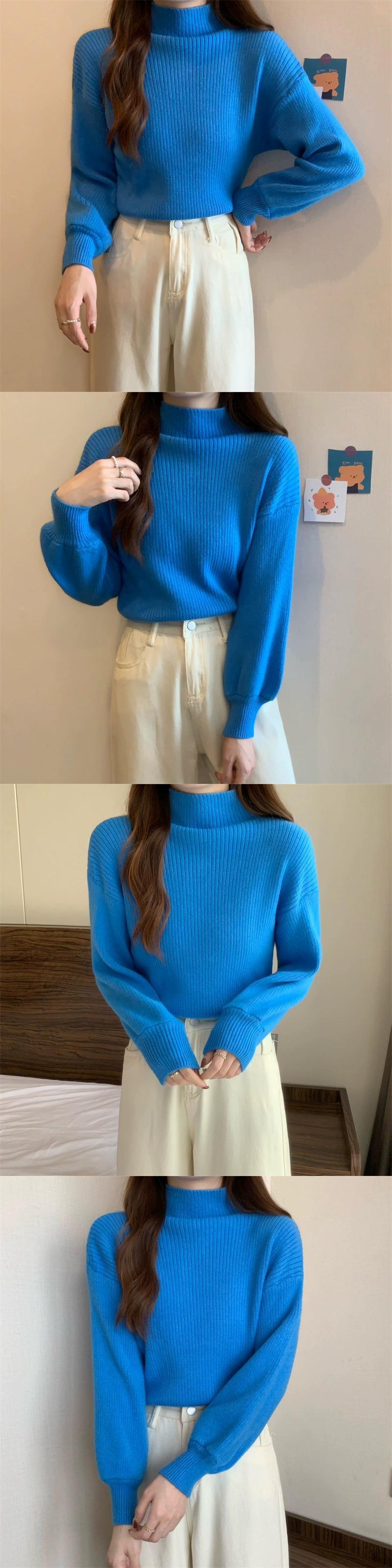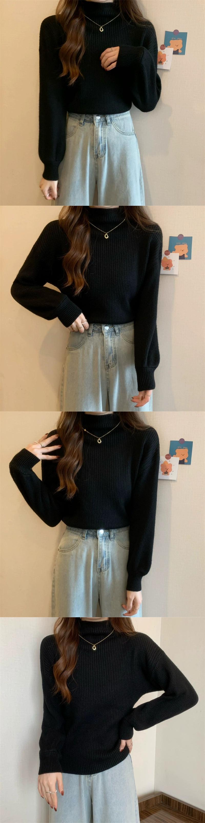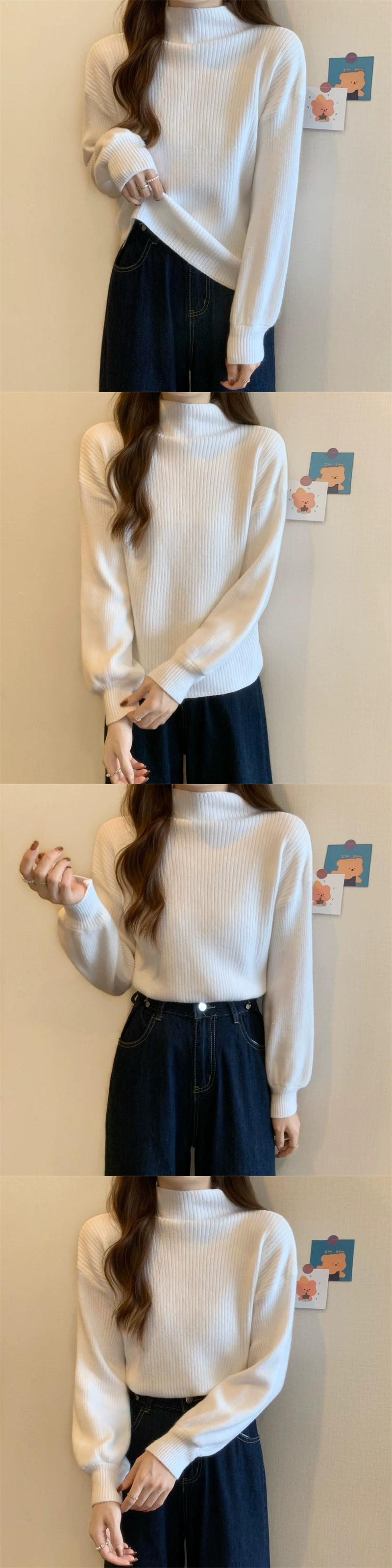 ハーフタートルネックセーターの女性、2023年秋冬の新しいスタイル、外側と内側がエレガントなルーズショートミッドカラーニットボトムシャツ オータム 秋物 ウィンター 冬物 746001444017609 | framboise21