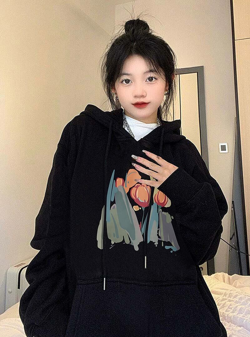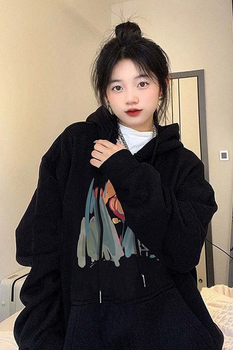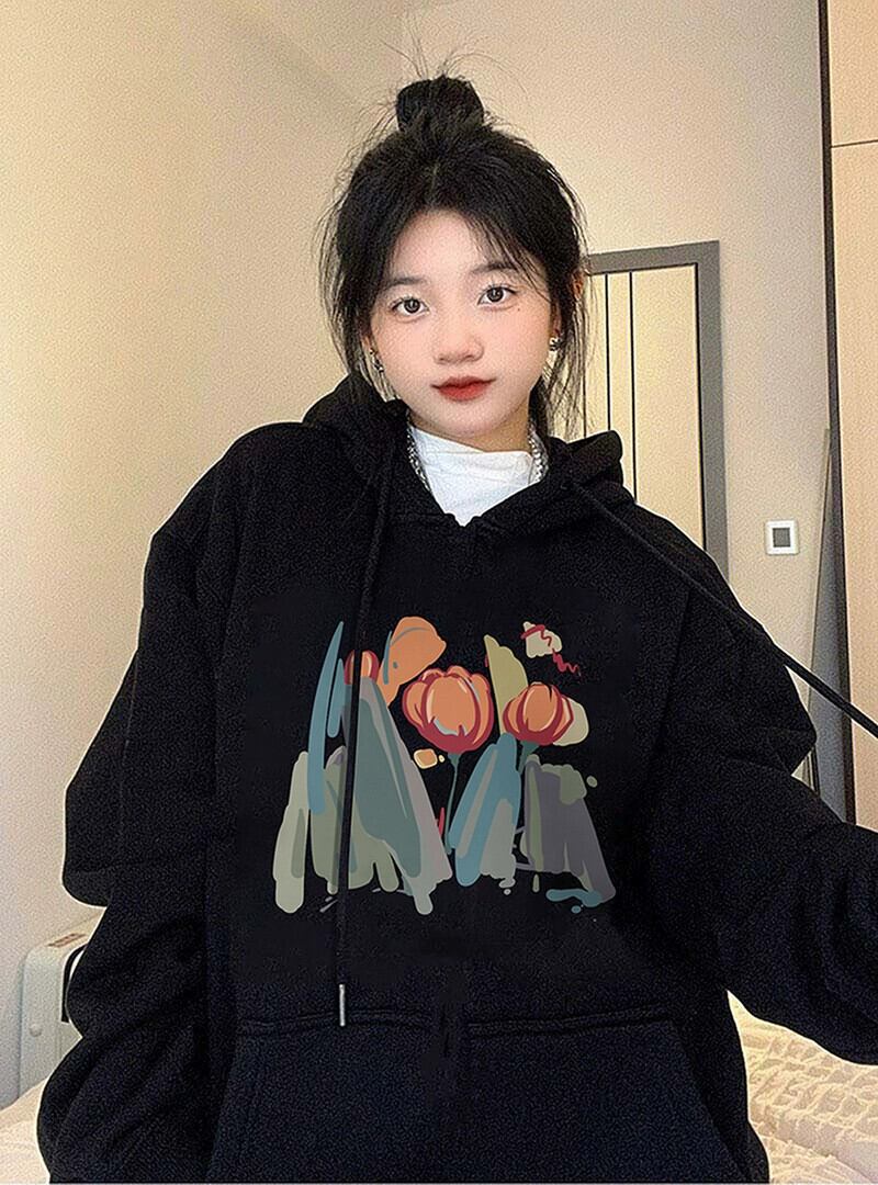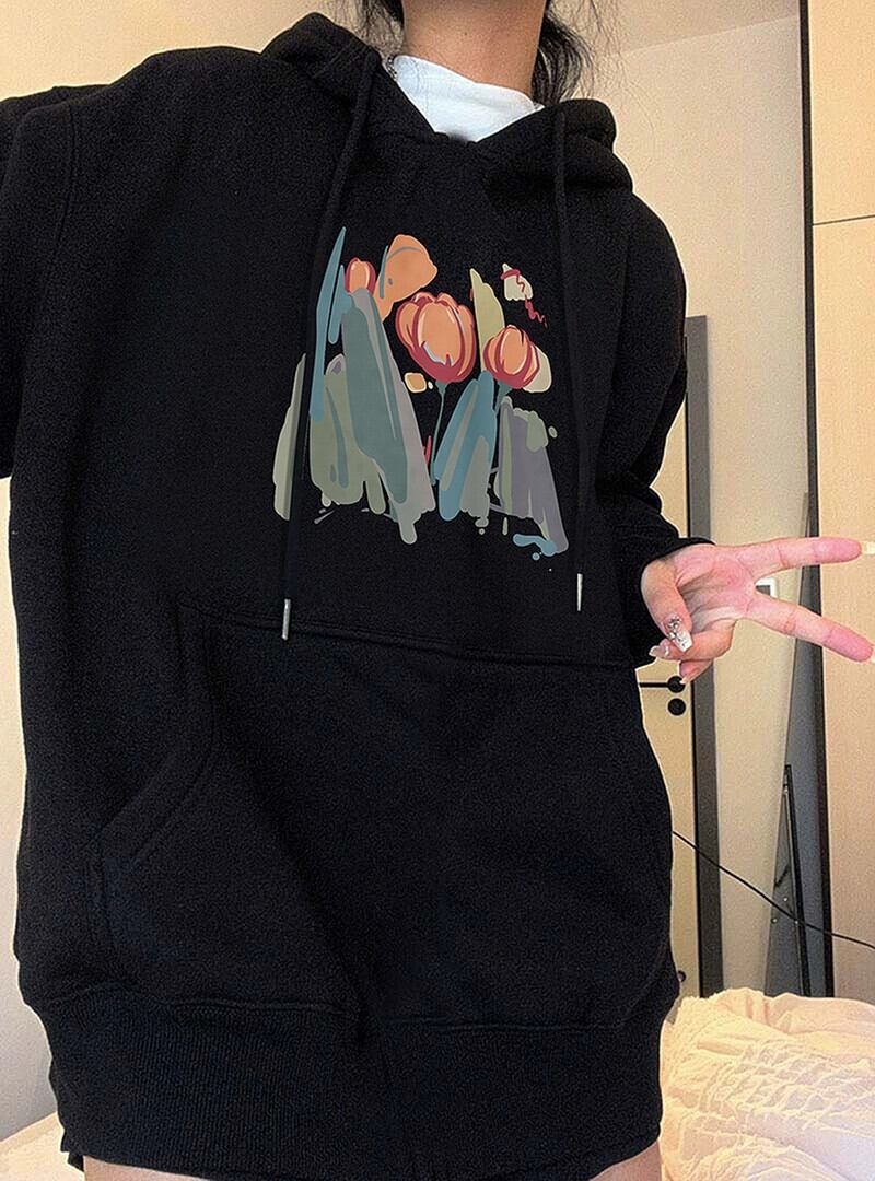 アメリカンレトロなフード付きスウェットシャツの女性の春と秋2023新しいオーバーサイズルーズ怠惰なミッドレングスプリントトップ スプリング 春物 オータム 秋物 7460053969886137 | framboise21