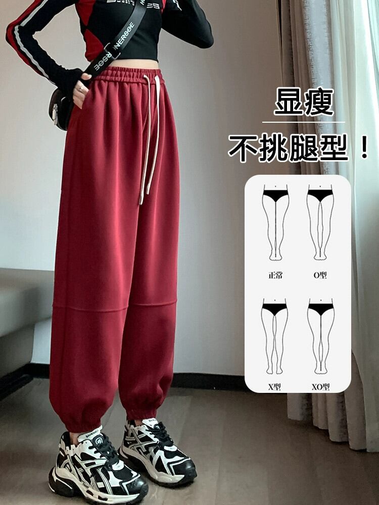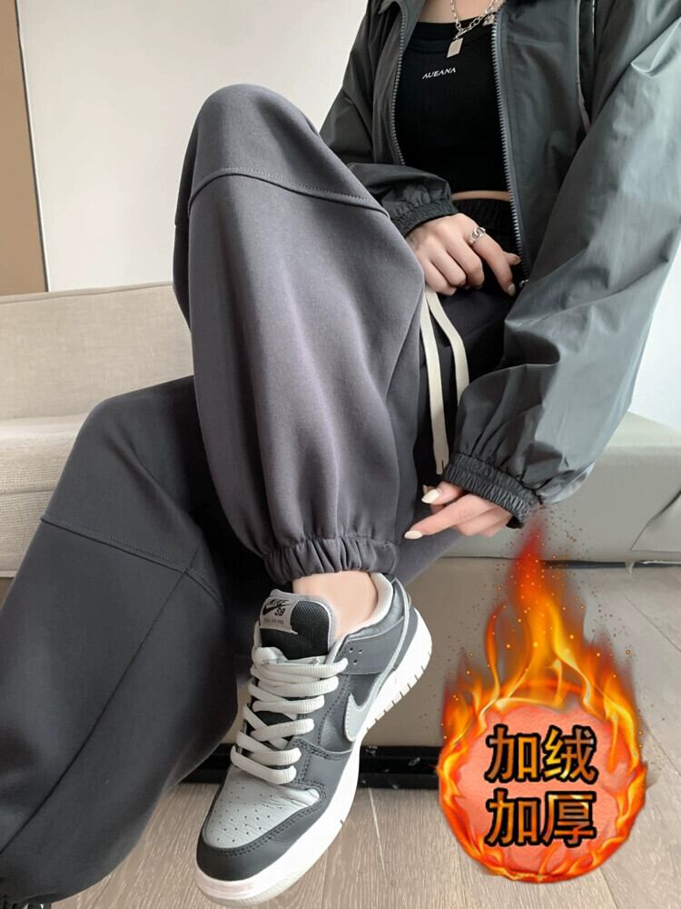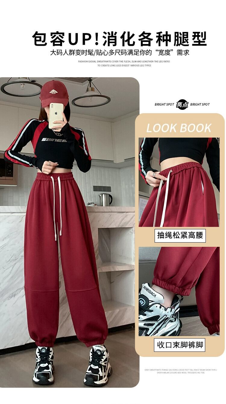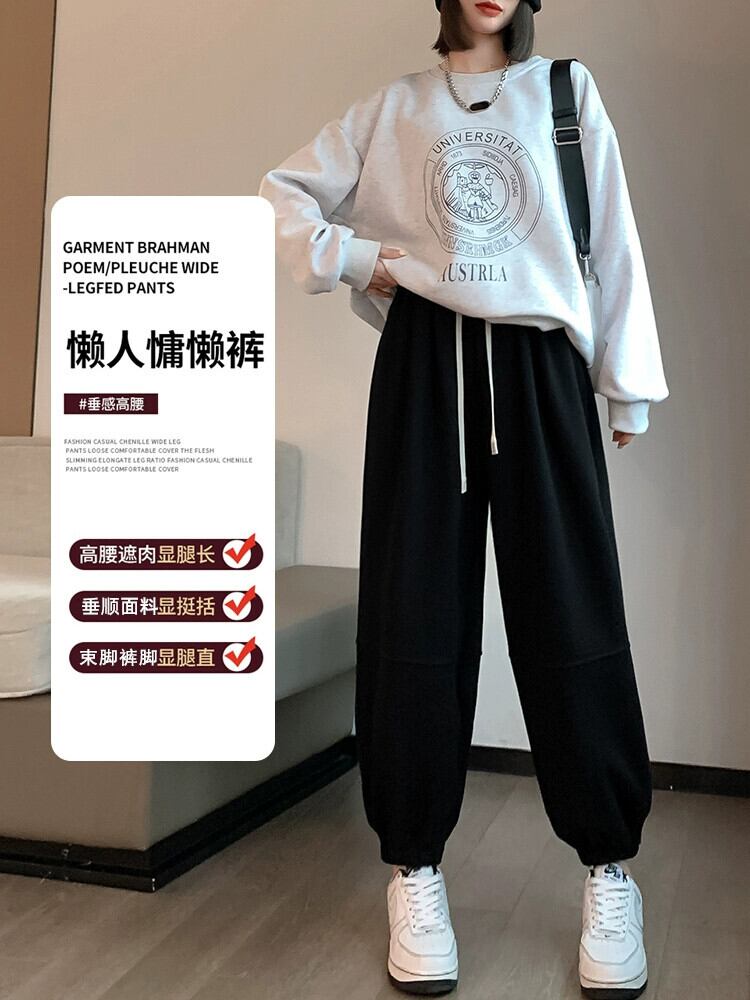 女性のベルベット肥厚スウェットパンツ秋と冬の 9 点ハーレムパンツルーズ痩身弾性ウエストドローストリングレッグカジュアルパンツ エラスティック 伸縮 オータム 秋物 ウィンター 冬物 7460067377592075 | framboise21