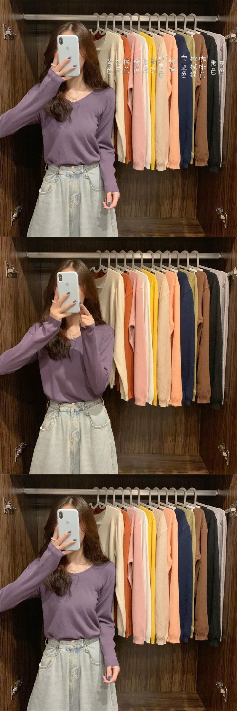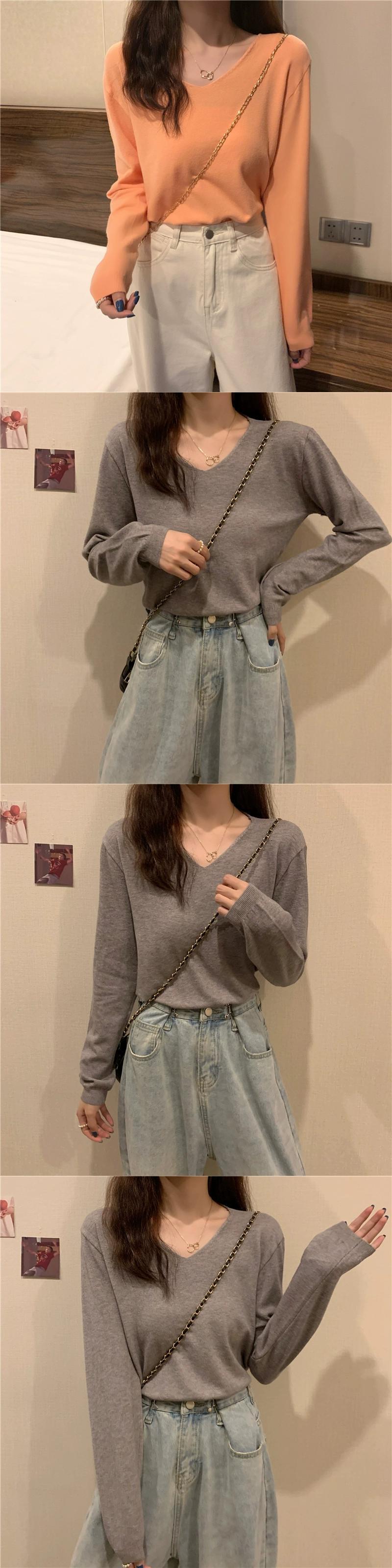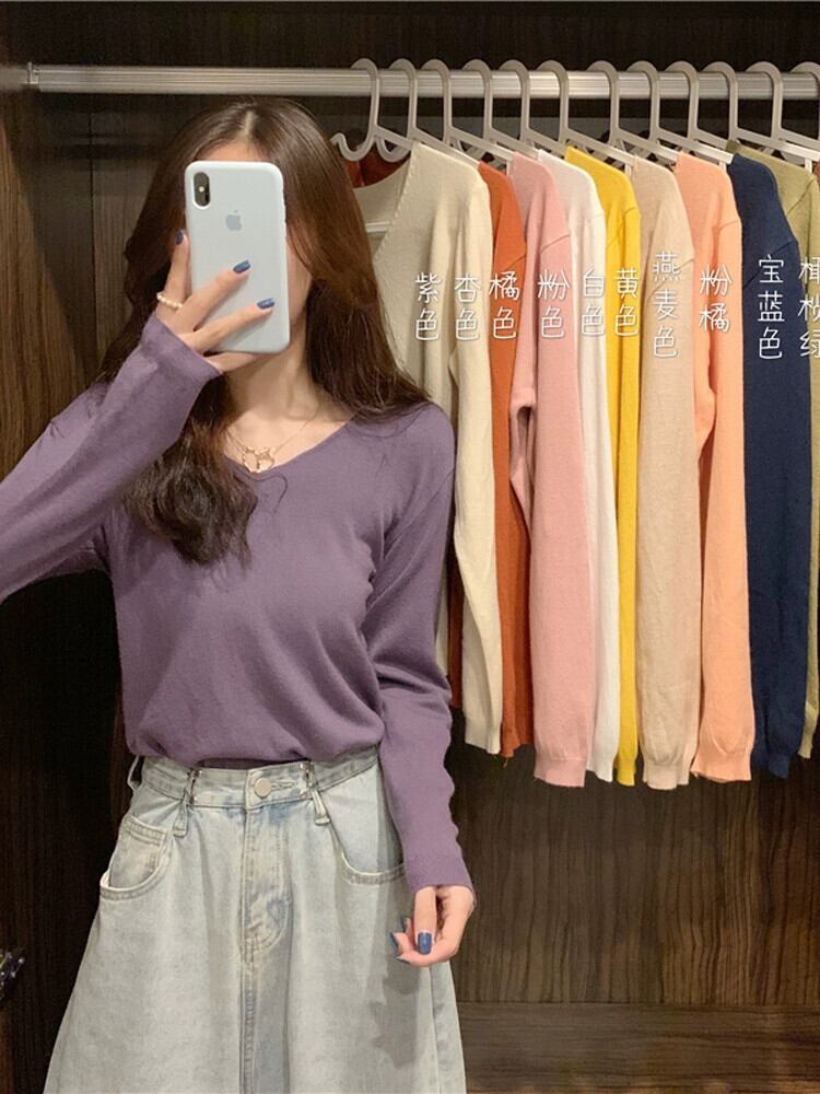 V ネックセーターボトリングシャツ 2023 新しい女性の秋冬ファッショナブルでスリムフィットオレンジ長袖ニットトップ ロング オータム 秋物 ウィンター 冬物 Vネック 7460072467941758 | framboise21