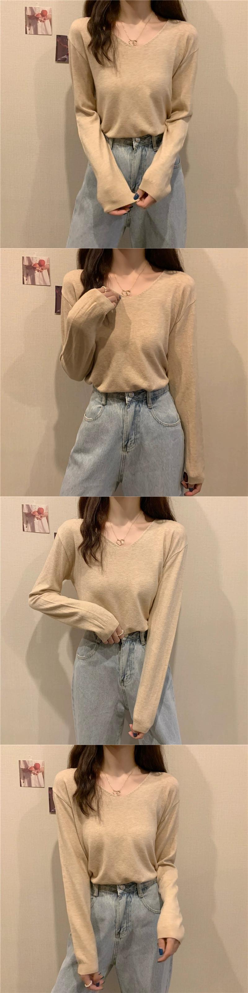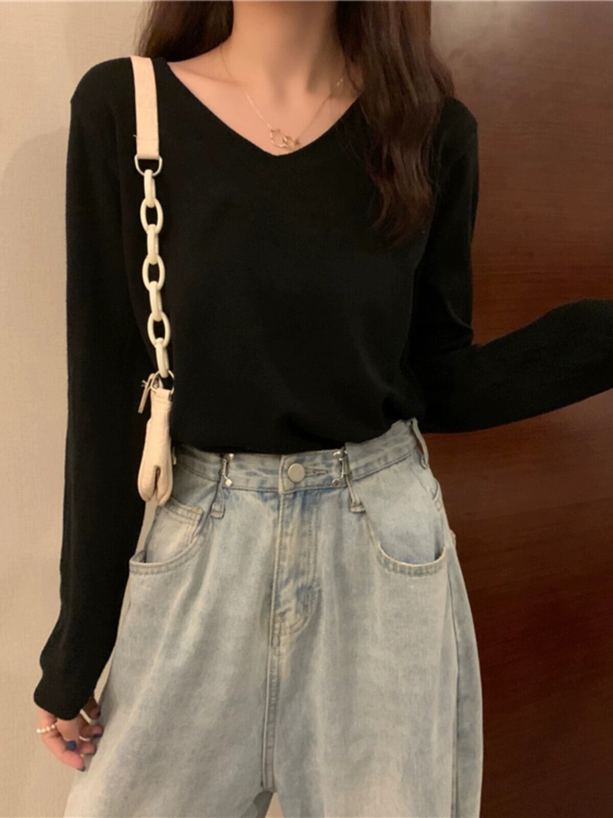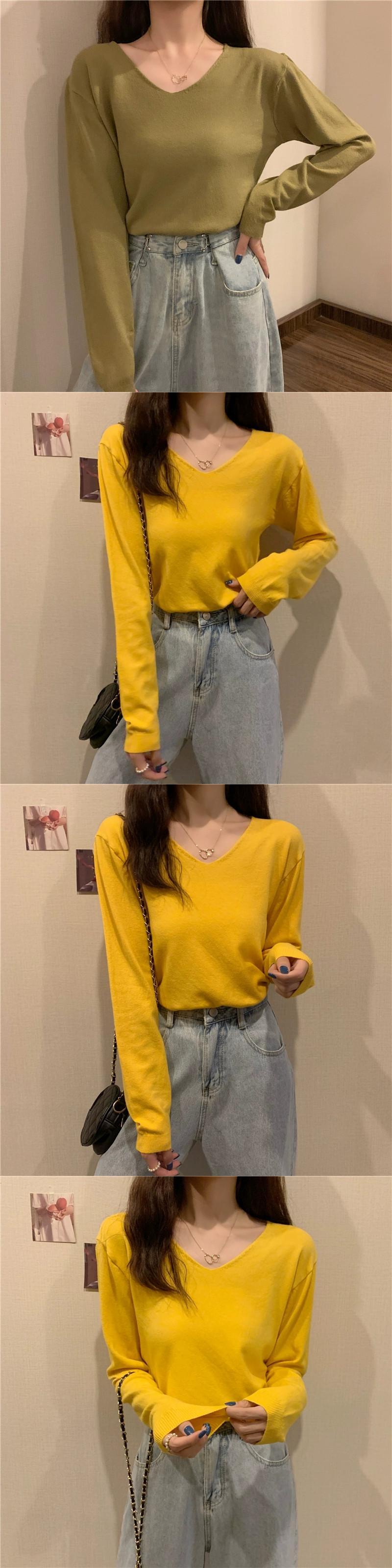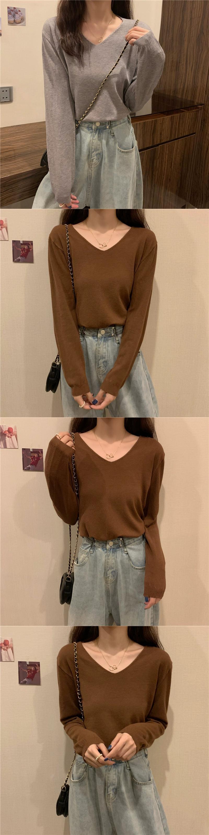 V ネックセーターボトリングシャツ 2023 新しい女性の秋冬ファッショナブルでスリムフィットオレンジ長袖ニットトップ ロング オータム 秋物 ウィンター 冬物 Vネック 7460072467941758 | framboise21