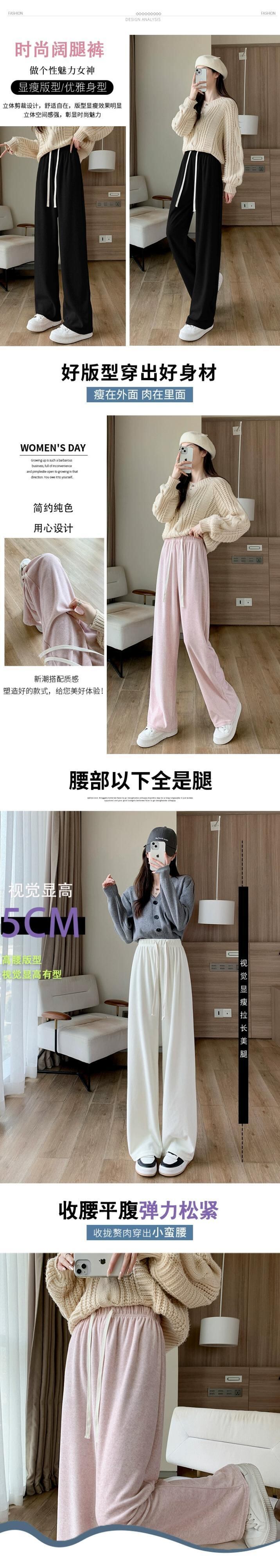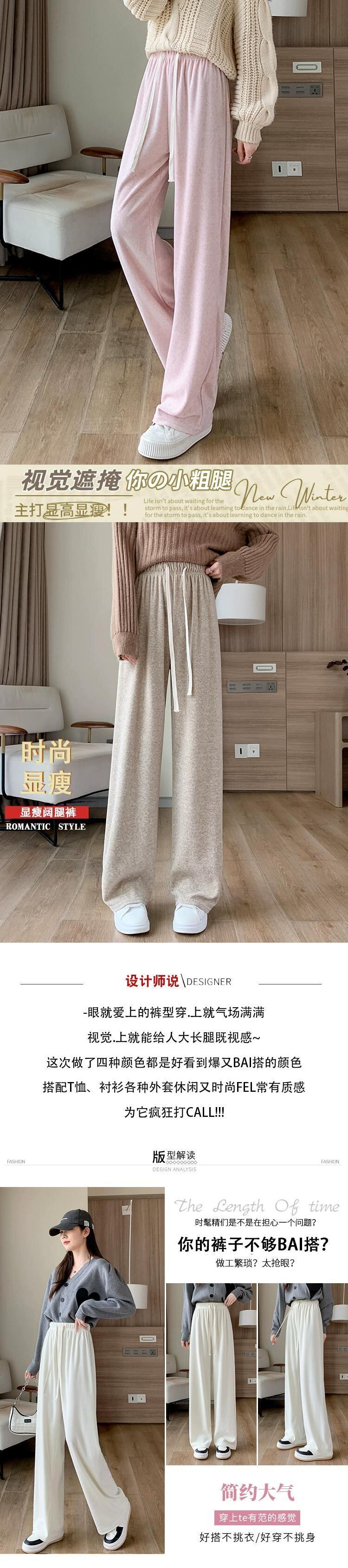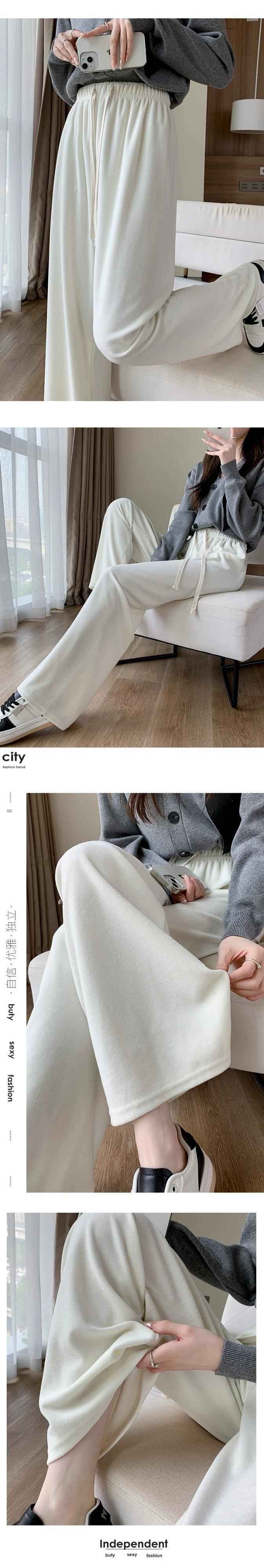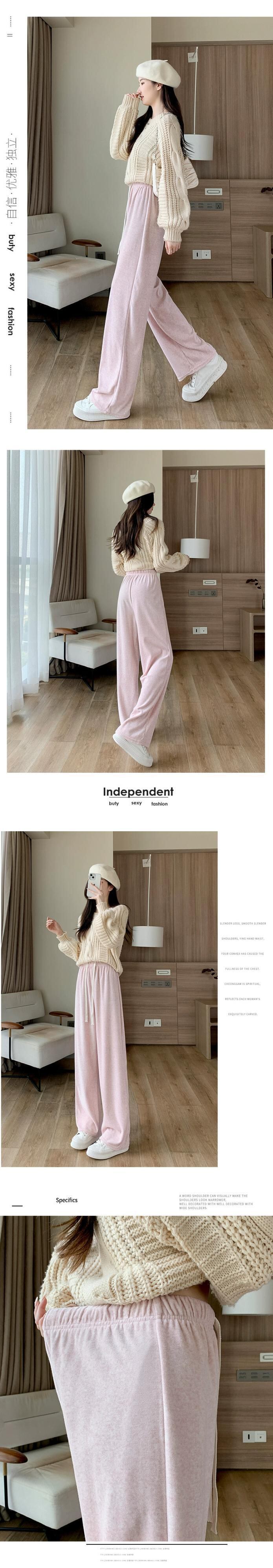 ピンクベルベット肥厚パンツ女性の秋と冬のドレープもち米パンツのナローバージョンハイウエストストレートカジュアルカシミアワイドレッグパンツ ハイウェスト オータム 秋物 ウィンター 冬物 ワイドパンツ 7460017755669617 | framboise21