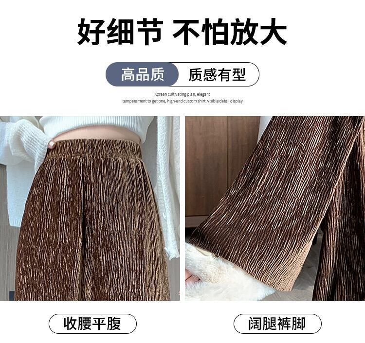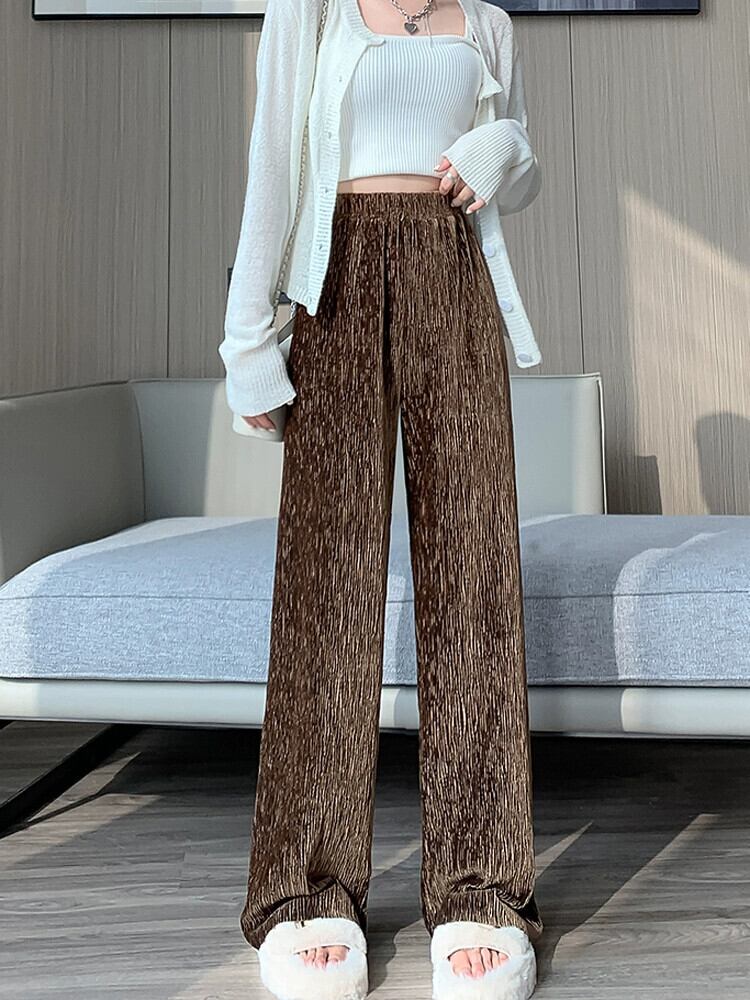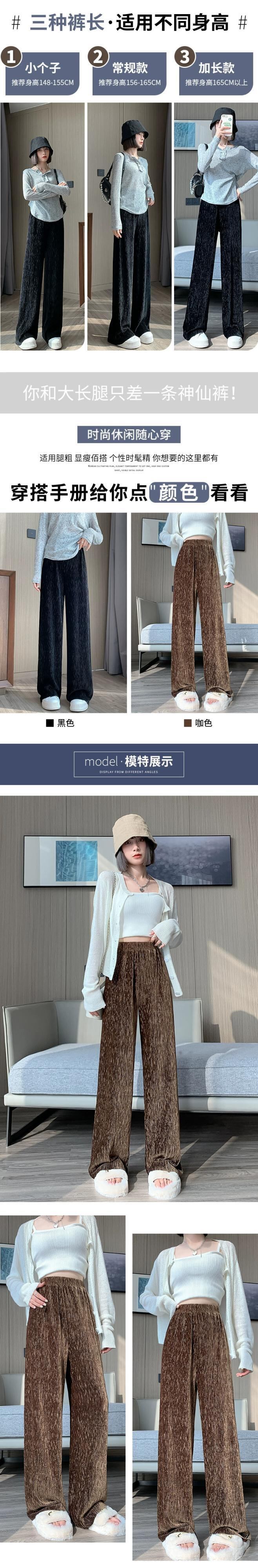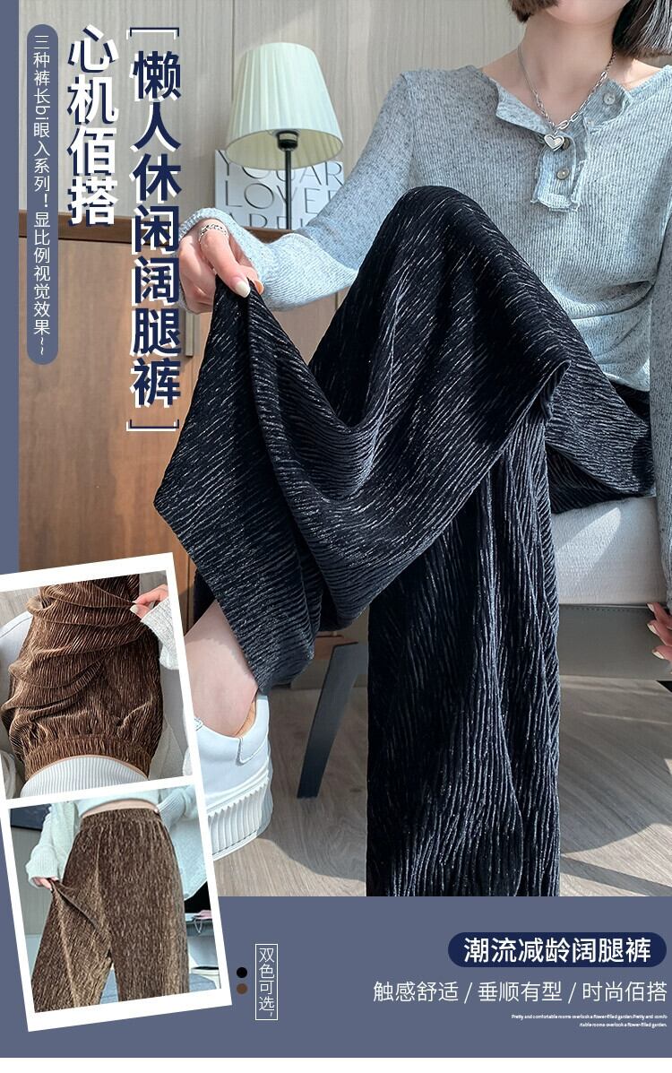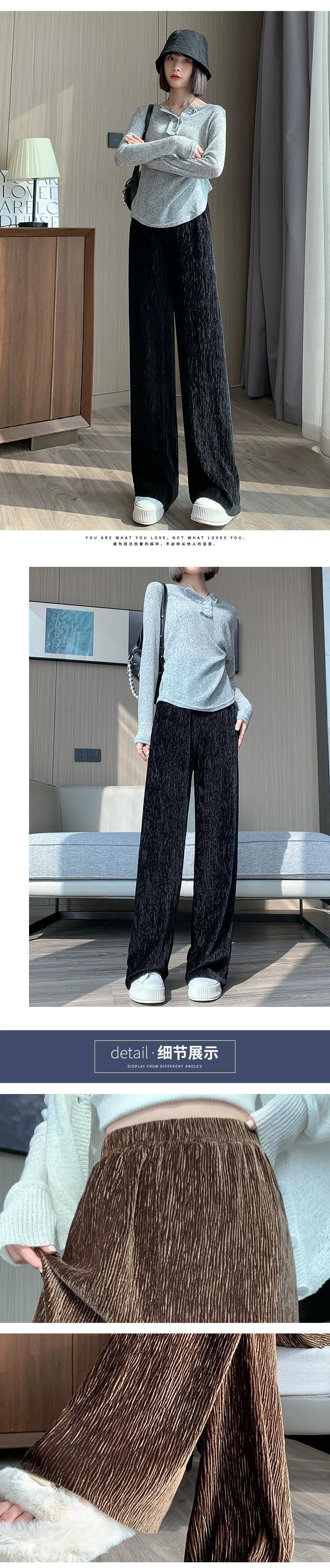 ブラックゴールドベルベットワイドレッグパンツレディース秋冬ハイウエストフロアレングスパンツ、ルーズ、スリム、万能ストレートレッグカジュアルパンツ オータム 秋物 ウィンター 冬物 7460083993729727 | framboise21