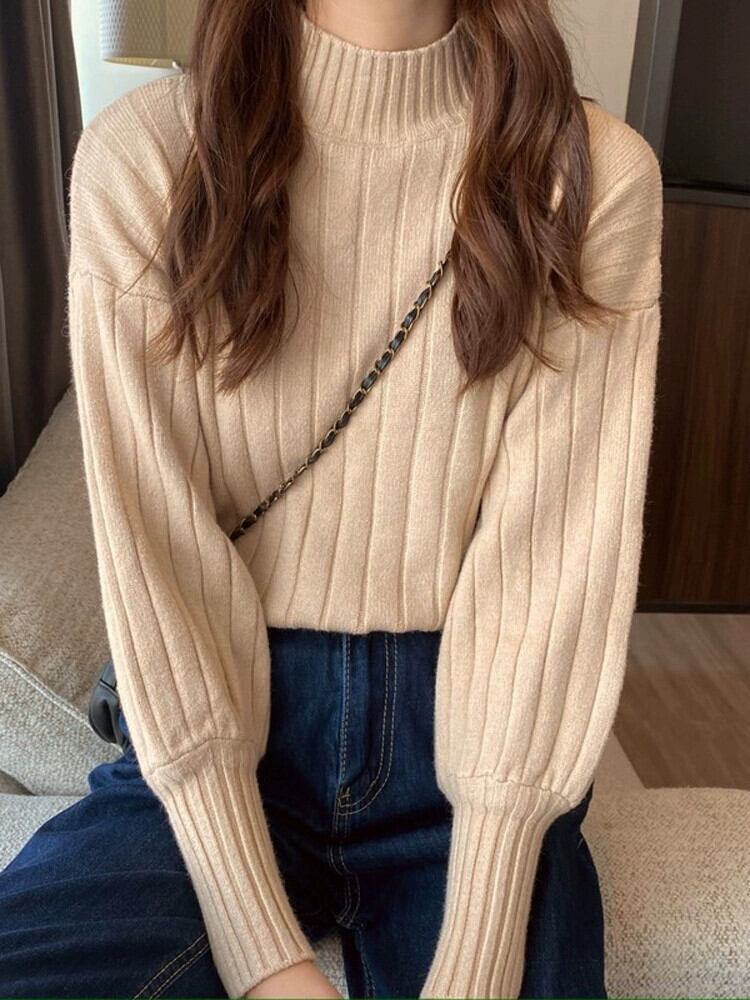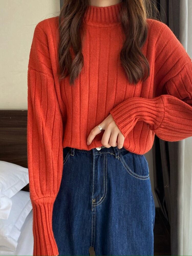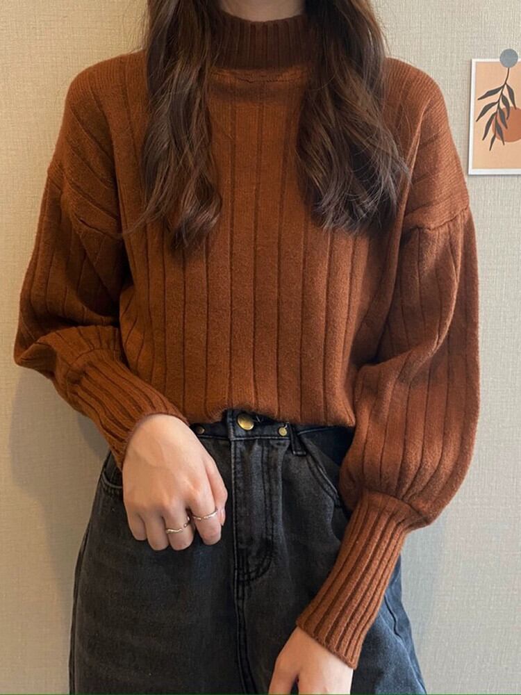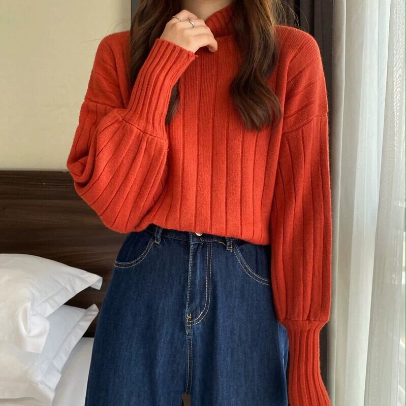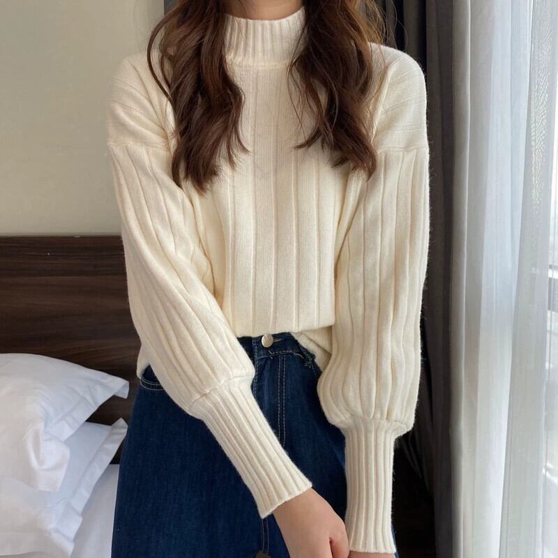秋と冬の厚いハーフタートルネックセーターの女性、ルーズなスタイルのアウターウェア、内側にランタンが付いた怠惰なスタイル、長袖のボトムセーター ロング オータム 秋物 ウィンター 冬物 7460064257219103 | framboise21