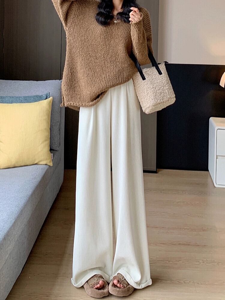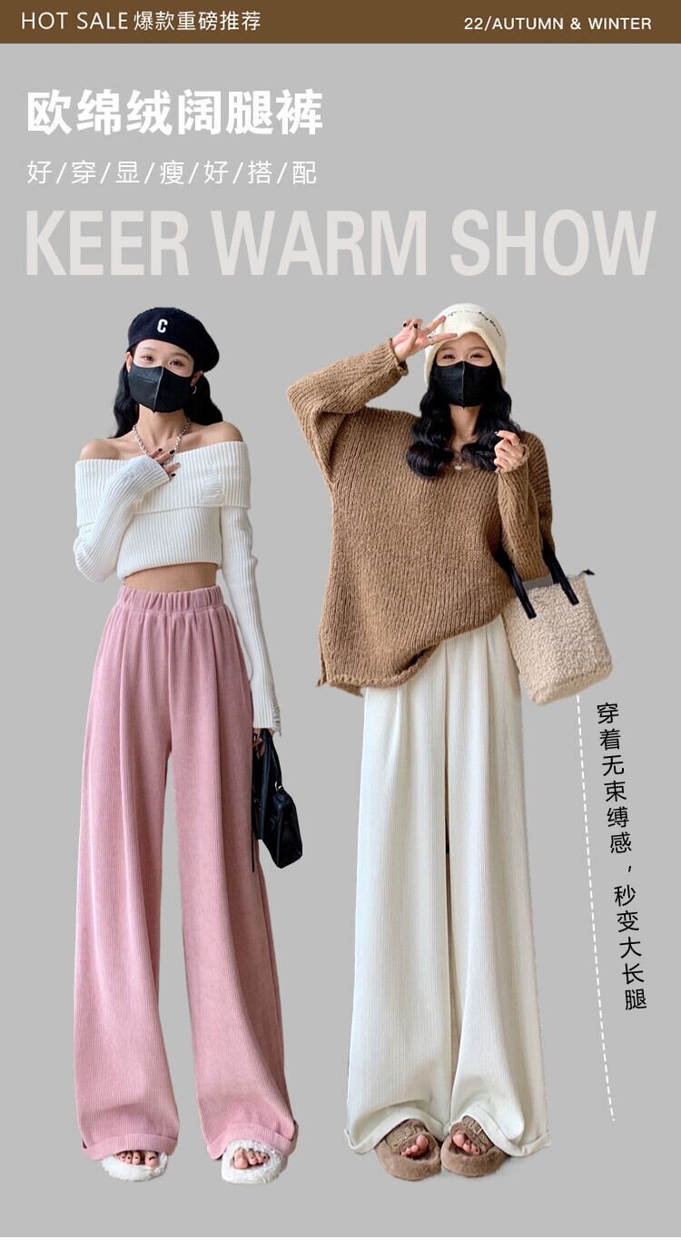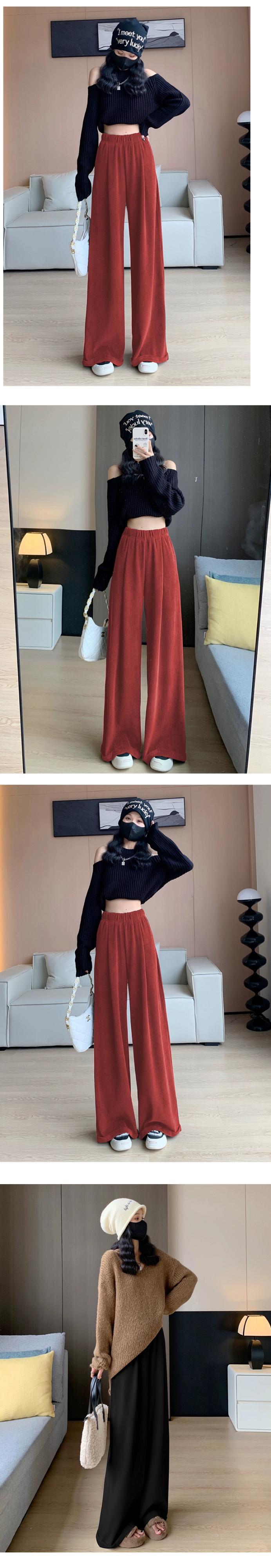 ナローシェニールワイドレッグパンツレディース秋冬プラスベルベットカジュアルパンツハイウエストドレープストレートコーデュロイパンツピンク オータム 秋物 ウィンター 冬物 7460028411369013 | framboise21