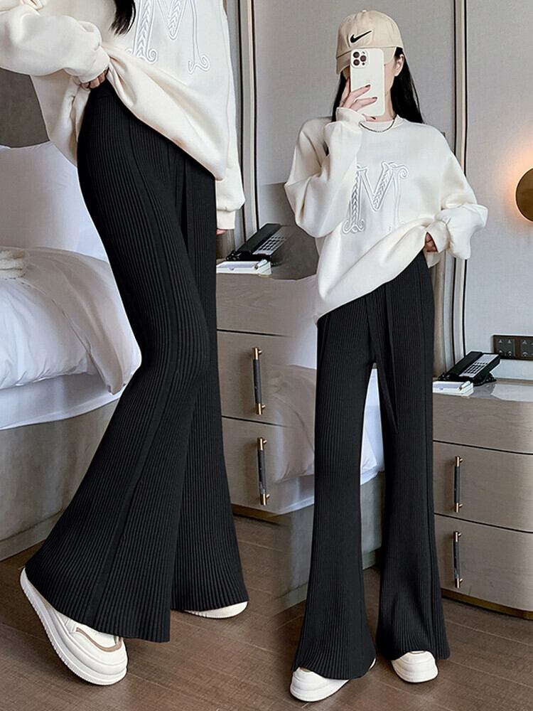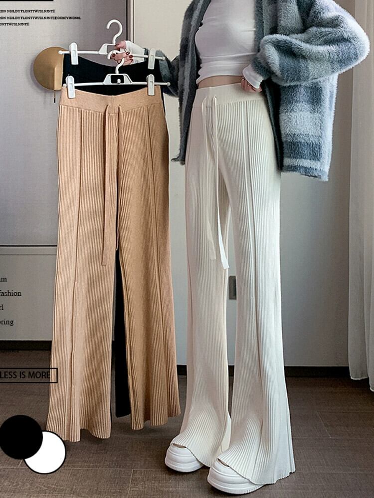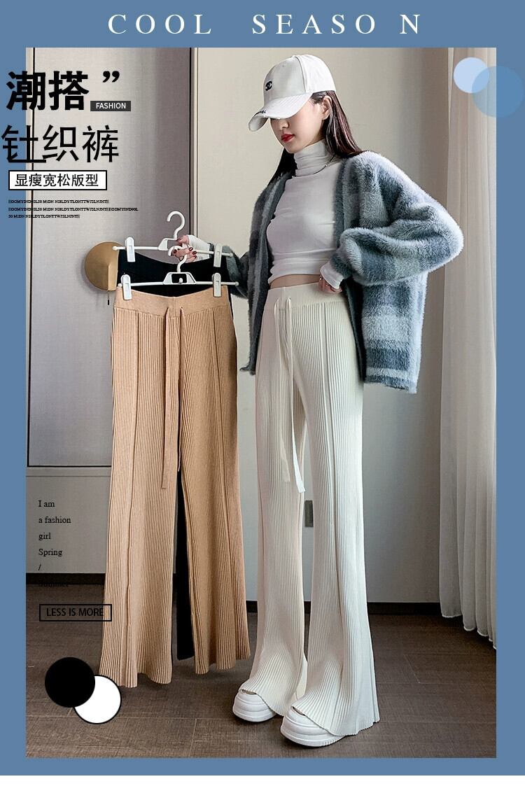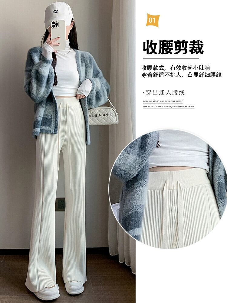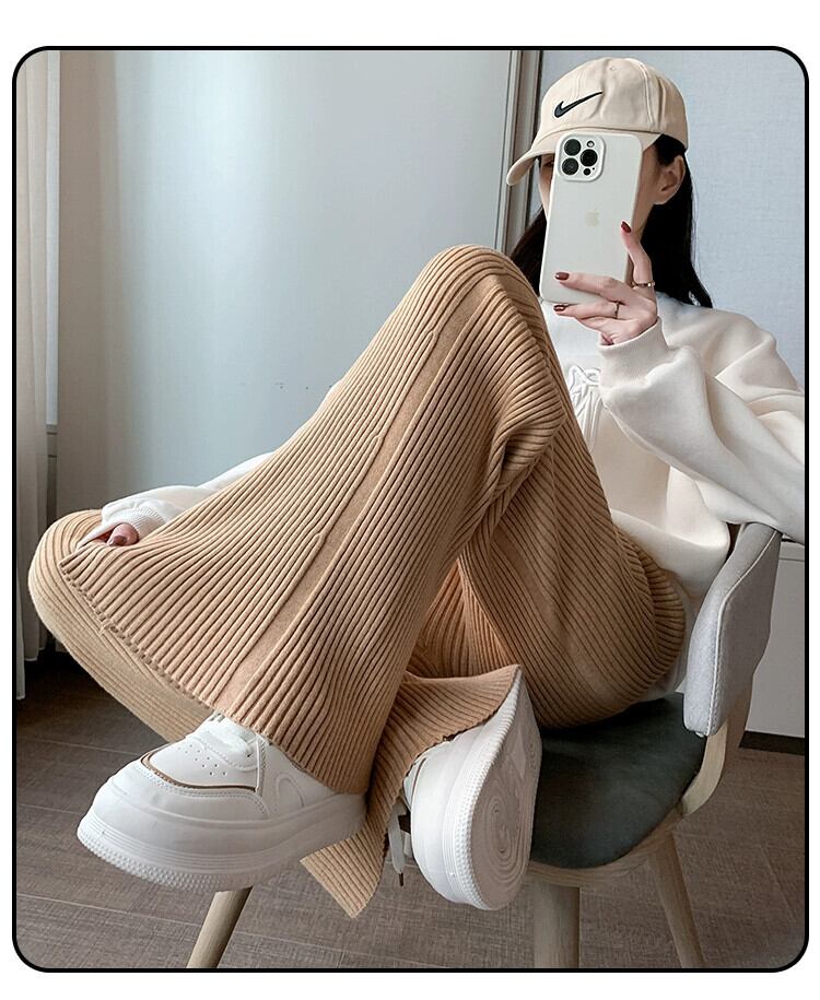 秋冬の細いニットマイクロフレアパンツ女性ハイウエストストレートワイドレッグパンツカジュアルスリミングドレープフロアレングスパンツ レッド オータム 秋物 ウィンター 冬物 746007082467279 | framboise21