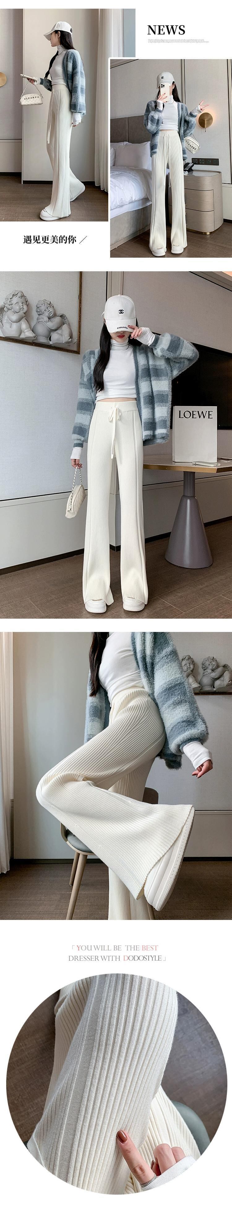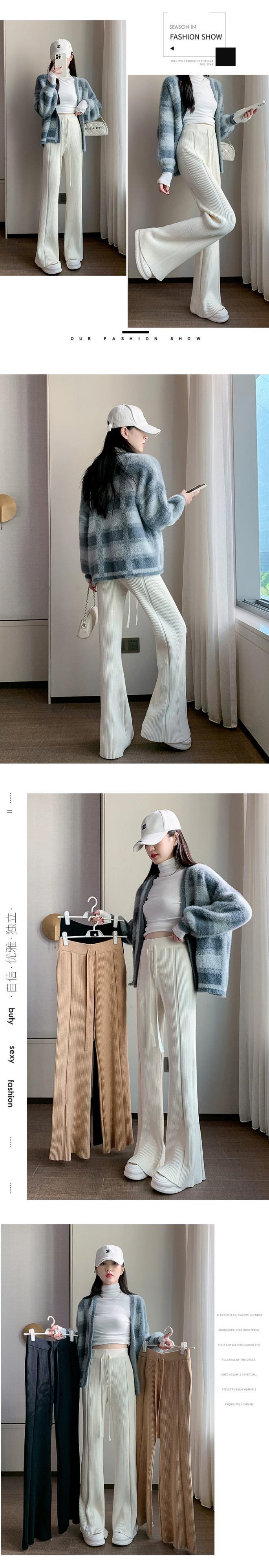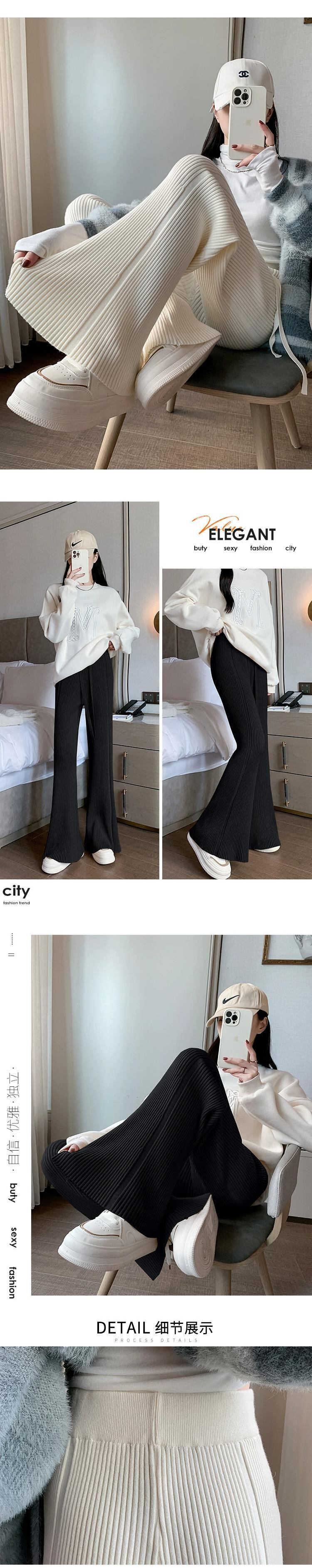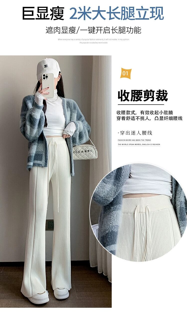 秋冬の細いニットマイクロフレアパンツ女性ハイウエストストレートワイドレッグパンツカジュアルスリミングドレープフロアレングスパンツ レッド オータム 秋物 ウィンター 冬物 746007082467279 | framboise21