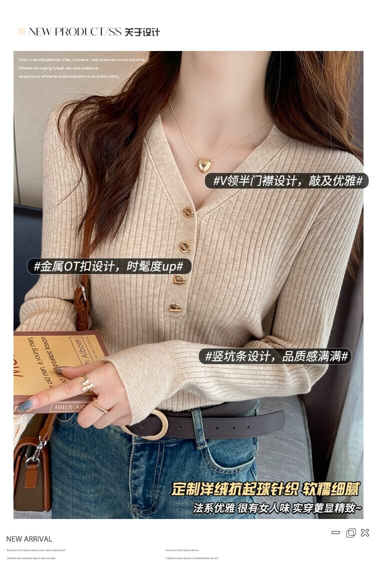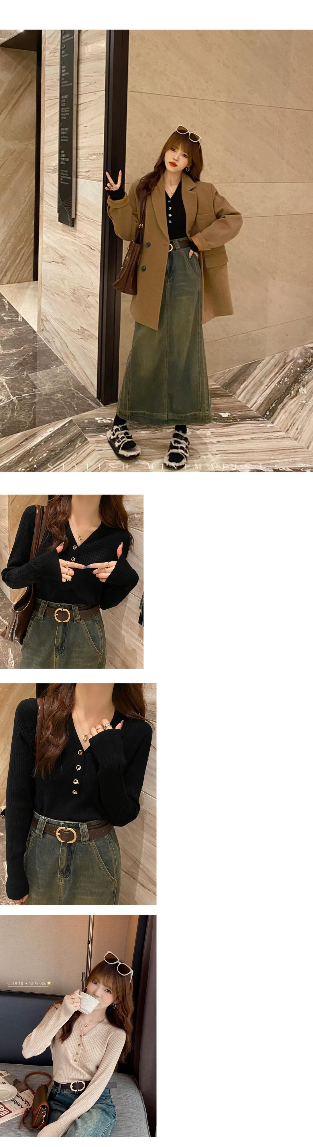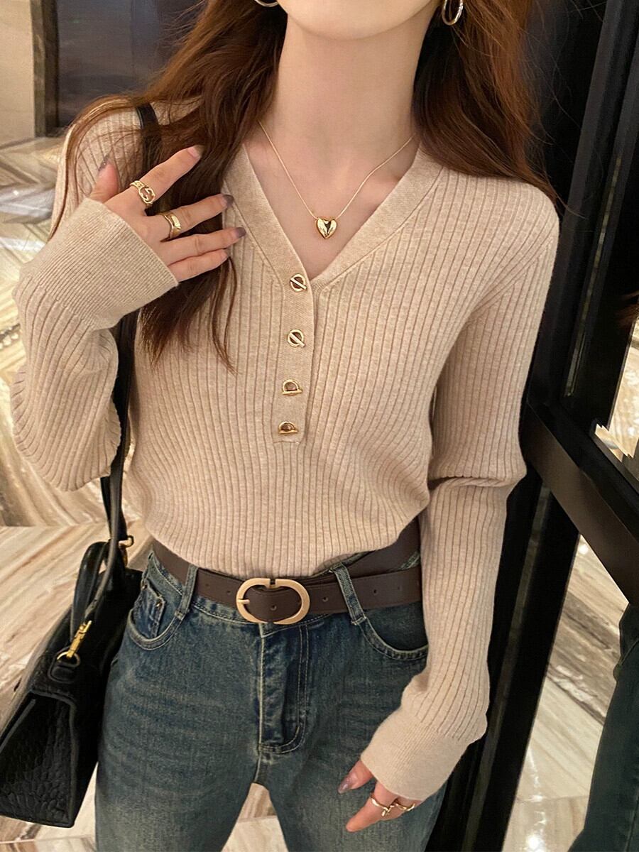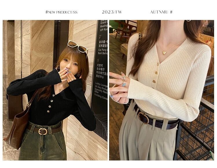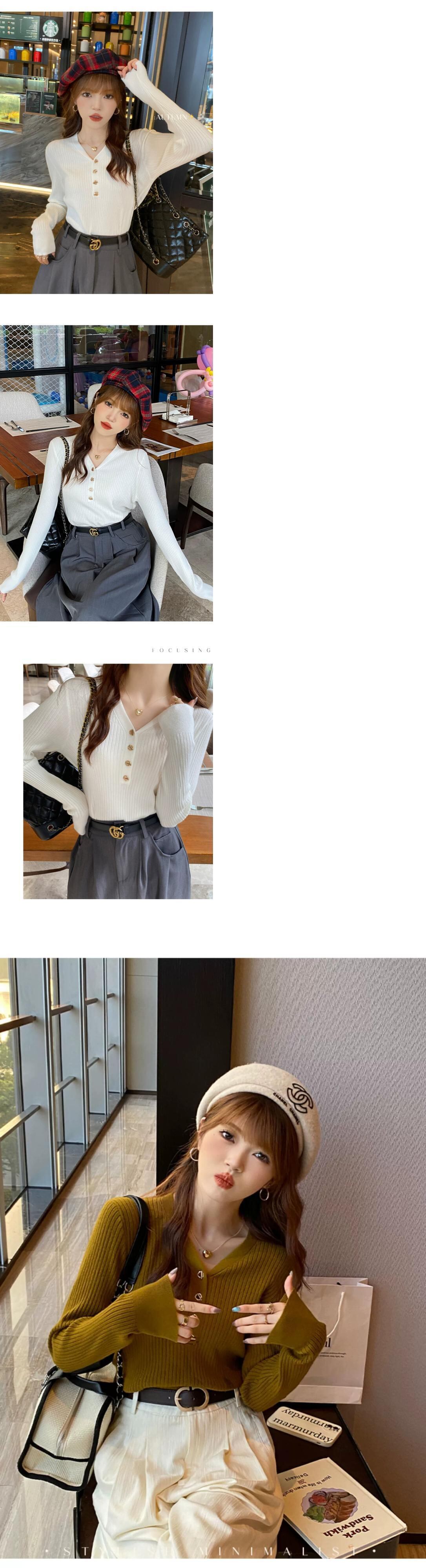 V ネックニットボトリングシャツ 2023 新しい女性の秋と冬のファッショナブルなスリムコートとソフトワックス長袖セーター ロング オータム 秋物 ウィンター 冬物 Vネック 7460034860943424 | framboise21