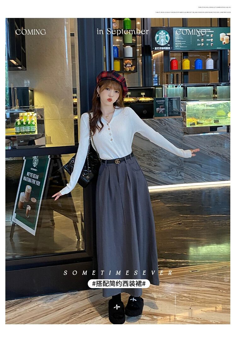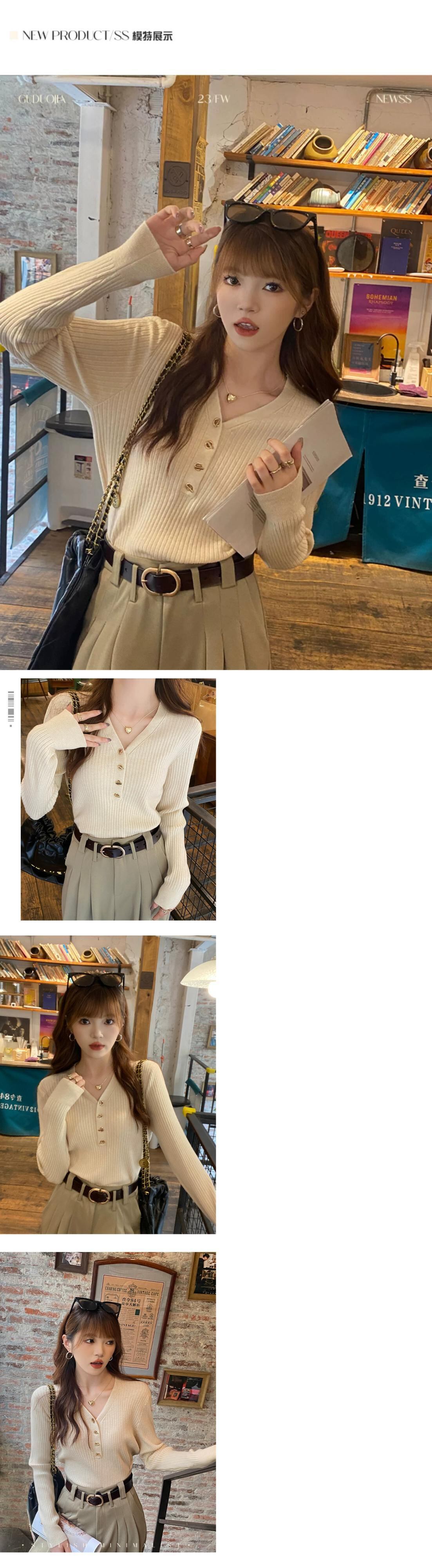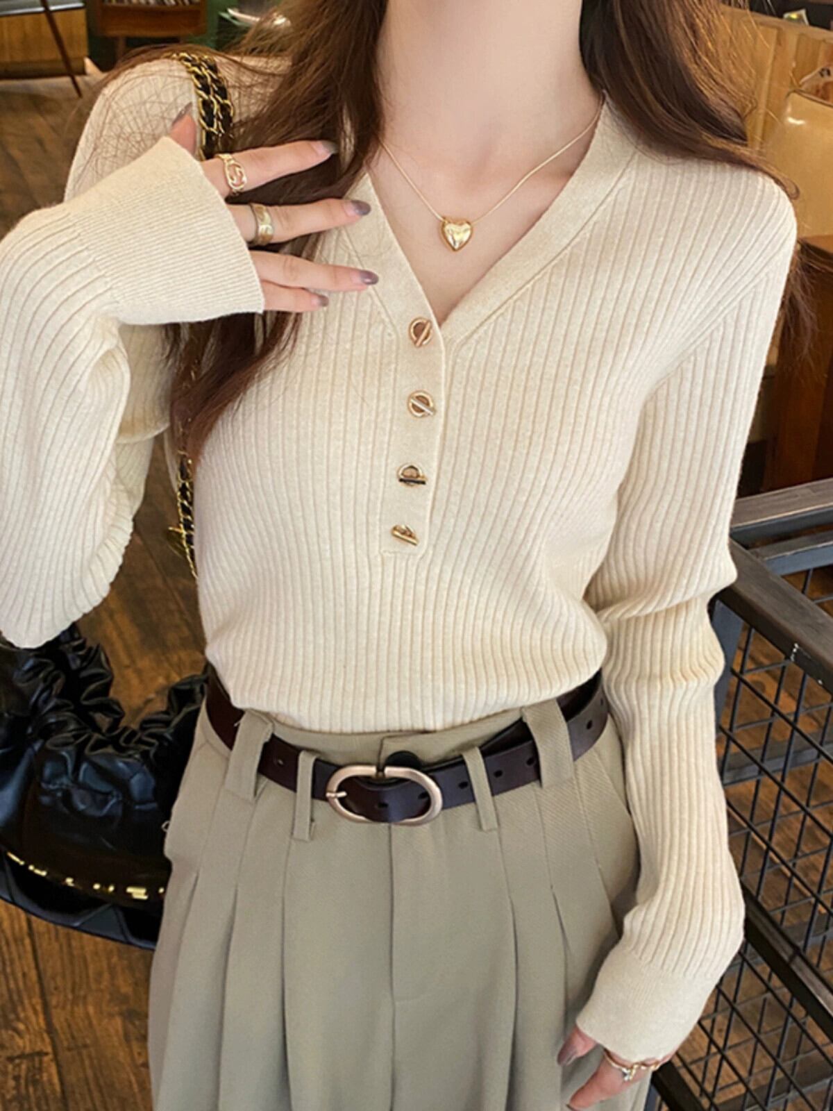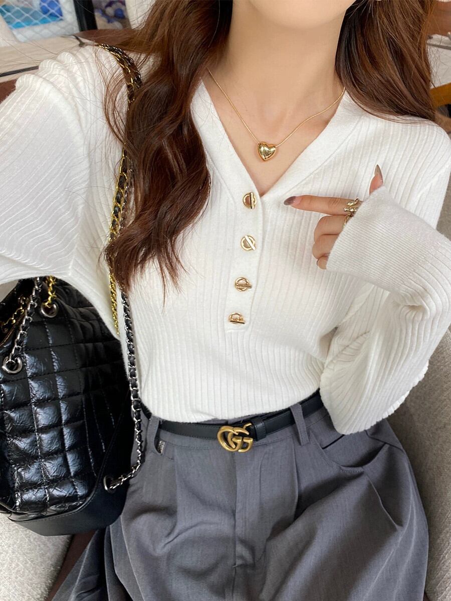 V ネックニットボトリングシャツ 2023 新しい女性の秋と冬のファッショナブルなスリムコートとソフトワックス長袖セーター ロング オータム 秋物 ウィンター 冬物 Vネック 7460034860943424 | framboise21
