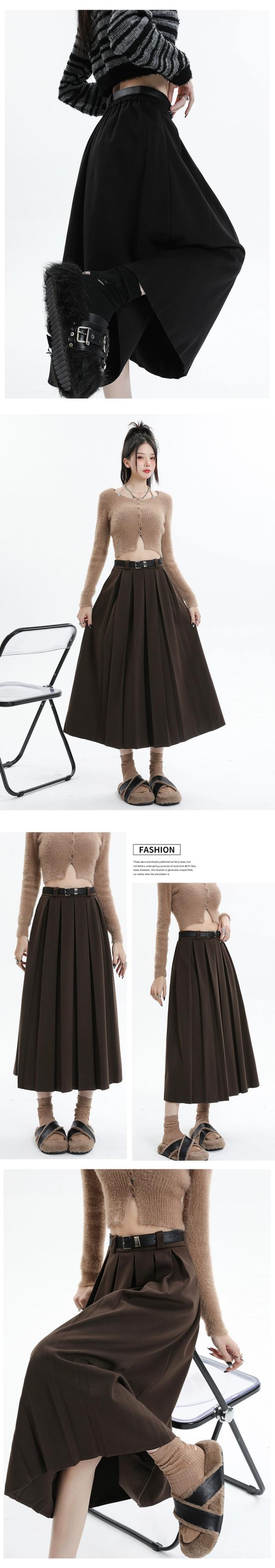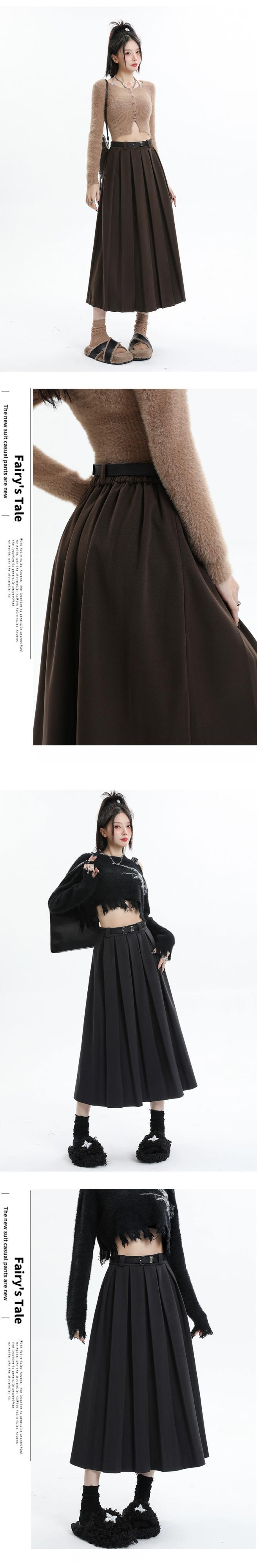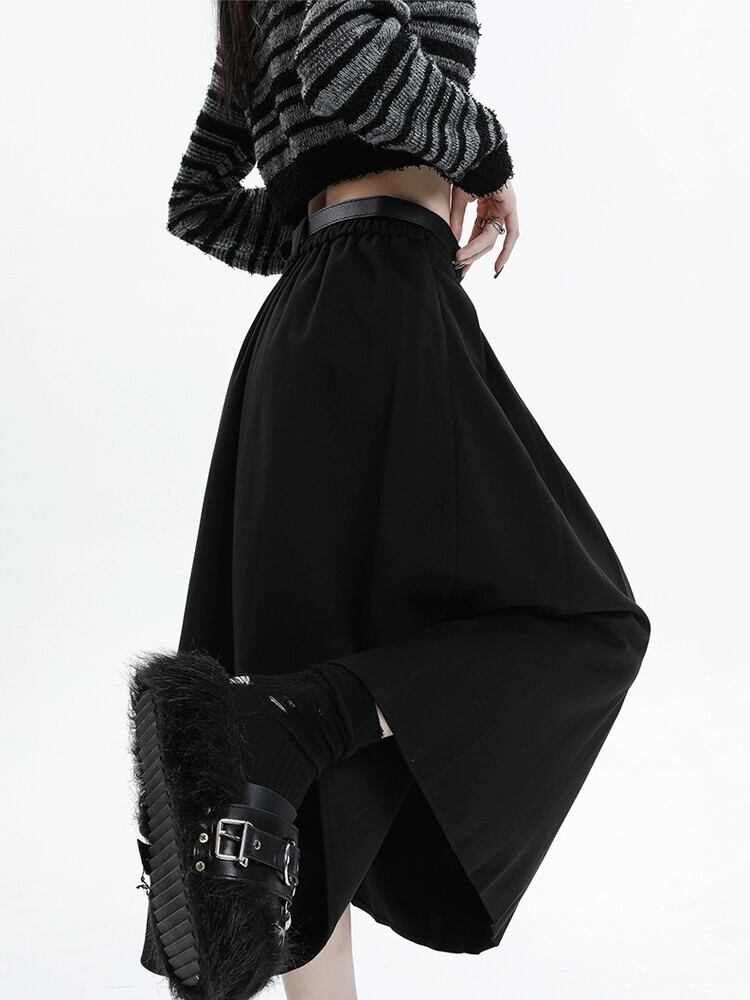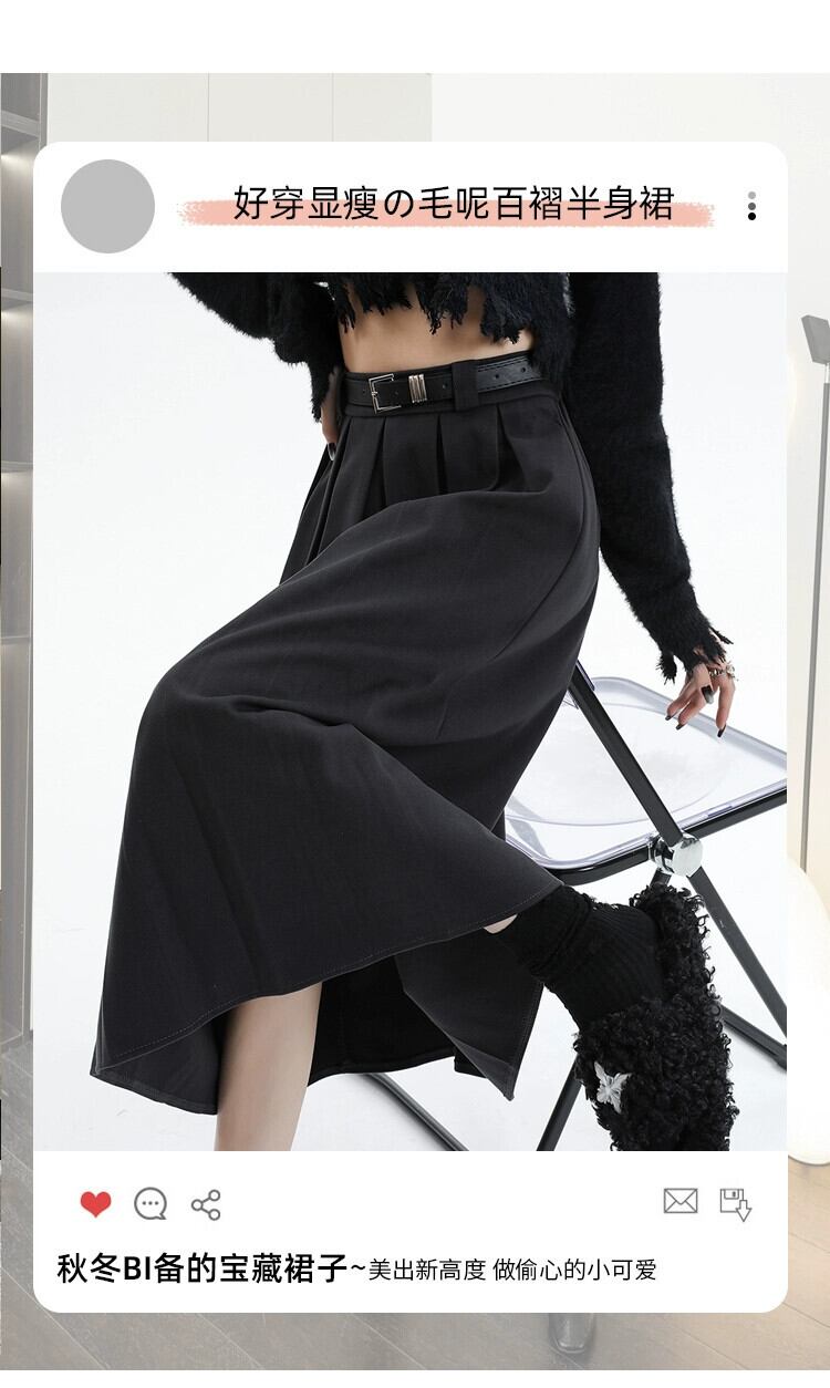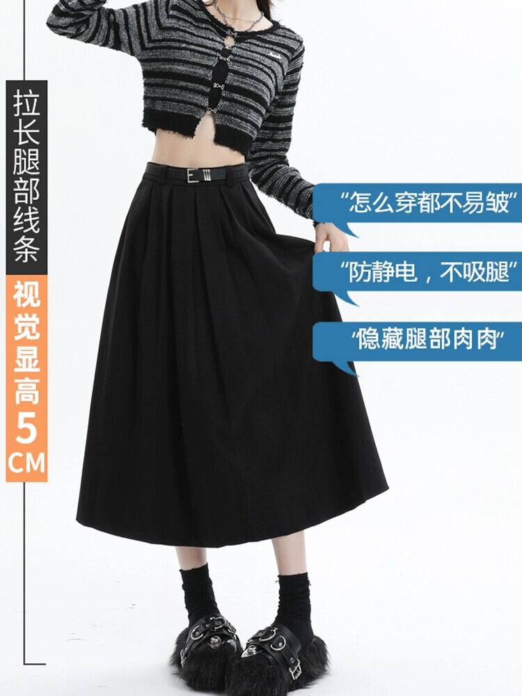 黒の厚みのあるウールのスカートの女性、秋と冬のスーツ、プリーツスカート、ハイウエスト、痩身、万能カバーアップ、Aラインロングスカート ハイウェスト ブラック オータム 秋物 ウィンター 冬物 7460089115284069 | framboise21