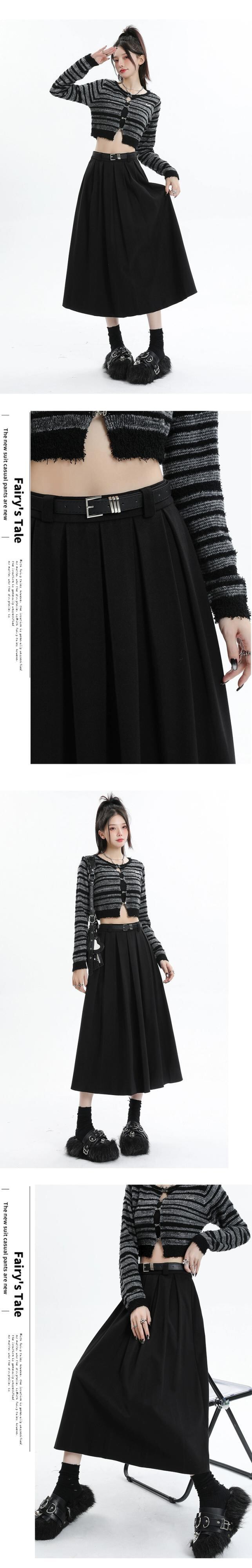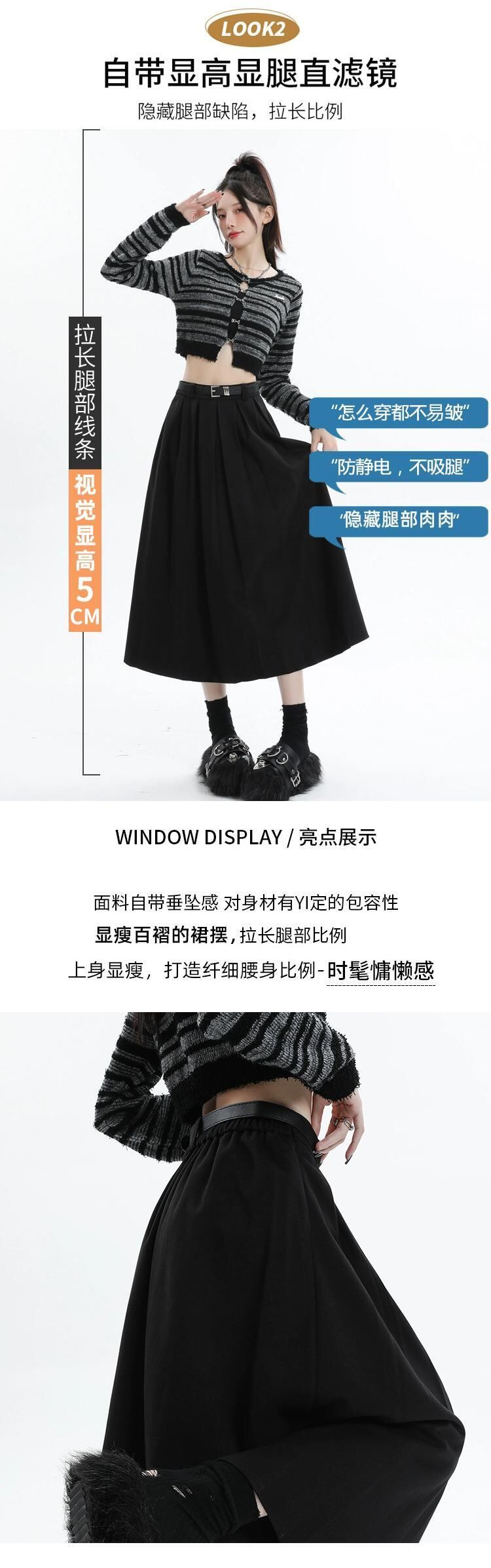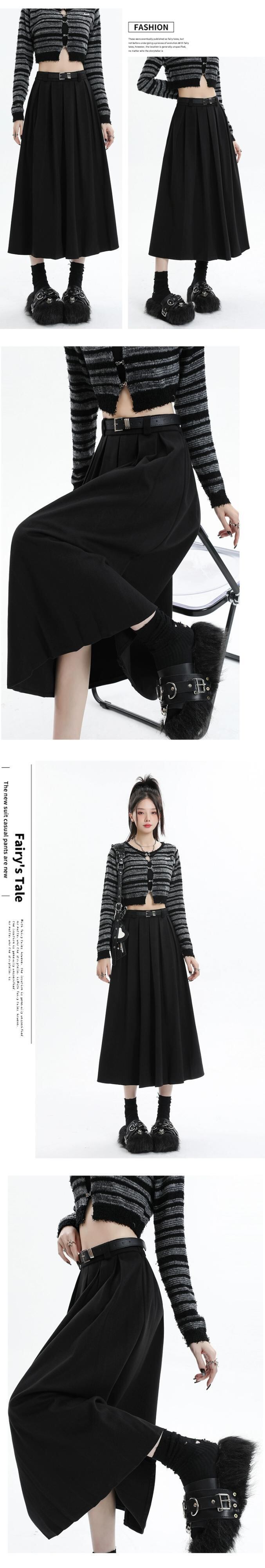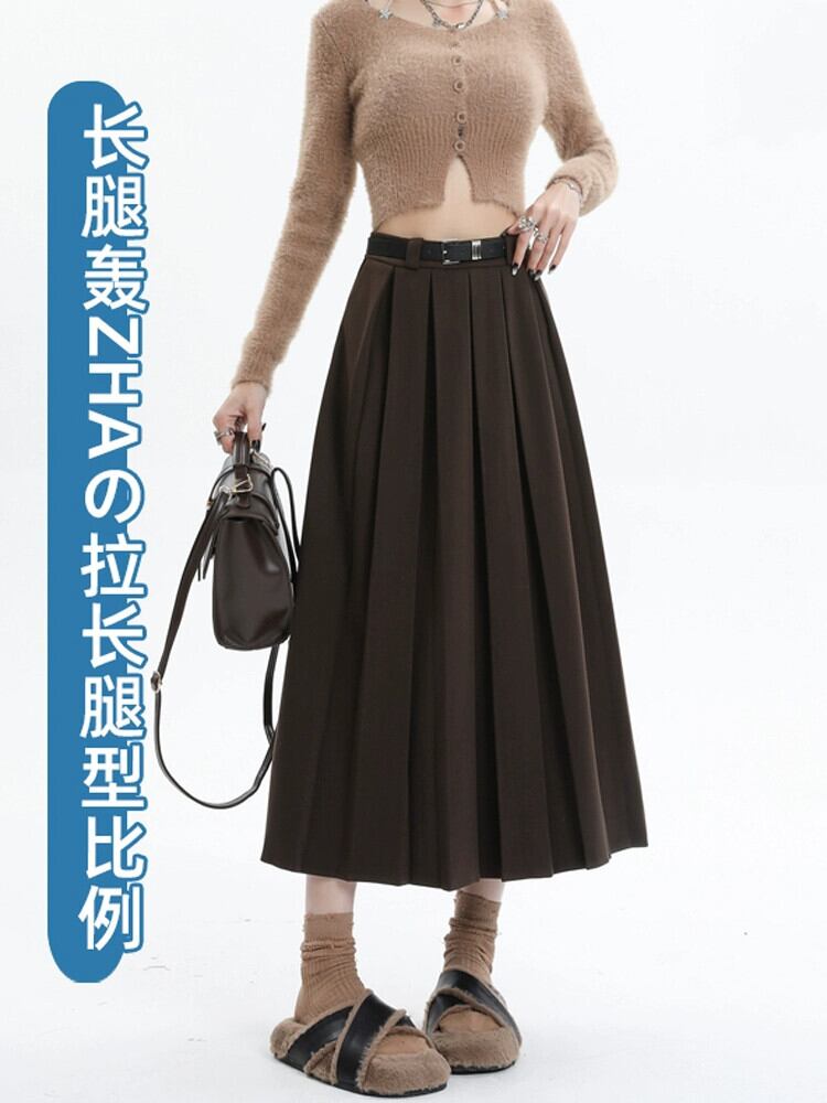 黒の厚みのあるウールのスカートの女性、秋と冬のスーツ、プリーツスカート、ハイウエスト、痩身、万能カバーアップ、Aラインロングスカート ハイウェスト ブラック オータム 秋物 ウィンター 冬物 7460089115284069 | framboise21