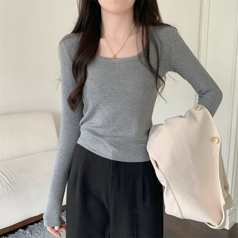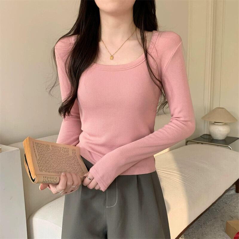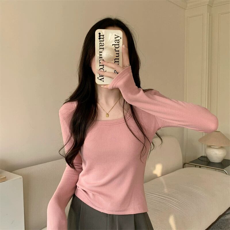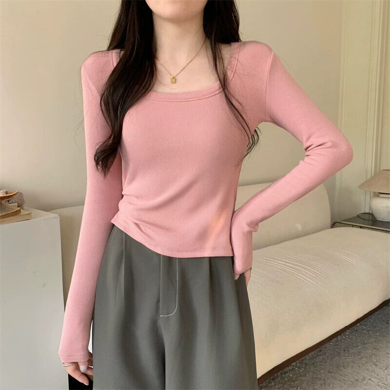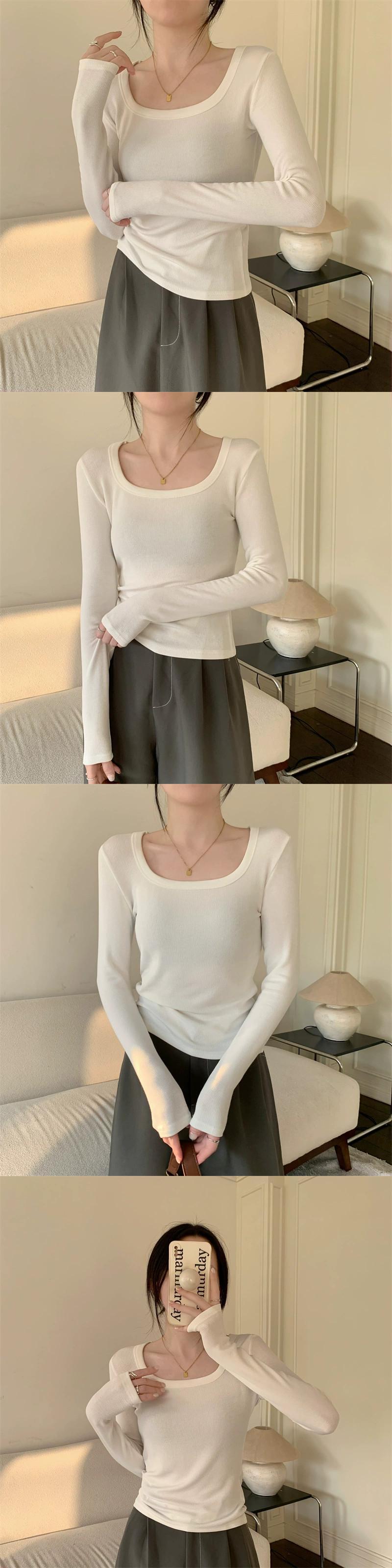 肥厚起毛暖かいベースシャツ 2023 新しい女性の秋冬インナーウェアスリムフィットショートスクエアネック長袖 Tシャツ ロング オータム 秋物 ウィンター 冬物 スクウェア 7460064181723111 | framboise21