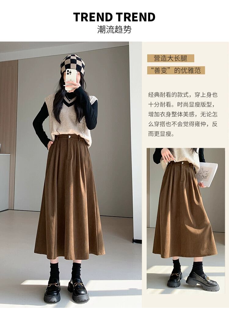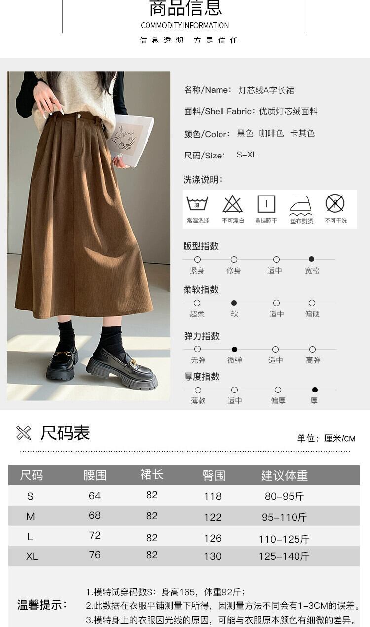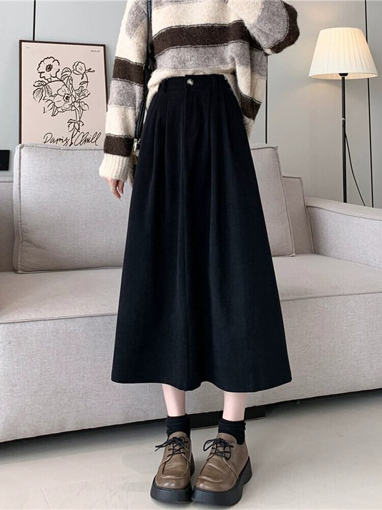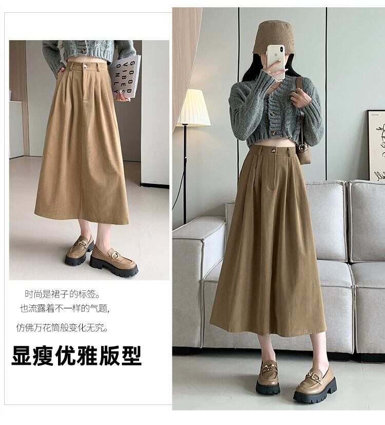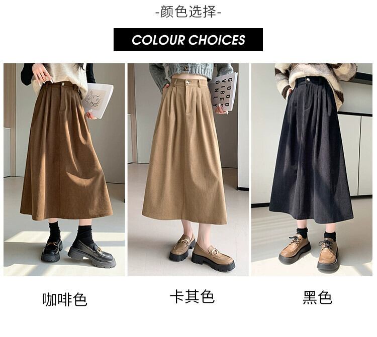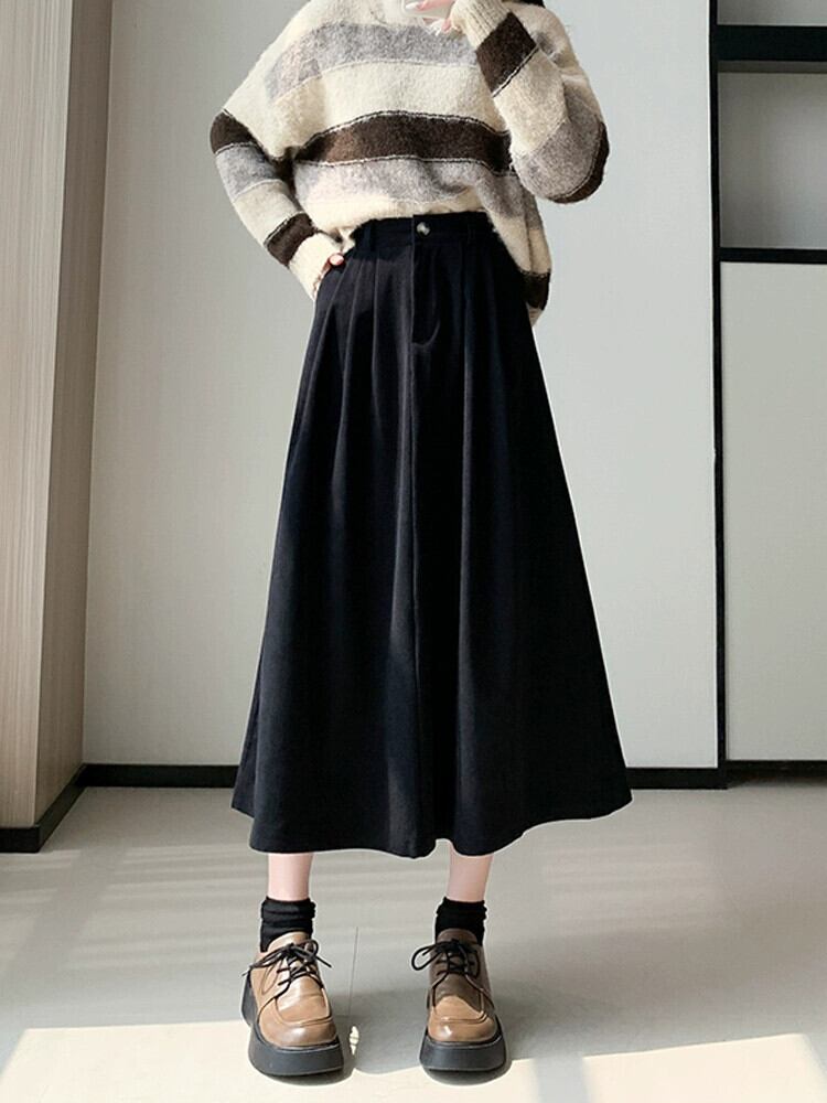 黒コーデュロイスカートレディース、2023秋冬新作、ヒップカバー、着痩せ、ミドル丈、ハイウエスト、Aライン、大振りアンブレラスカート ブラック オータム 秋物 ウィンター 冬物 7460031835723247 | framboise21