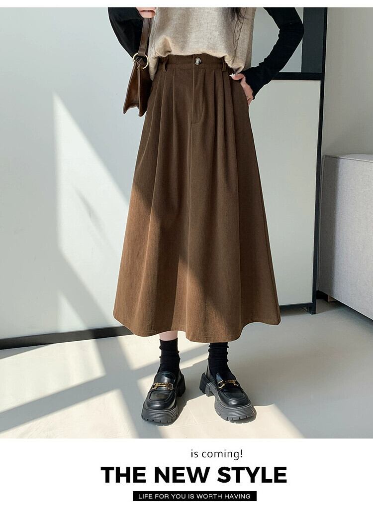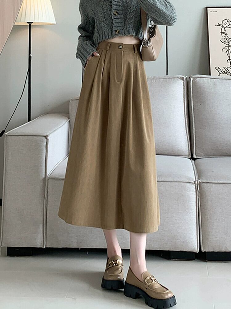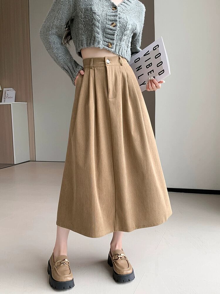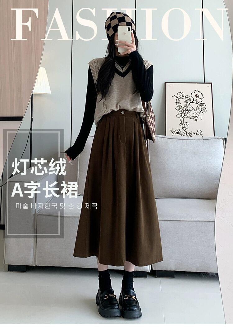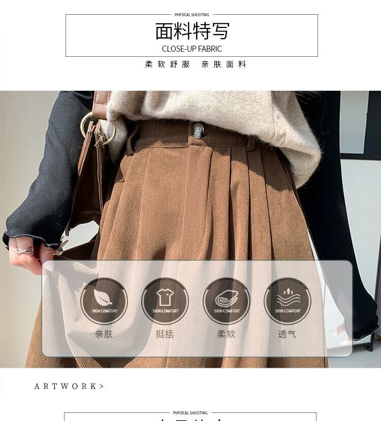 黒コーデュロイスカートレディース、2023秋冬新作、ヒップカバー、着痩せ、ミドル丈、ハイウエスト、Aライン、大振りアンブレラスカート ブラック オータム 秋物 ウィンター 冬物 7460031835723247 | framboise21