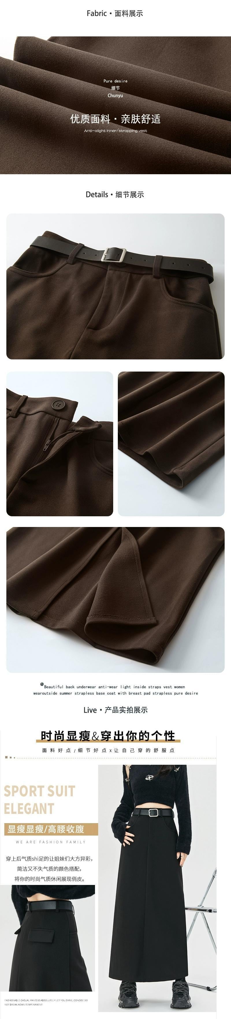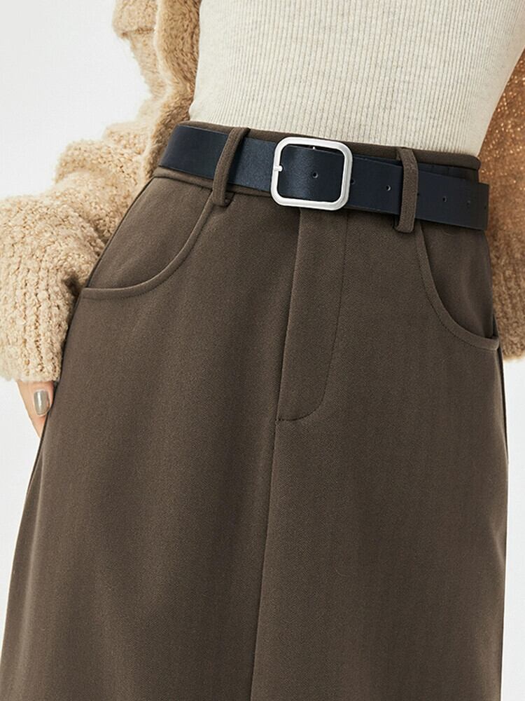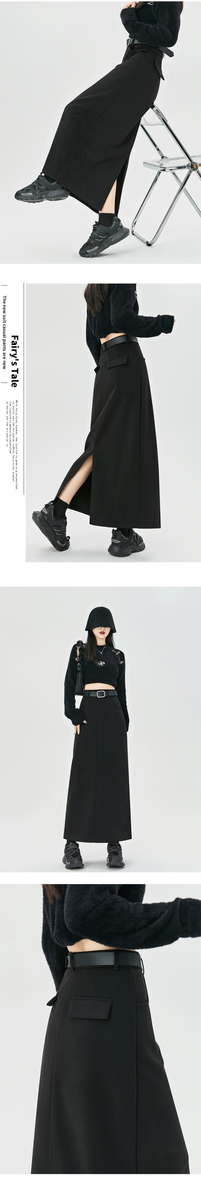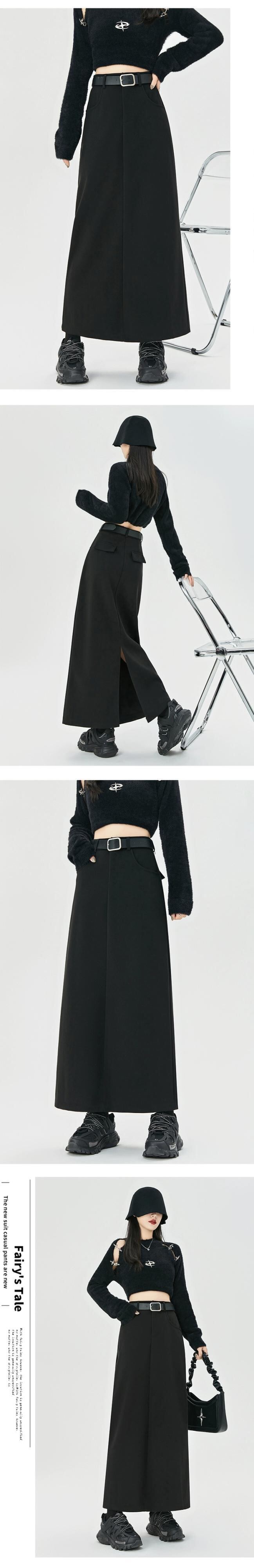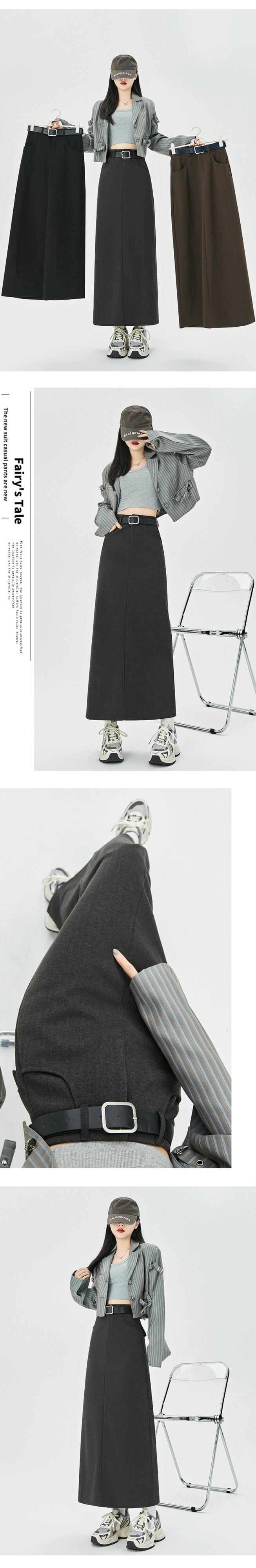 コーヒー色のウールのスカートの女性 2023 新しい秋冬レトロハイウエストドレープ痩身 A ラインスリットヒップカバーロングスカート レッド オータム 秋物 ウィンター 冬物 Aライン 7460027540573484 | framboise21