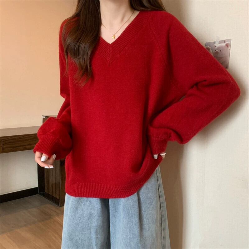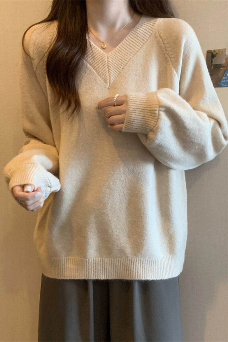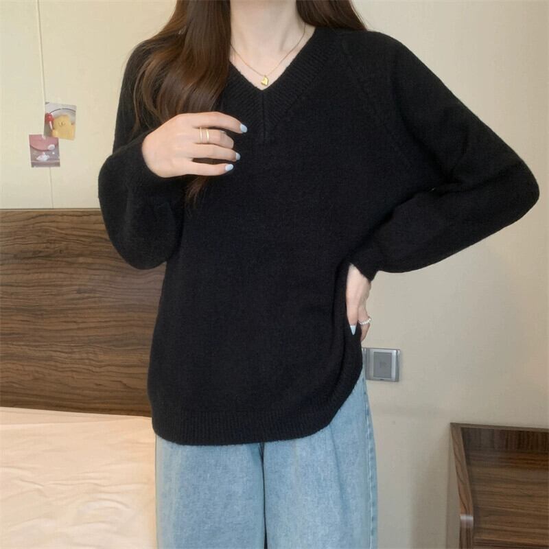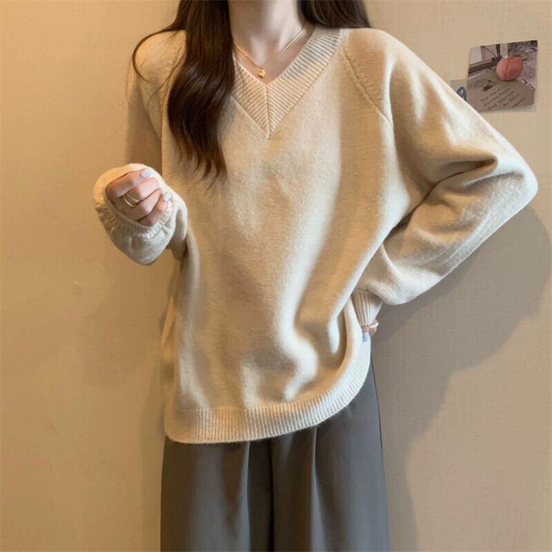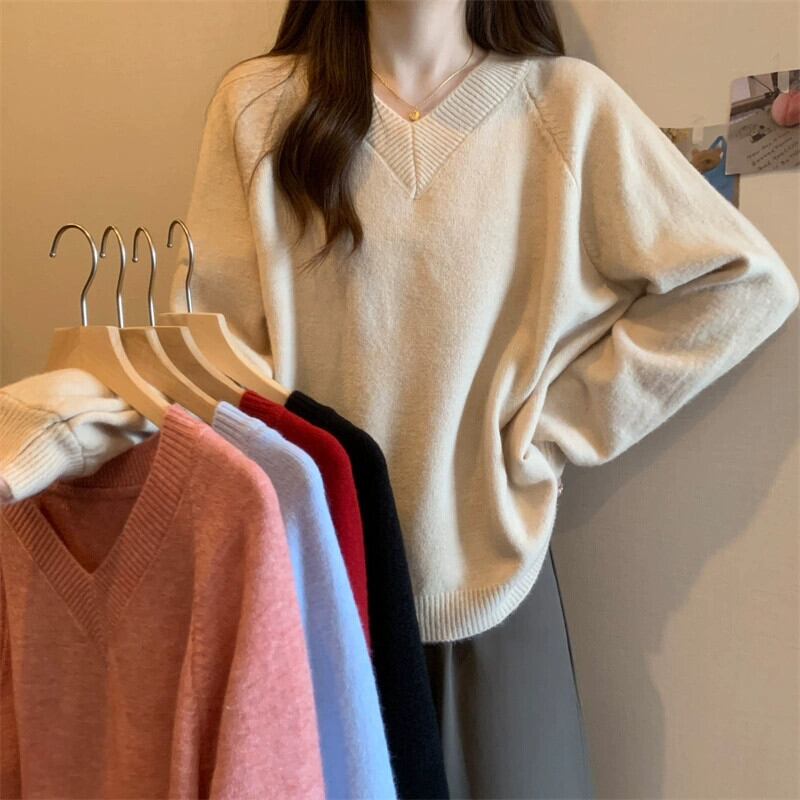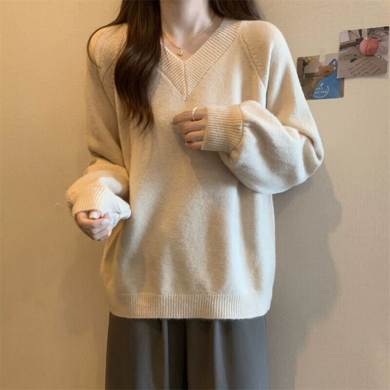 怠惰なスタイルソフトワックスセーター女性秋と冬 2023 新しいレトロルーズアウターウェア肥厚プルオーバー v ネックセーター オータム 秋物 ウィンター 冬物 Vネック 746004931158106 | framboise21