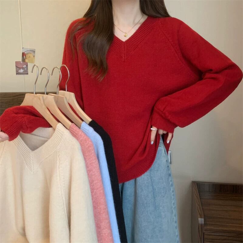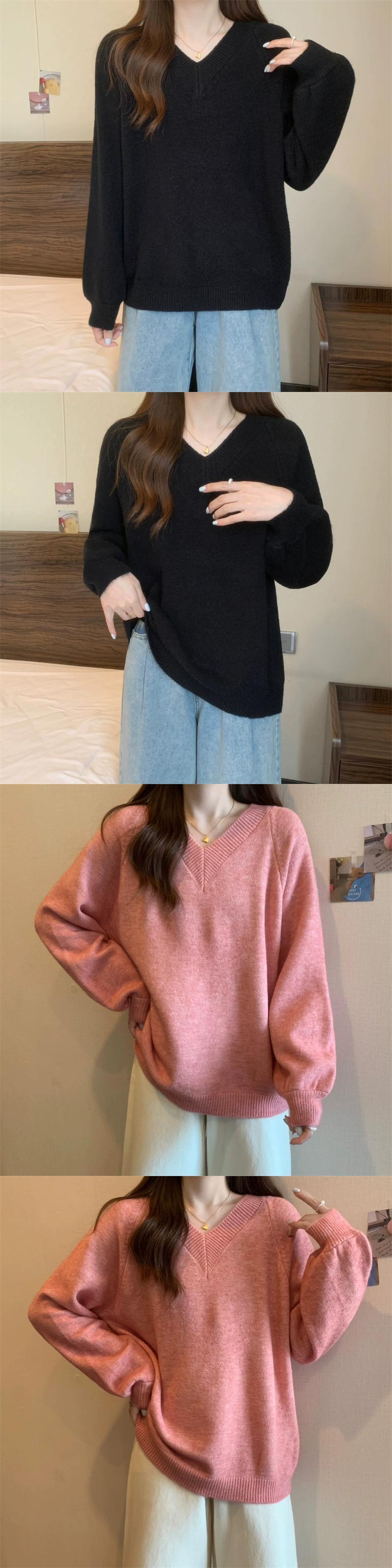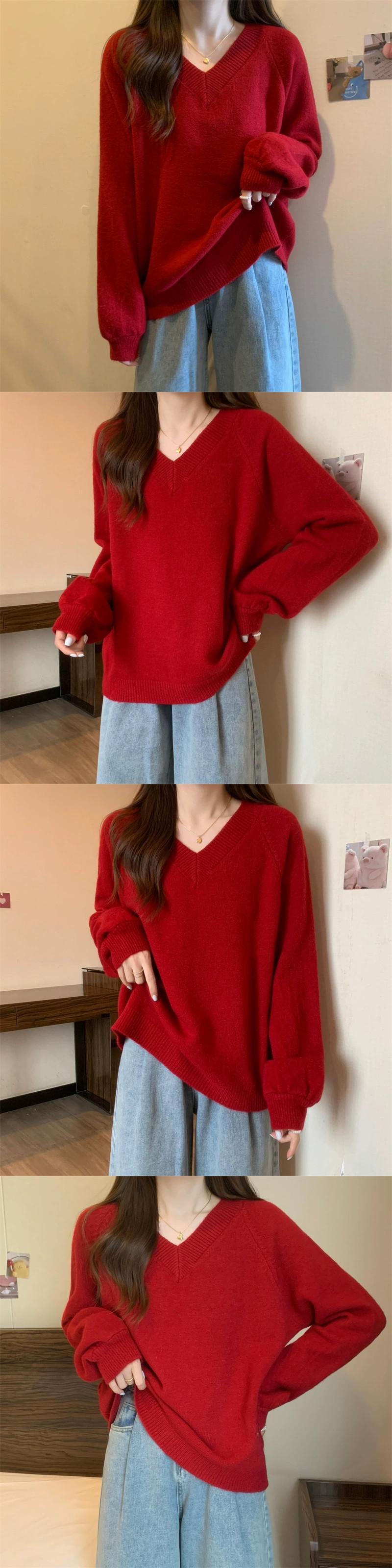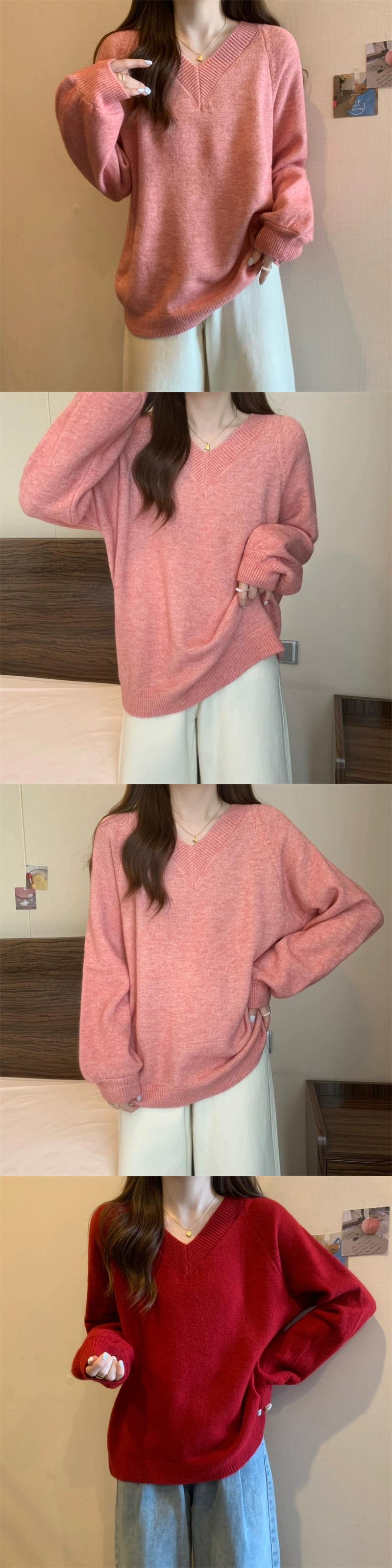 怠惰なスタイルソフトワックスセーター女性秋と冬 2023 新しいレトロルーズアウターウェア肥厚プルオーバー v ネックセーター オータム 秋物 ウィンター 冬物 Vネック 746004931158106 | framboise21