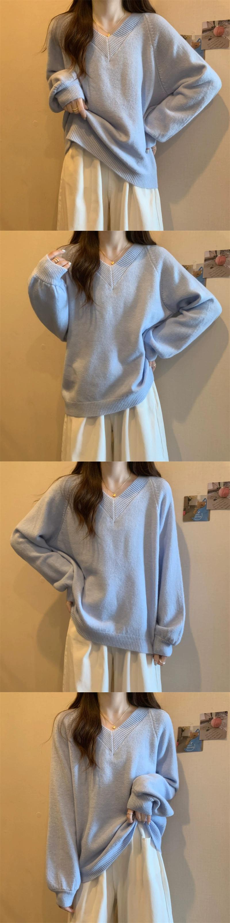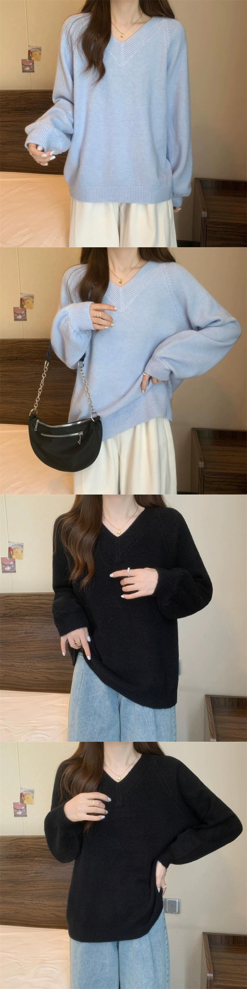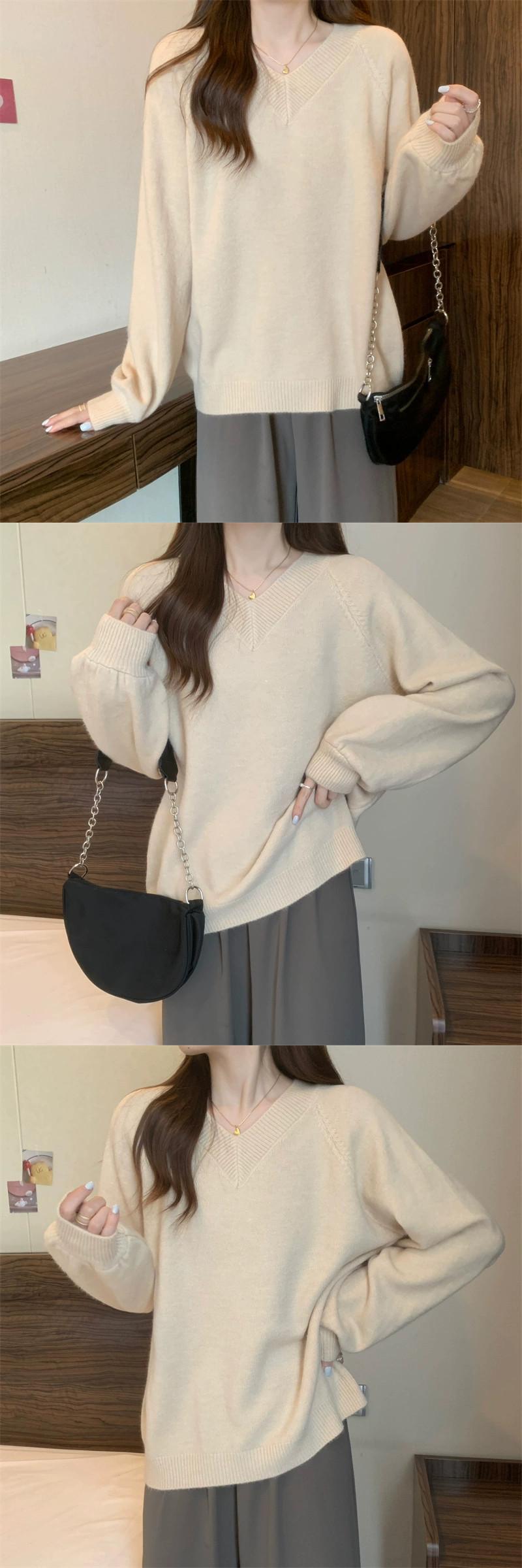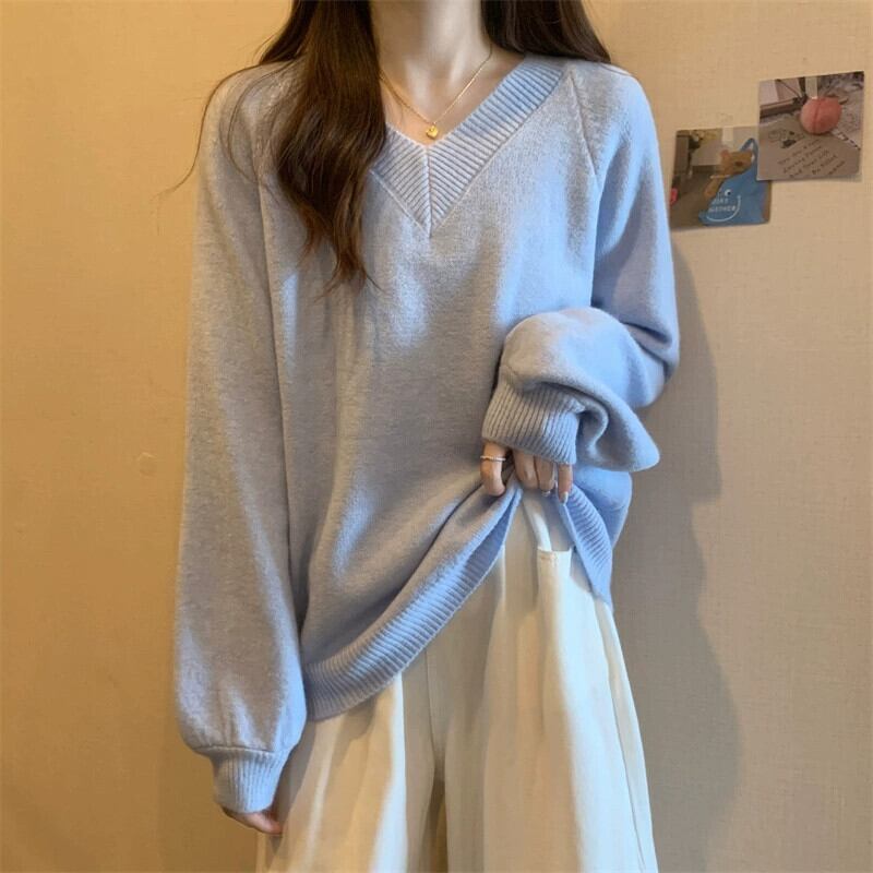 怠惰なスタイルソフトワックスセーター女性秋と冬 2023 新しいレトロルーズアウターウェア肥厚プルオーバー v ネックセーター オータム 秋物 ウィンター 冬物 Vネック 746004931158106 | framboise21