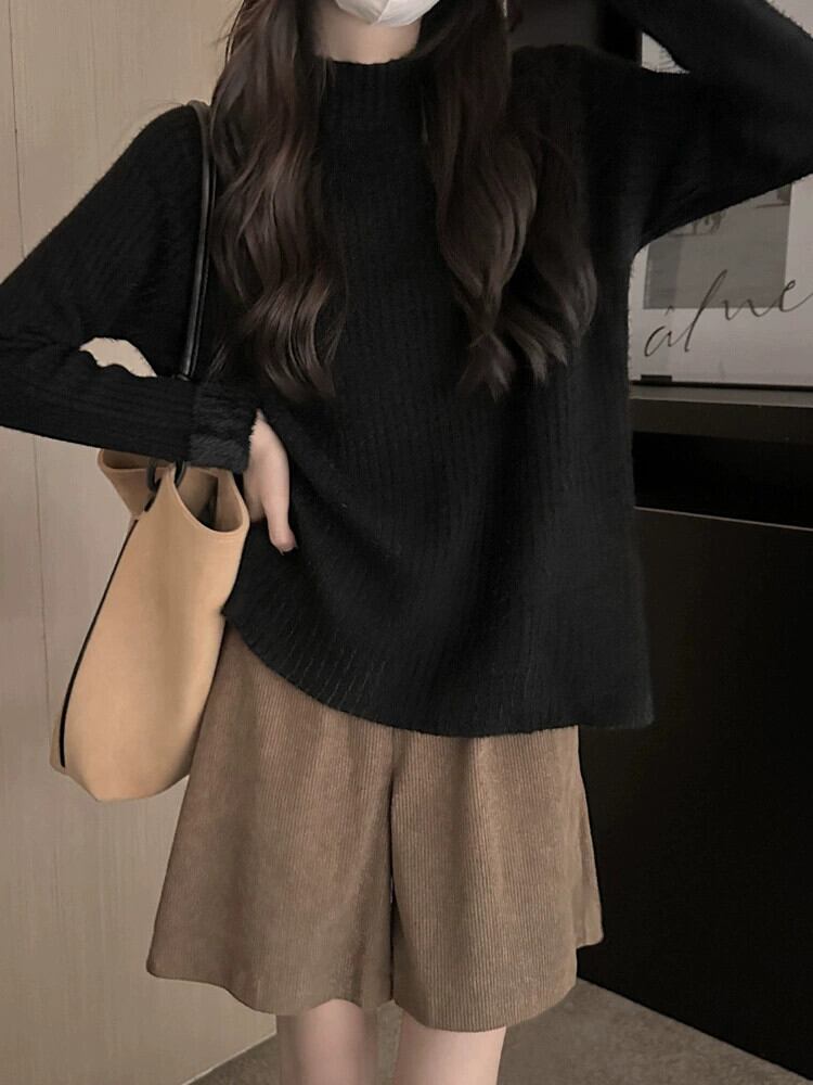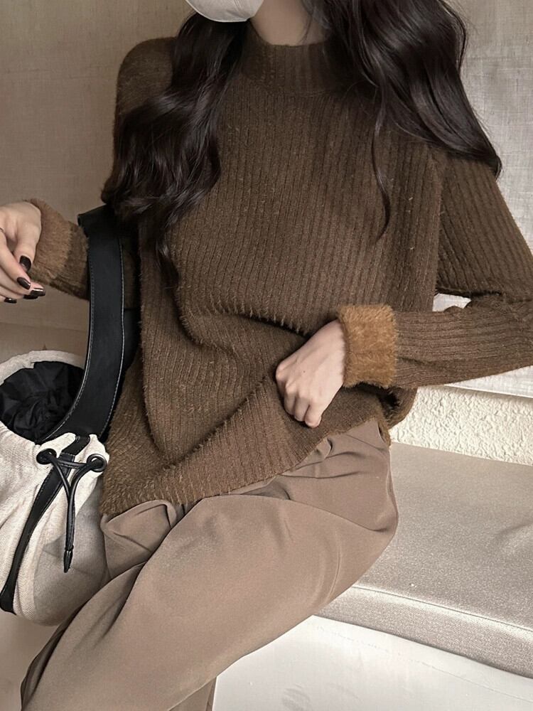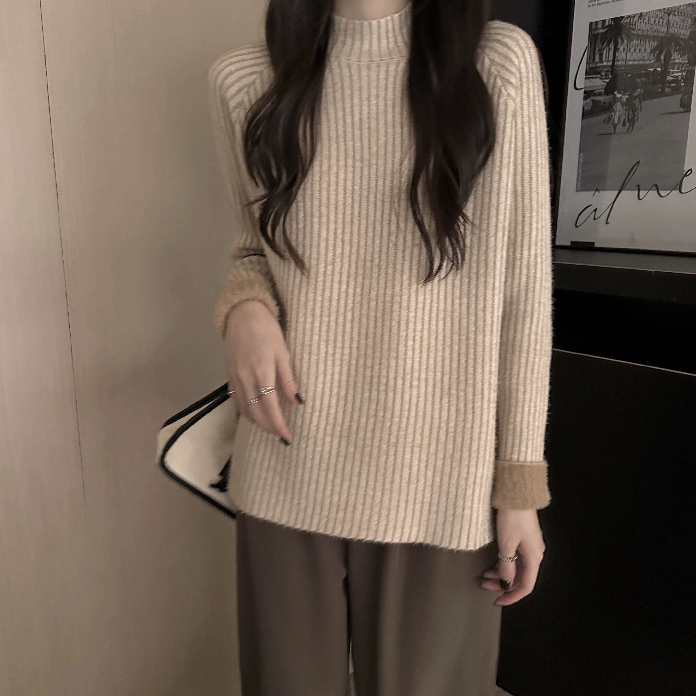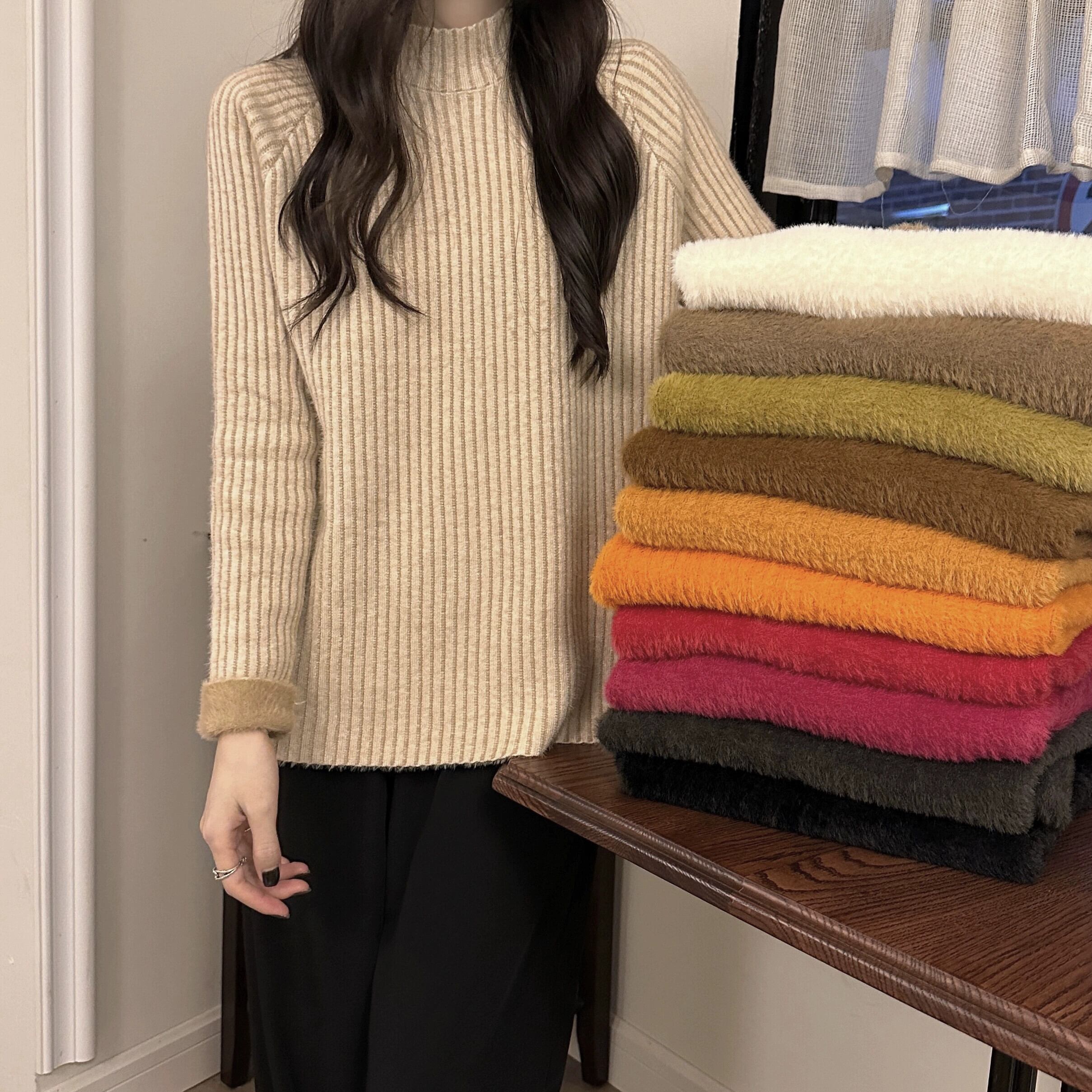 秋と冬の厚いベルベットの暖かいセーターの女性、緩いアウターウェア、柔らかく怠惰なスタイル、内側のハーフタートルネックボトムセーター オータム 秋物 ウィンター 冬物 7460073455195306 | framboise21