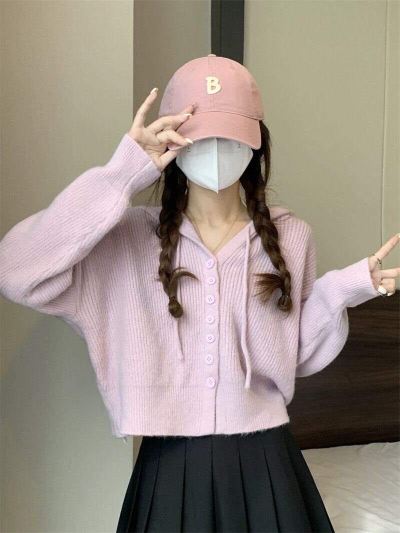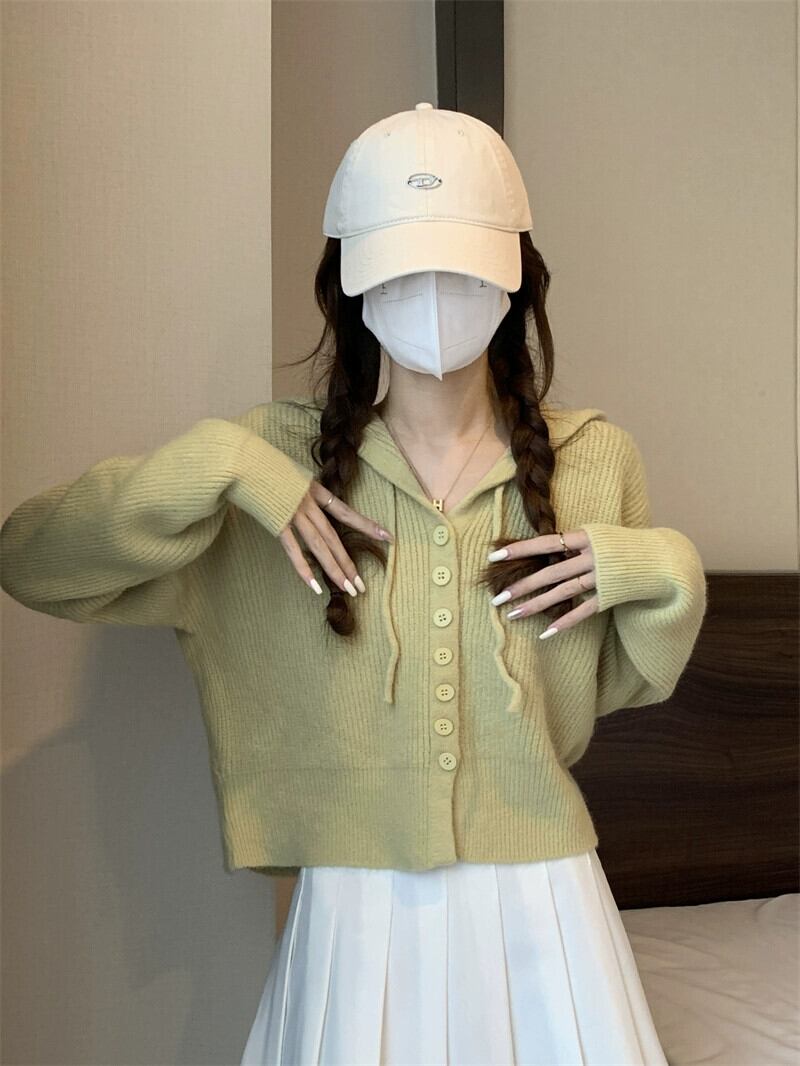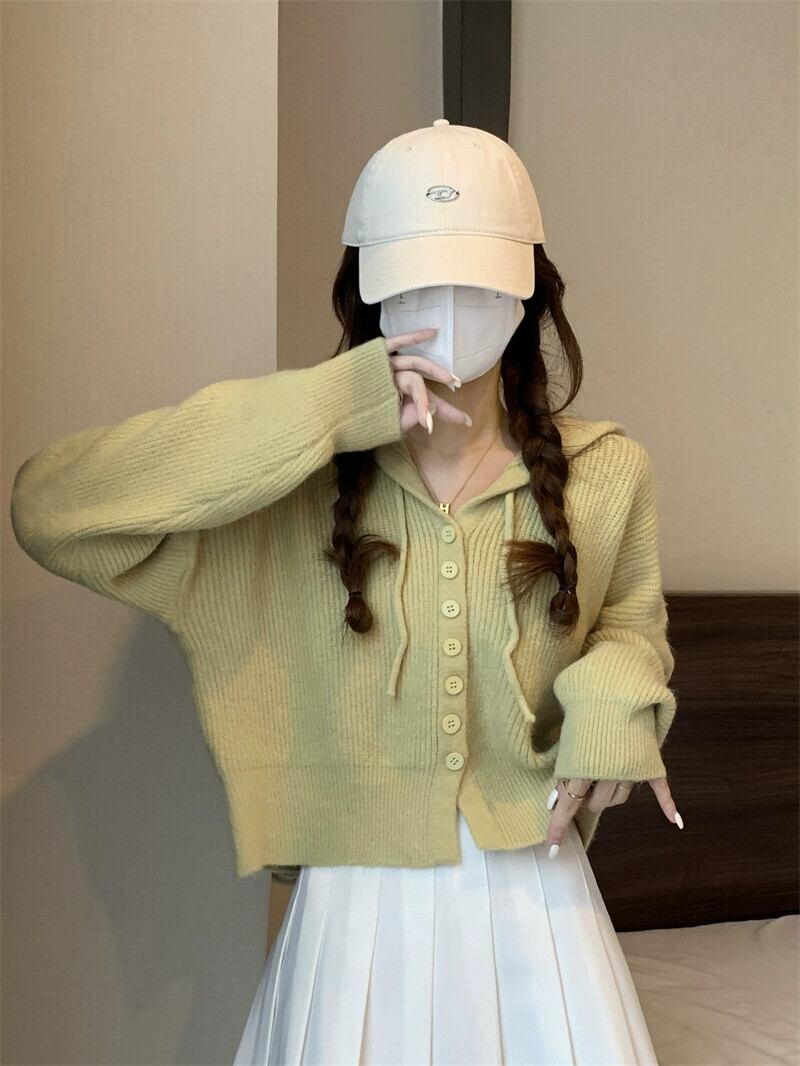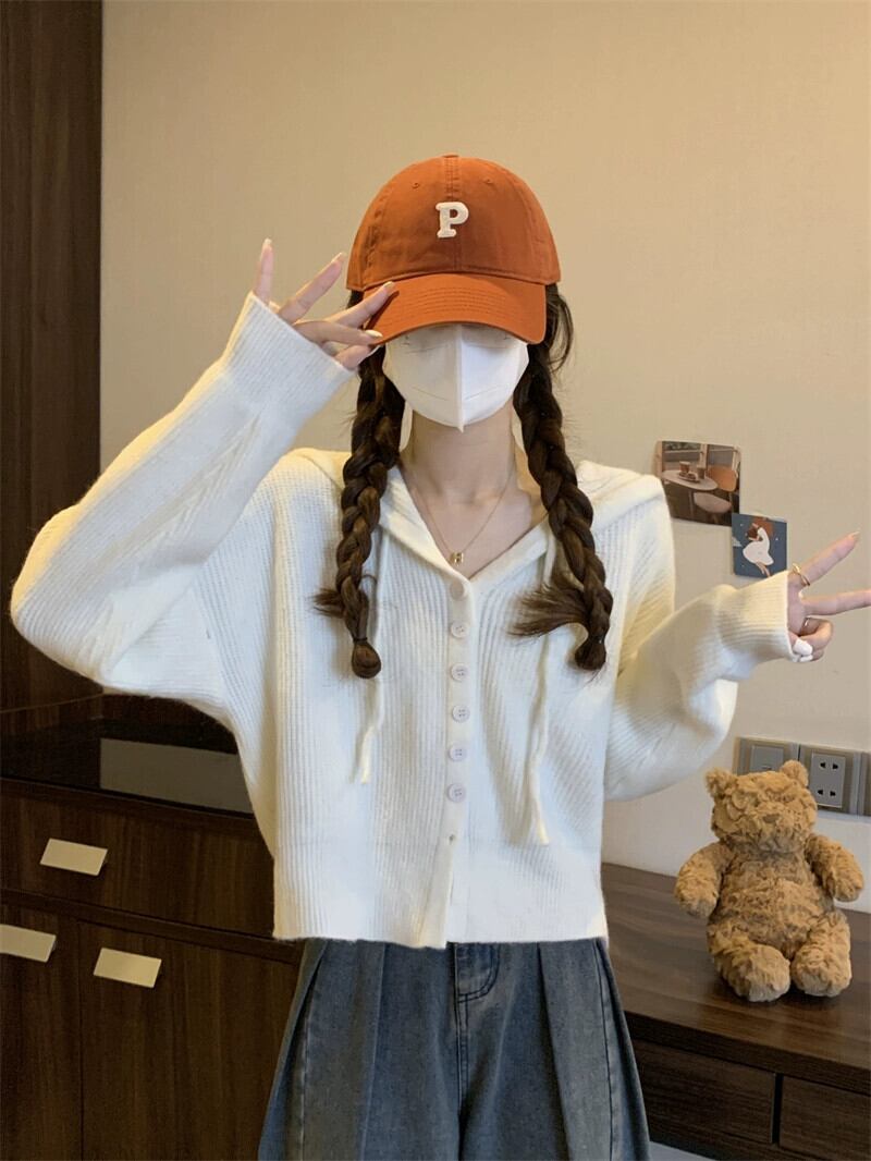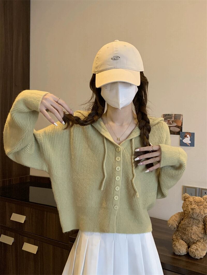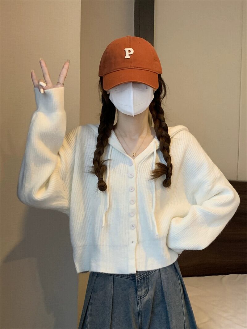 怠惰なスタイルのショートセーターカーディガンコート女性の秋と冬のアウターウェアルーズ痩身フード付き長袖セーター ロング オータム 秋物 ウィンター 冬物 7460018339993790 | framboise21