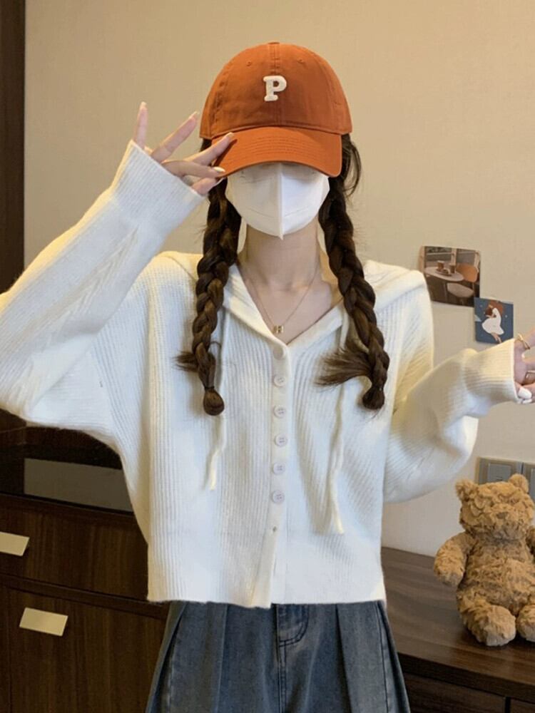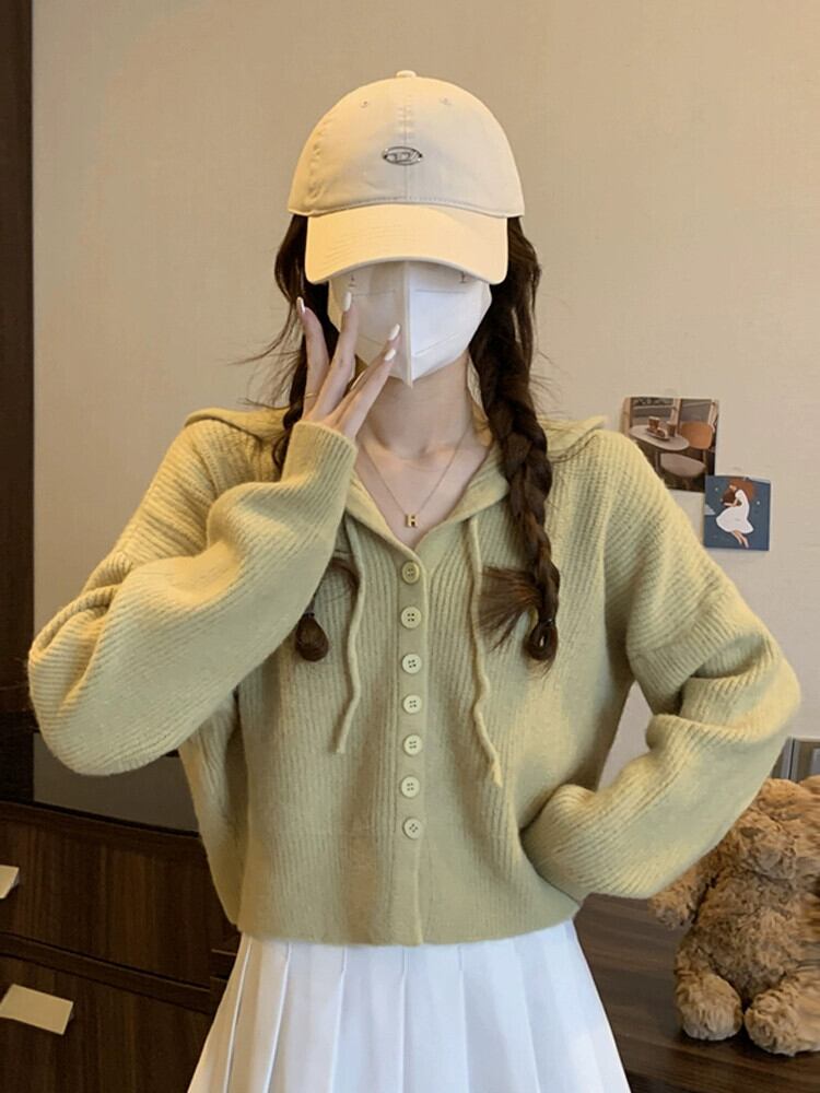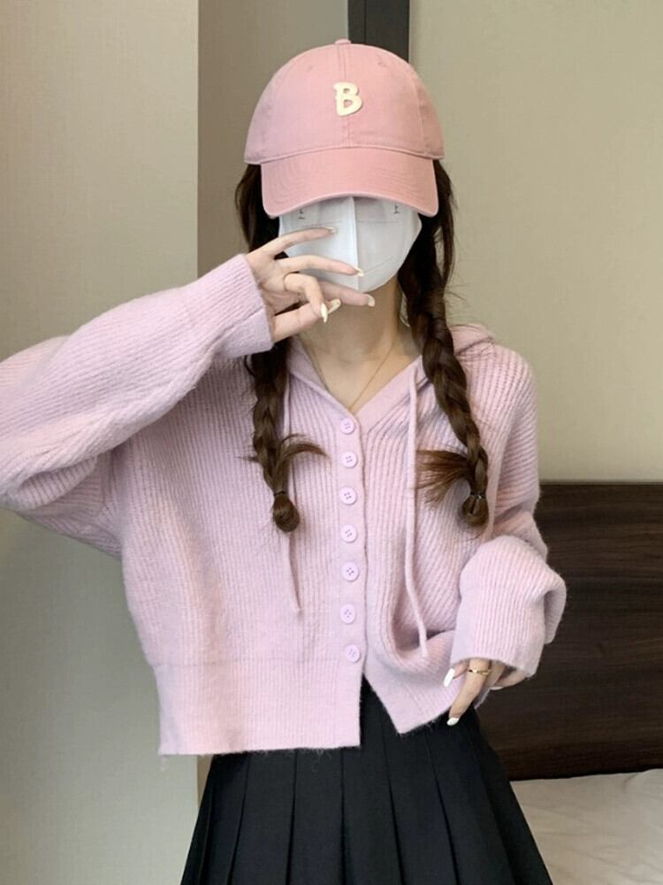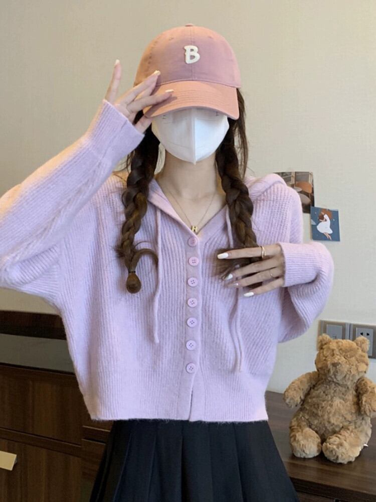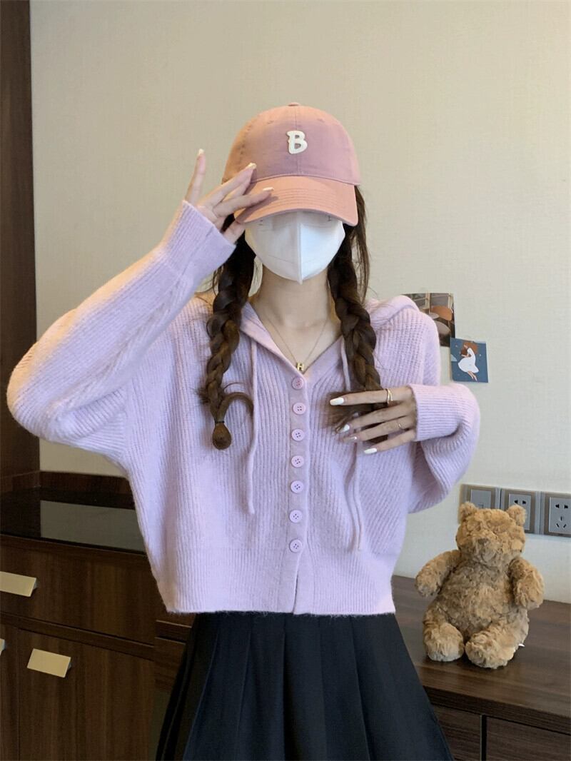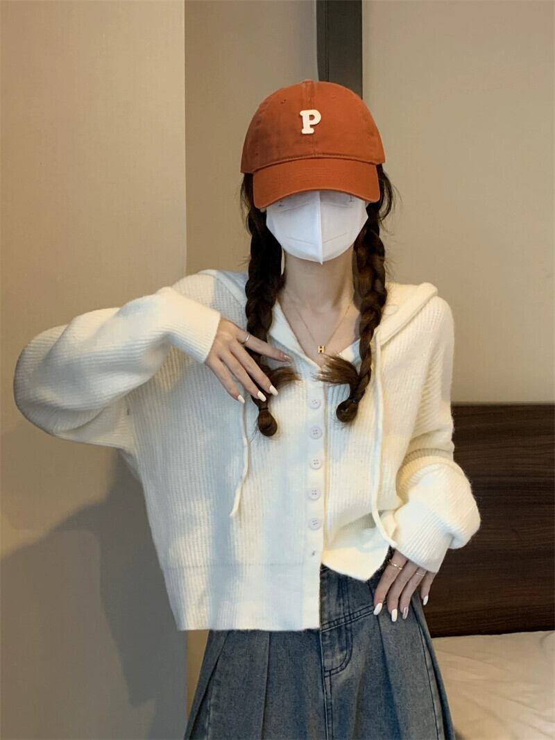 怠惰なスタイルのショートセーターカーディガンコート女性の秋と冬のアウターウェアルーズ痩身フード付き長袖セーター ロング オータム 秋物 ウィンター 冬物 7460018339993790 | framboise21