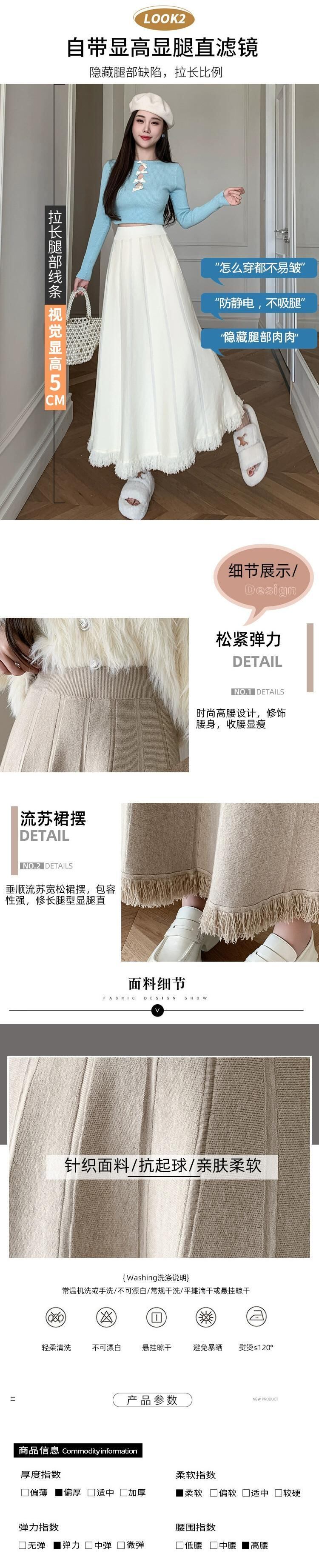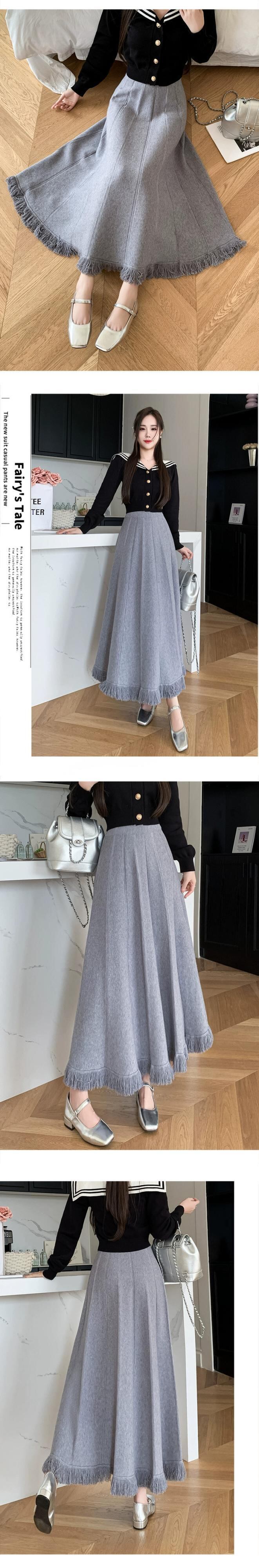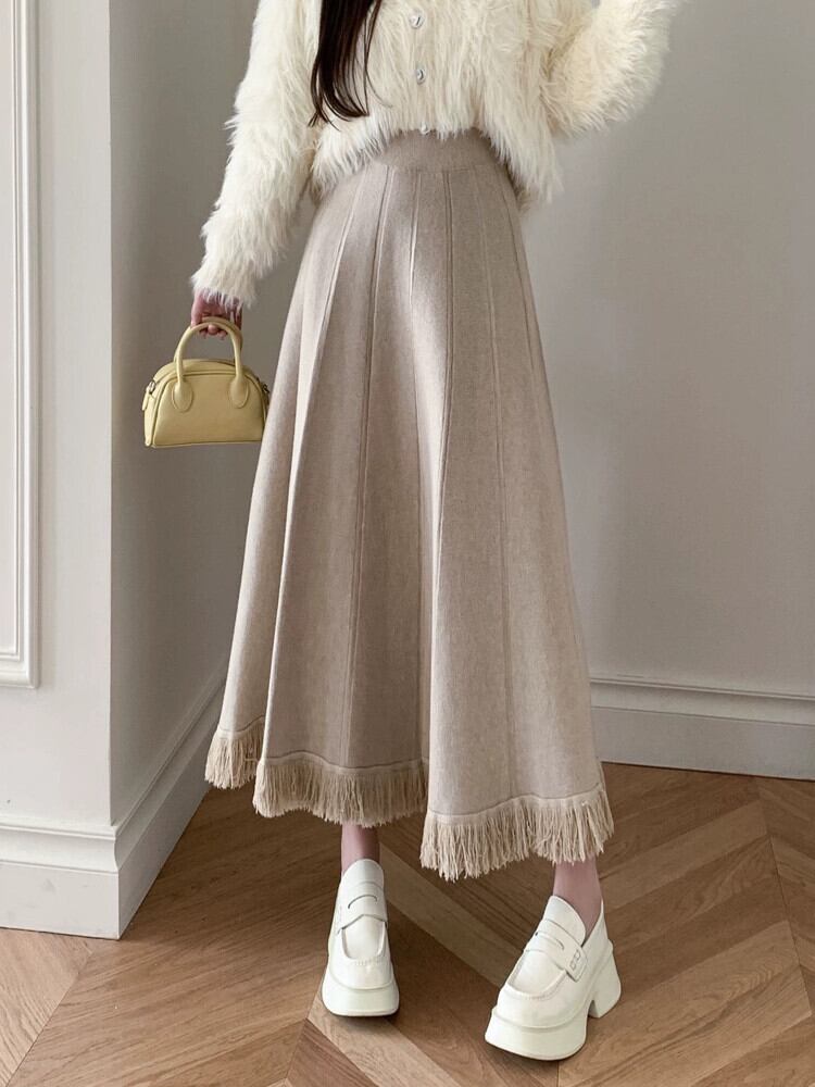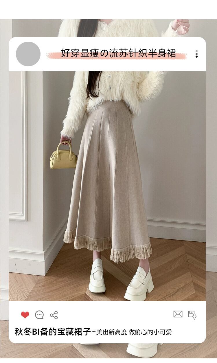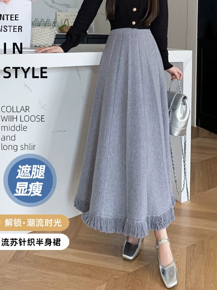肥厚テルニットスカート女性 2023 新しい秋と冬の痩身股カバーミッドレングスハイウエスト A ラインスカートと大きな裾 オータム 秋物 ウィンター 冬物 Aライン 7460030800608471 | framboise21
