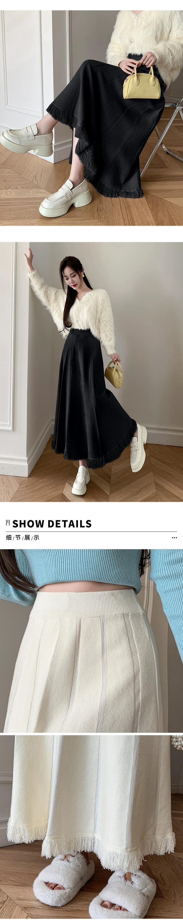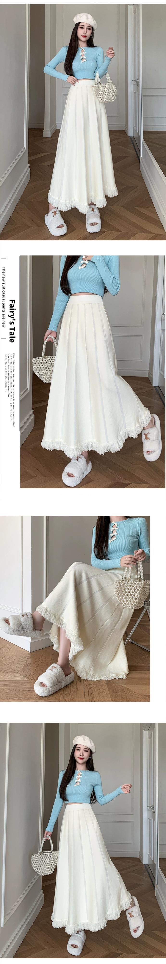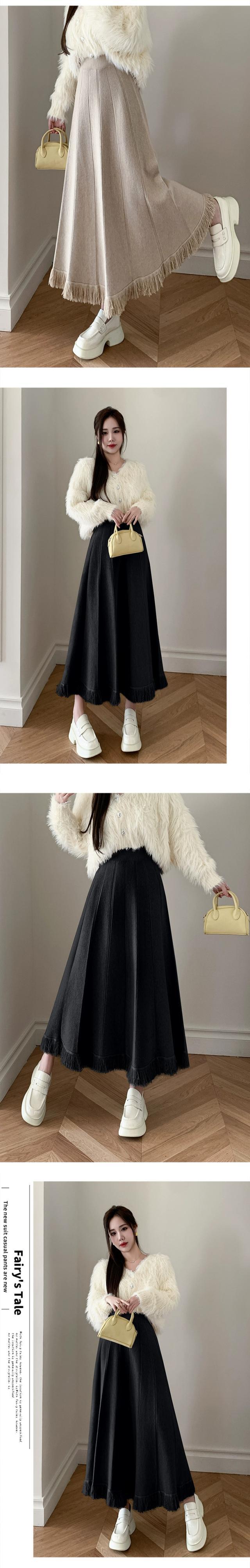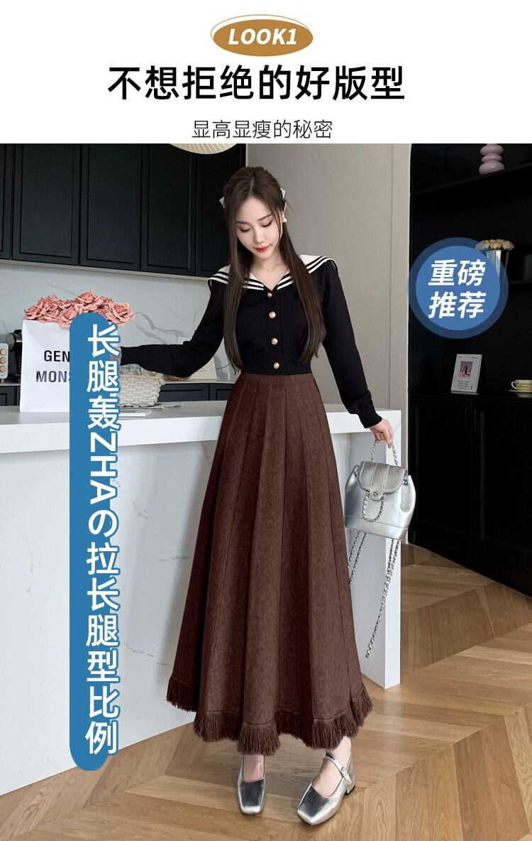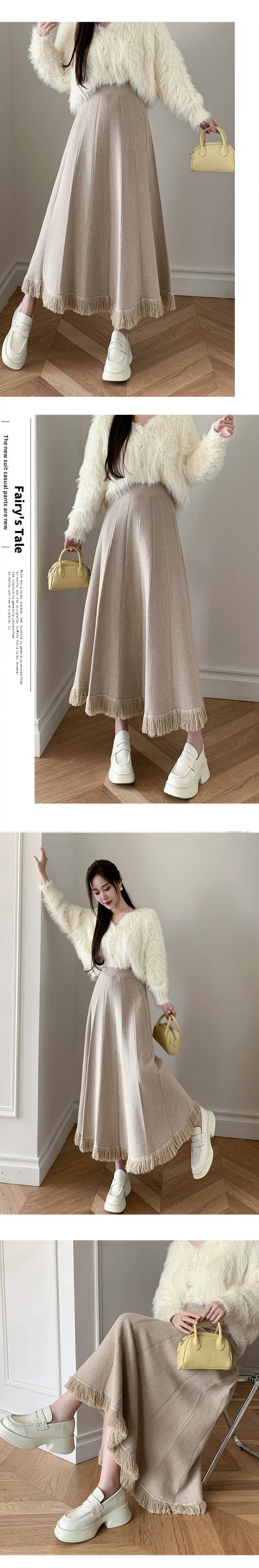 肥厚テルニットスカート女性 2023 新しい秋と冬の痩身股カバーミッドレングスハイウエスト A ラインスカートと大きな裾 オータム 秋物 ウィンター 冬物 Aライン 7460030800608471 | framboise21