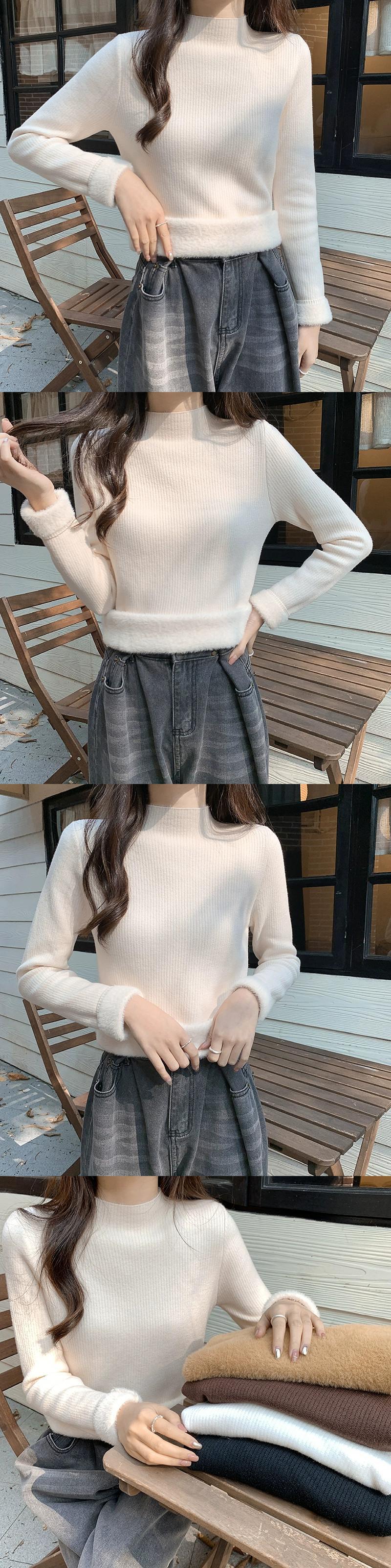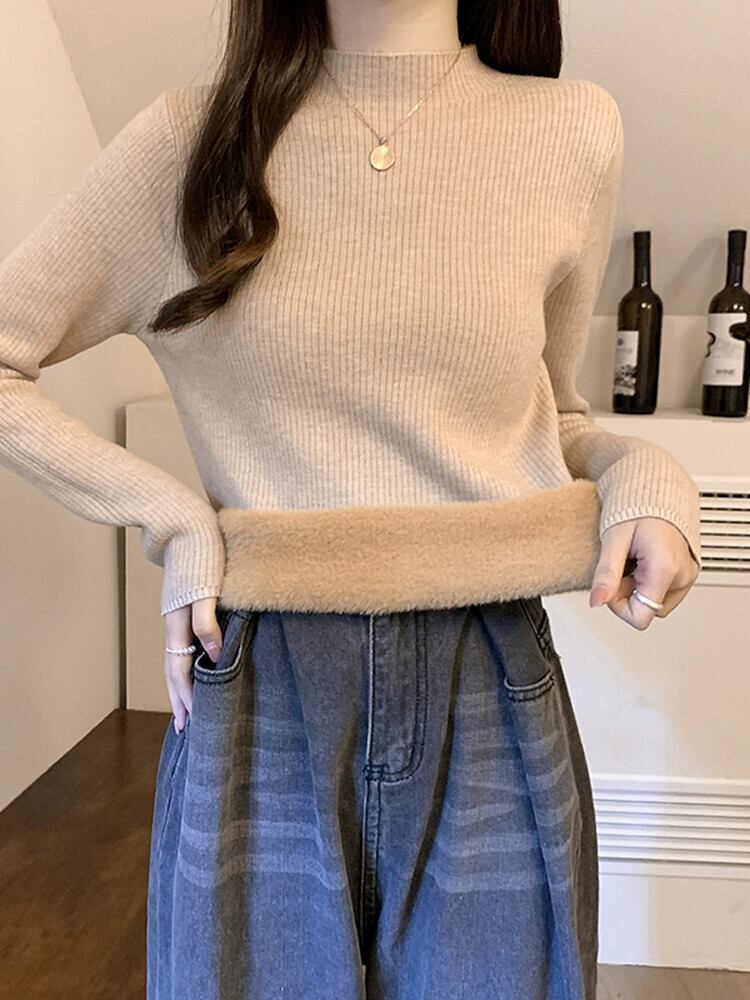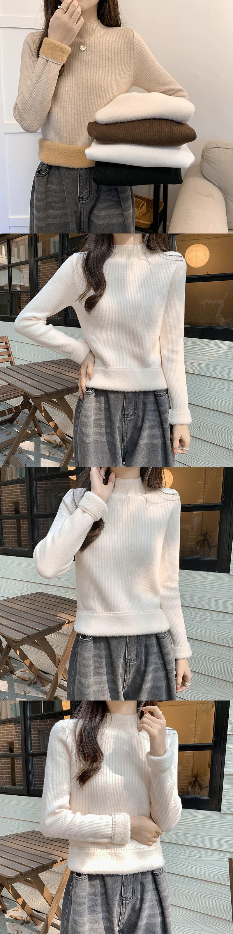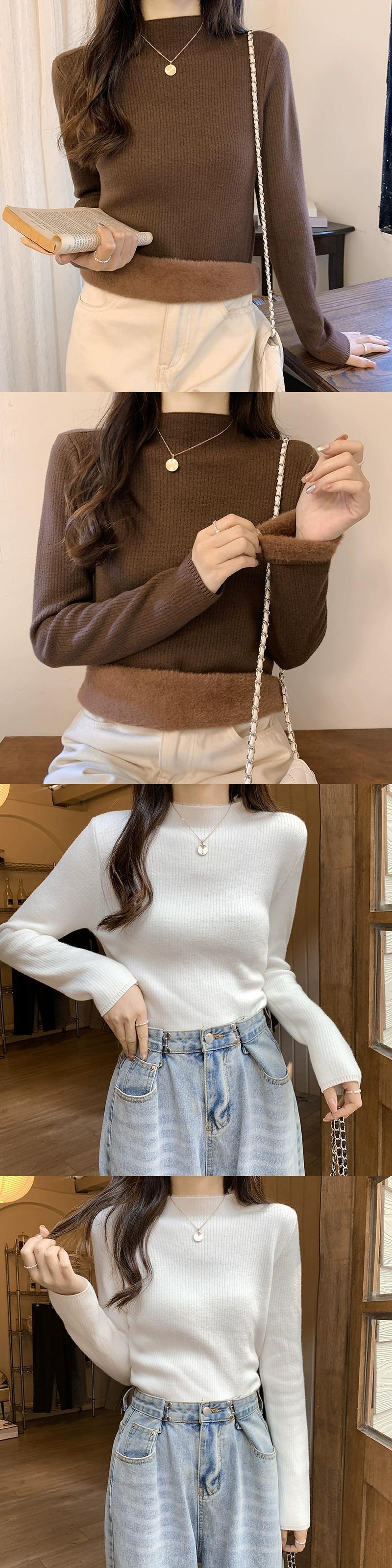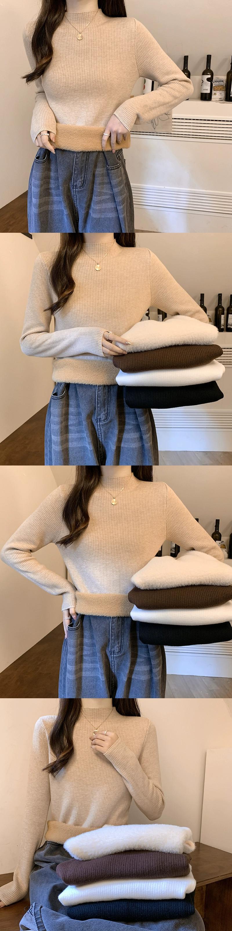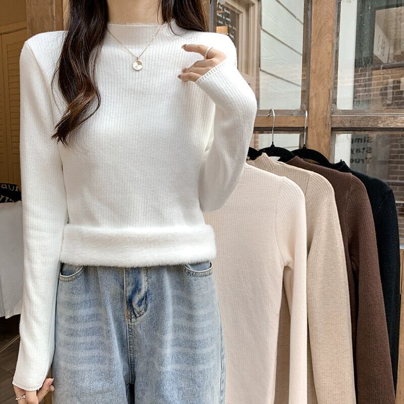 秋冬の厚手ベルベットボトムシャツレディース、ぴったりフィットで暖かいインナーニットセーターオールインワンミンクベルベットハーフタートルネックセーター オータム 秋物 ウィンター 冬物 7460041668024897 | framboise21